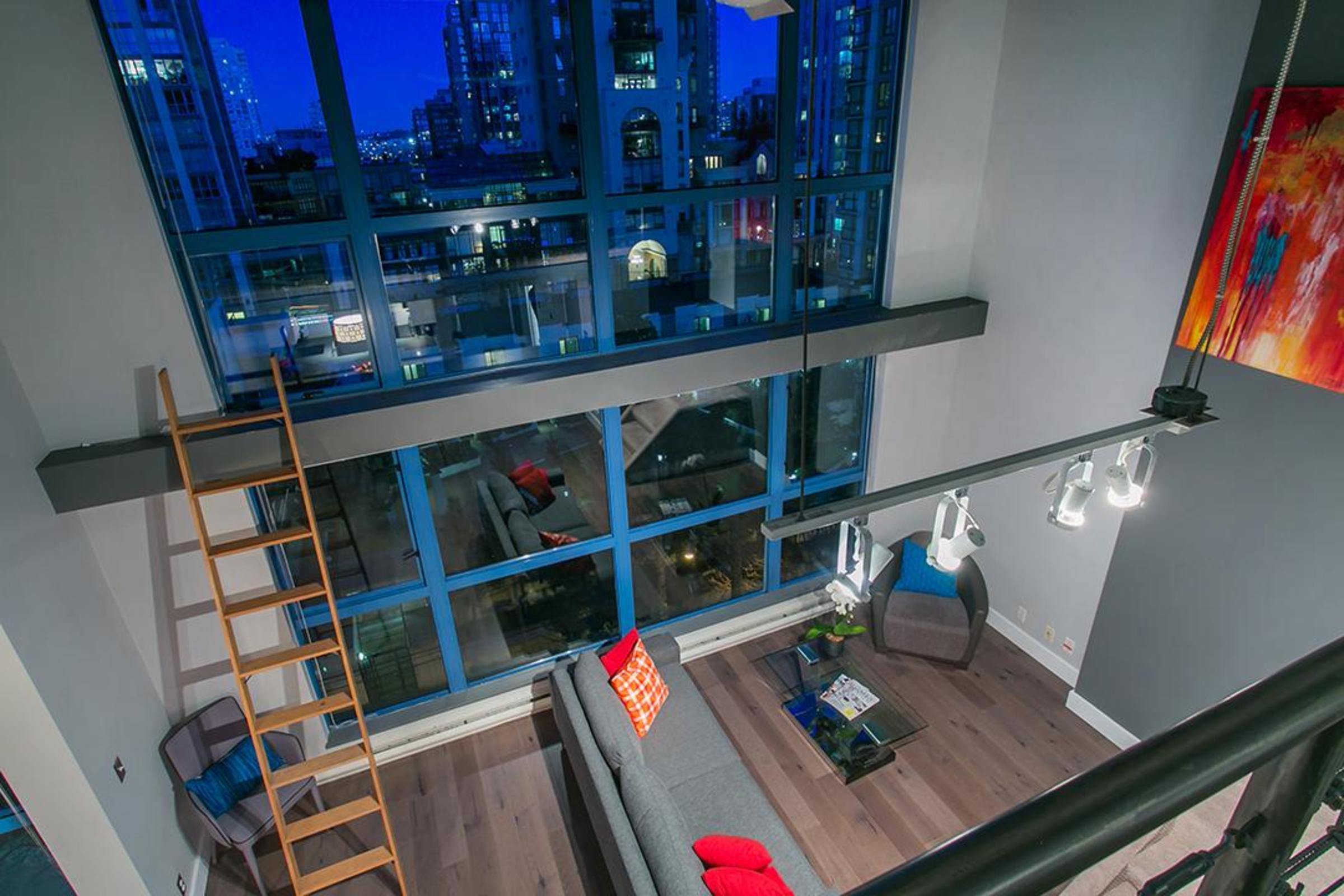 This unique New York Style Loft has been extensively renovated and boasts 971 sq ft (with legal addition) of contemporary, open living space. Situated in Yaletown, this one-of-a-kind 2-level home is bathed in natural light, with 16' ceilings and picturesque downtown views.