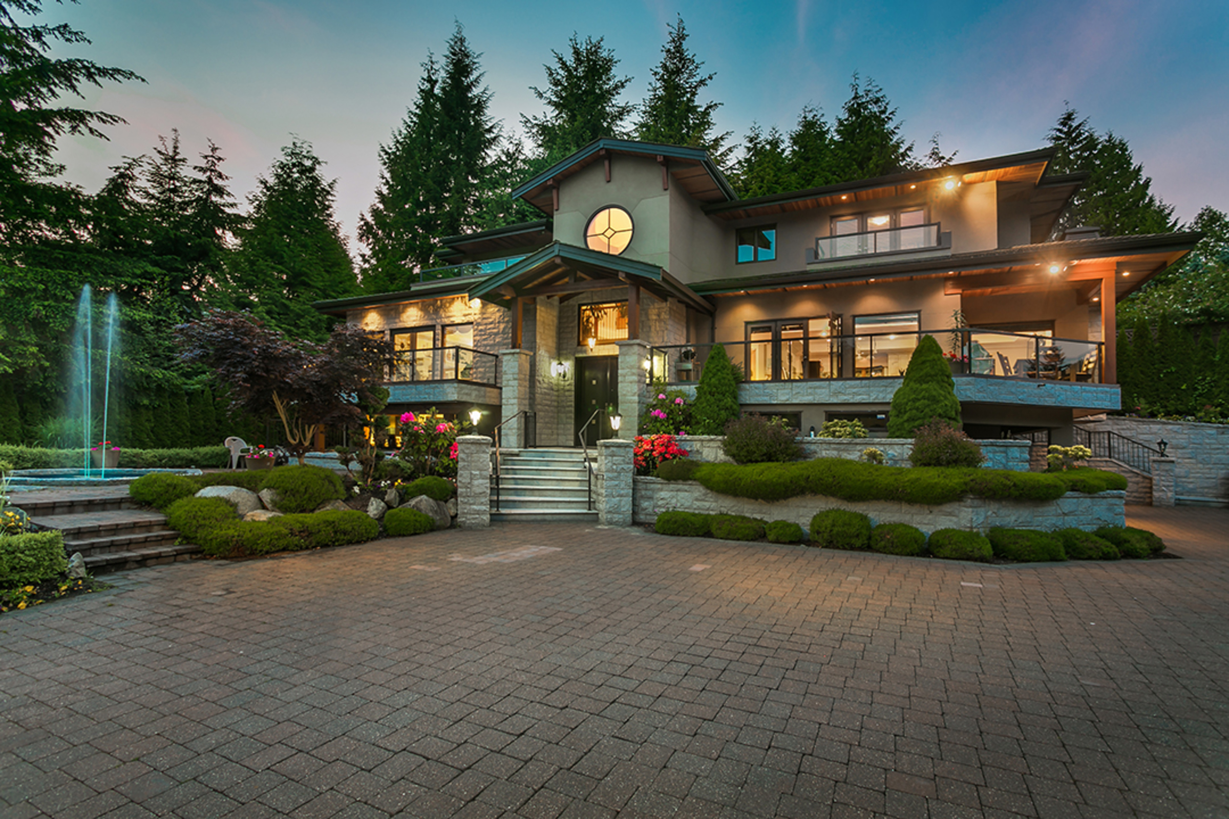 Expect the best when you enter this thoughtfully designed estate by one of West Vancouver's top custom home builders. Over 5300sqft. of luxurious living- 6 bed/6 bath, opulent living & dining, gourmet kitchen w/ butler's pantry, fam room , rec room, media, 2 offices, nanny suite, & exquisite master suite w/private deck, 3 car garage. The crystal chandelier & floating spiral staircase are some of the elegant features in this masterpiece. Enjoy Brazilian cherry hardwood, radiant floors, A/C & 4 grand fireplaces! The spectacular landscape & water fountain graciously complement this 18,340 sq.ft level gated property. Situated in the heart of the British Properties close to Collingwood Private School, Capilano Golf & Hollyburn!