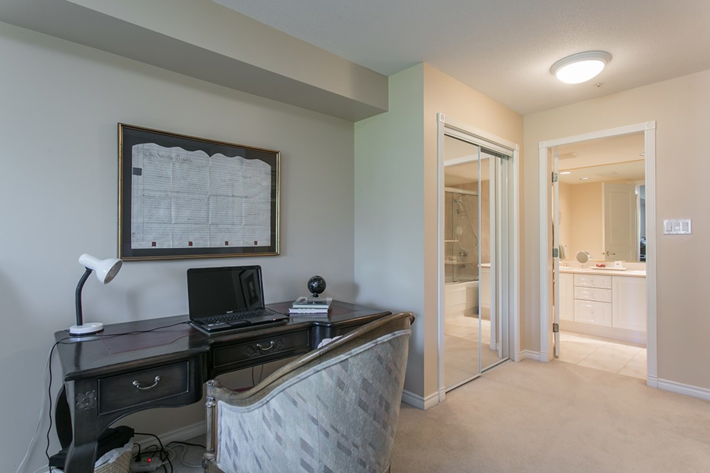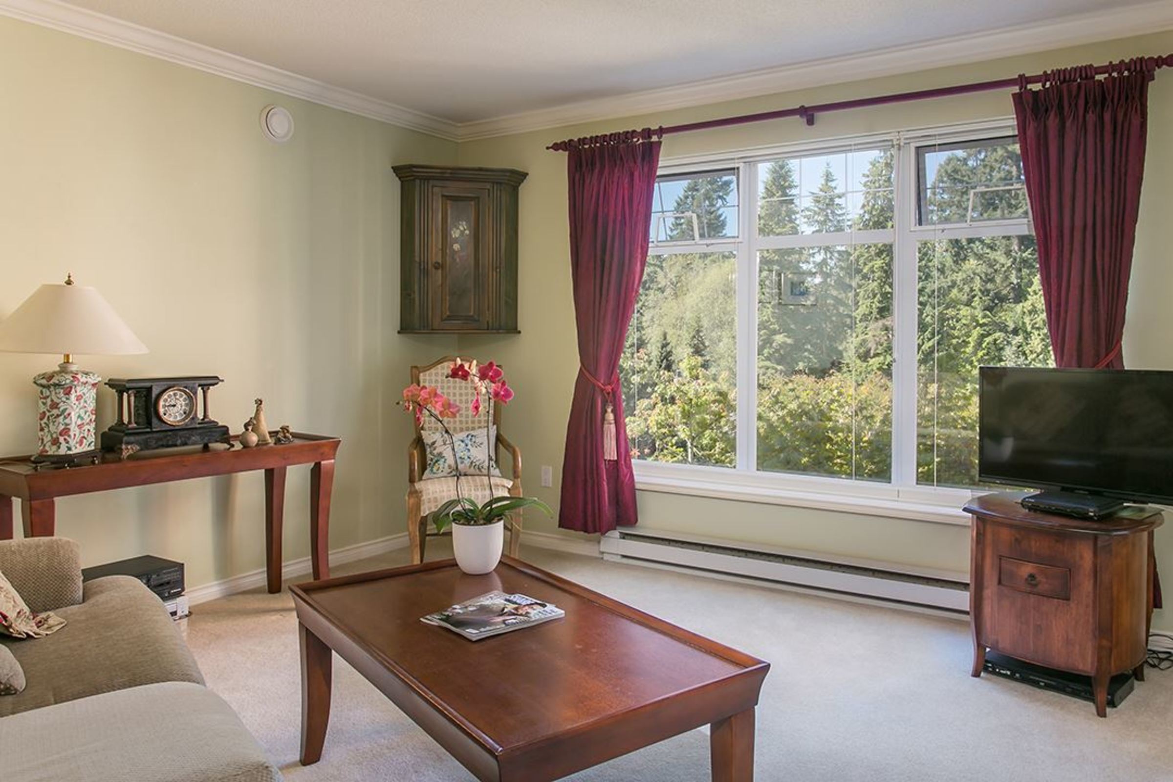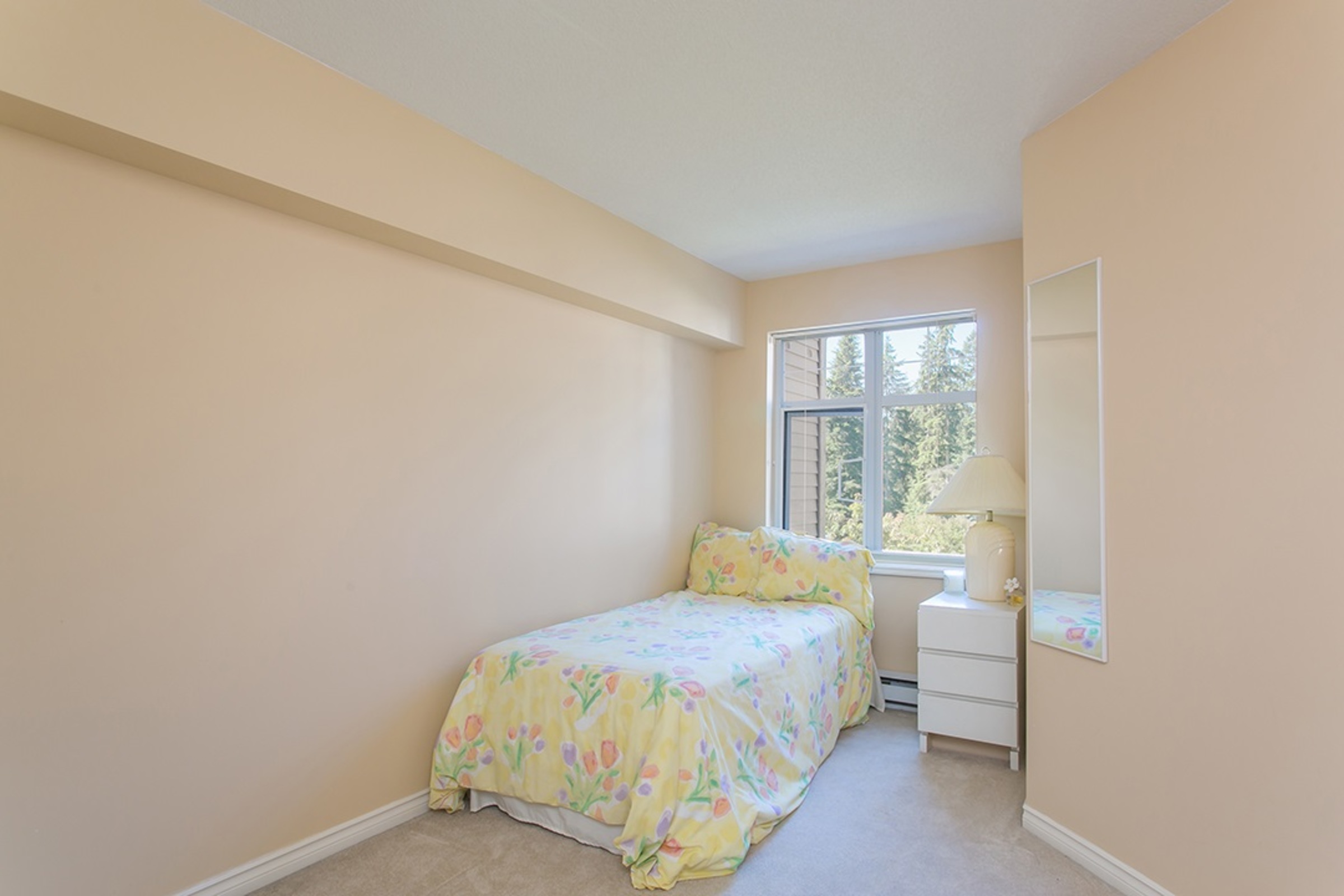 First time on the market in 20 years! Rarely do suites come available in this well maintained/well managed building. Enjoy the views of the landscaped gardens from this spacious 1,072sqft meticulously maintained 2 bed/2 bath home. Wake up to the soothing warmth of nuheat floors in the master bathroom ensuite and enjoy your first cup of coffee on the peaceful patio off the extra large master bedroom. Features include a bright spacious open concept living room, dining room, and kitchen with 1 year old appliances, gas fireplace, in-suite laundry and storage, 2 parking spots, large locker on the same floor, bike room, caretaker and guest suite. Close to all the amenities including golf, skiing, shopping, hiking. Roof was replaced in 2009 and building painted in 2013.