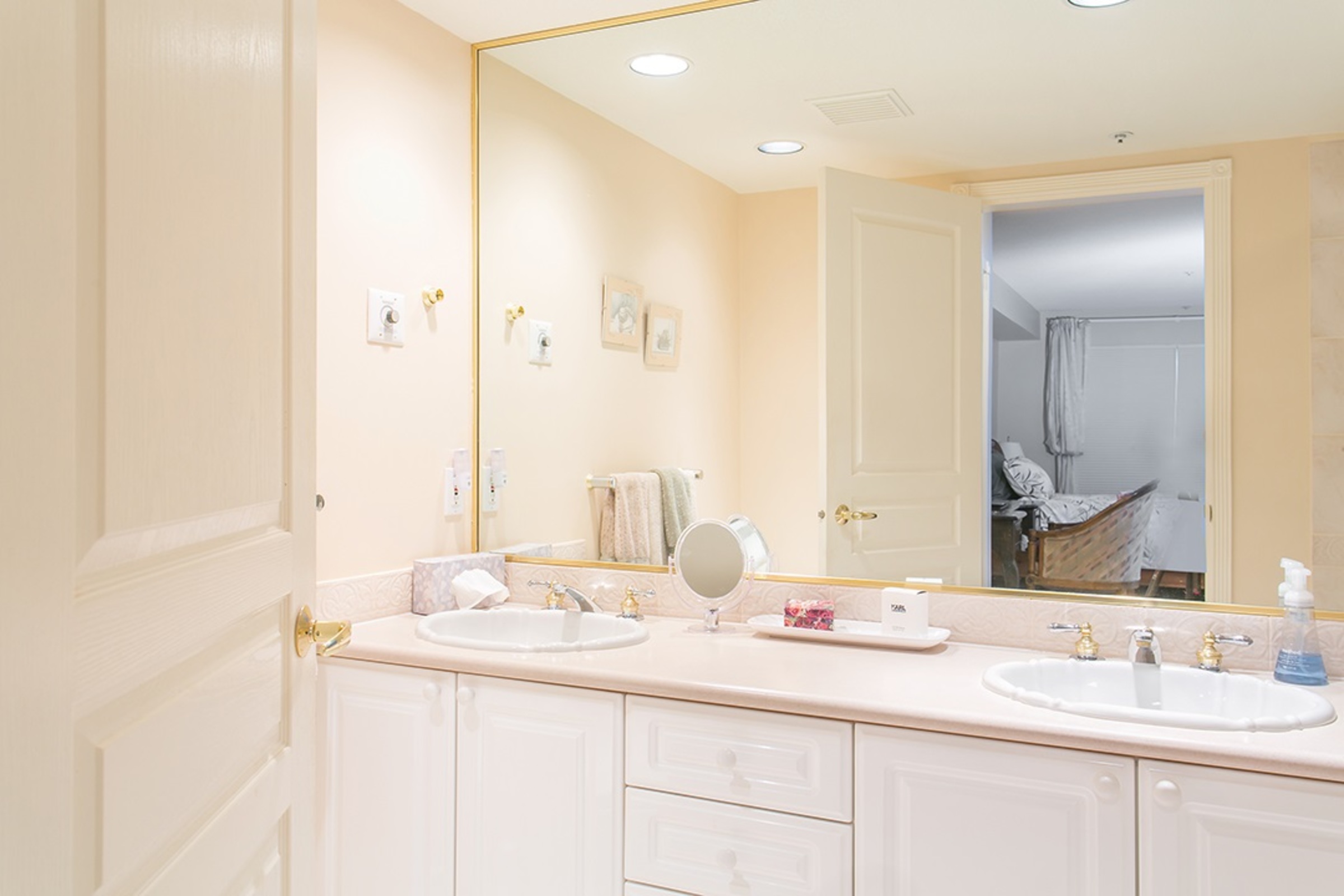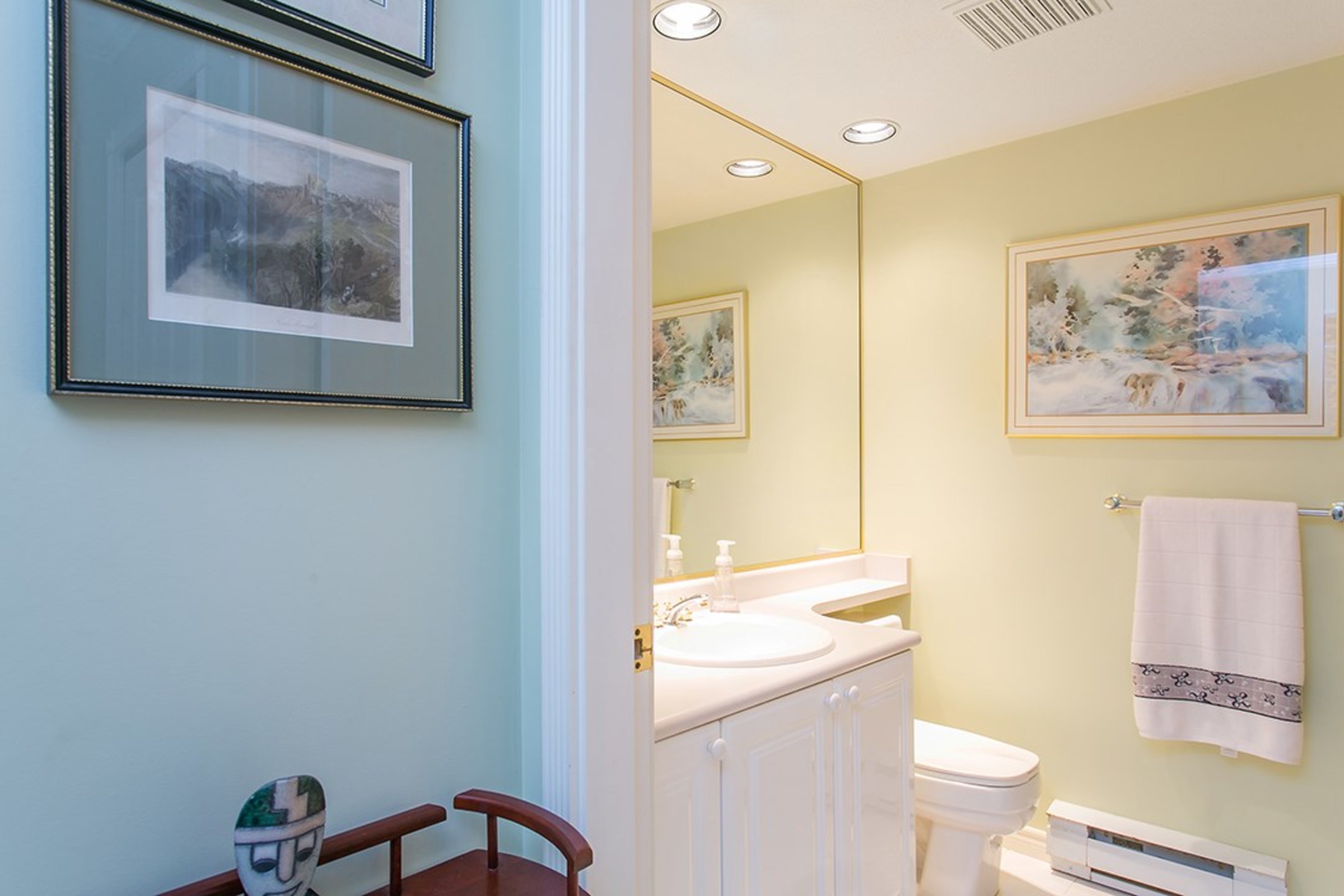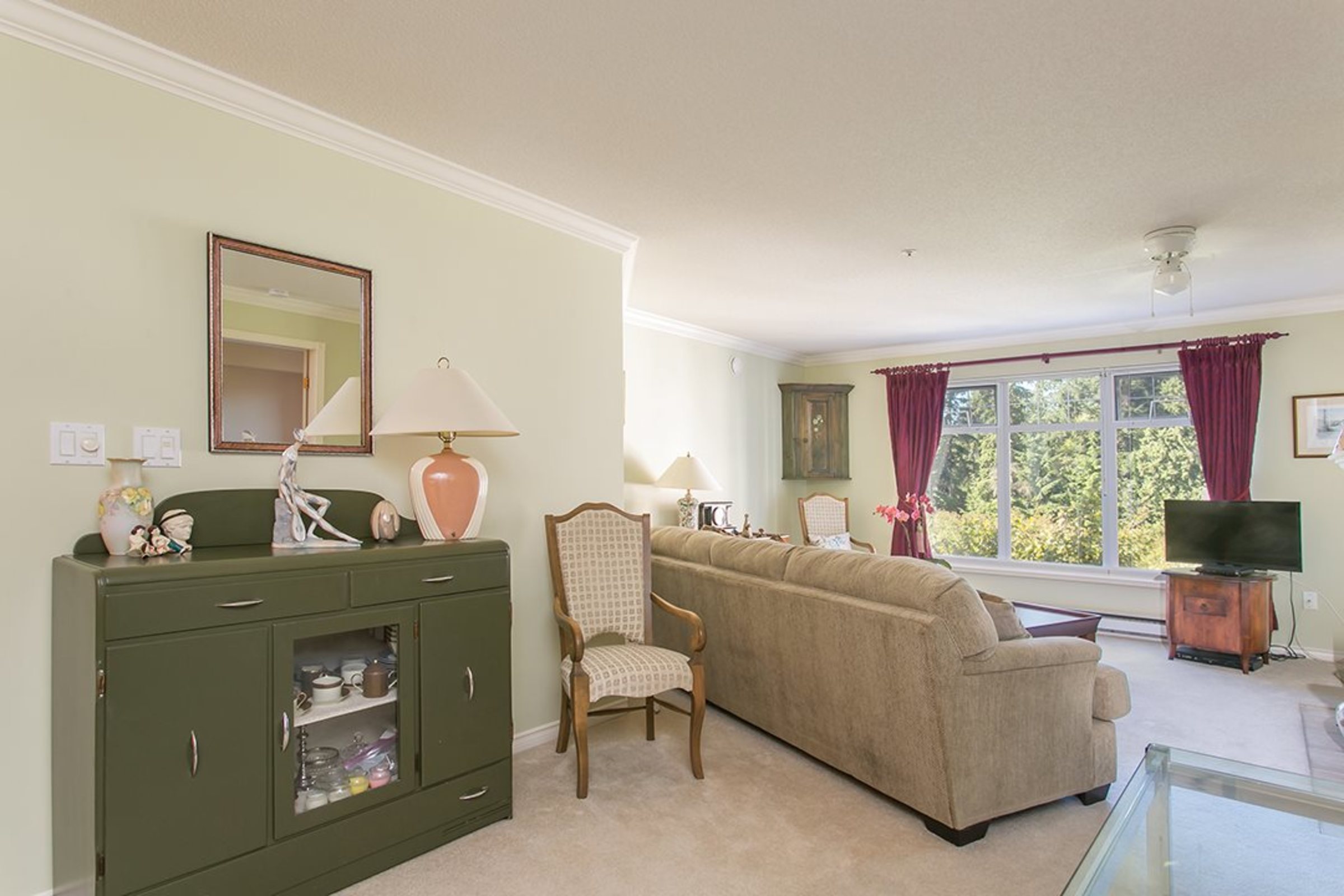 First time on the market in 20 years! Rarely do suites come available in this well maintained/well managed building. Enjoy the views of the landscaped gardens from this spacious 1,072sqft meticulously maintained 2 bed/2 bath home. Wake up to the soothing warmth of nuheat floors in the master bathroom ensuite and enjoy your first cup of coffee on the peaceful patio off the extra large master bedroom. Features include a bright spacious open concept living room, dining room, and kitchen with 1 year old appliances, gas fireplace, in-suite laundry and storage, 2 parking spots, large locker on the same floor, bike room, caretaker and guest suite. Close to all the amenities including golf, skiing, shopping, hiking. Roof was replaced in 2009 and building painted in 2013.