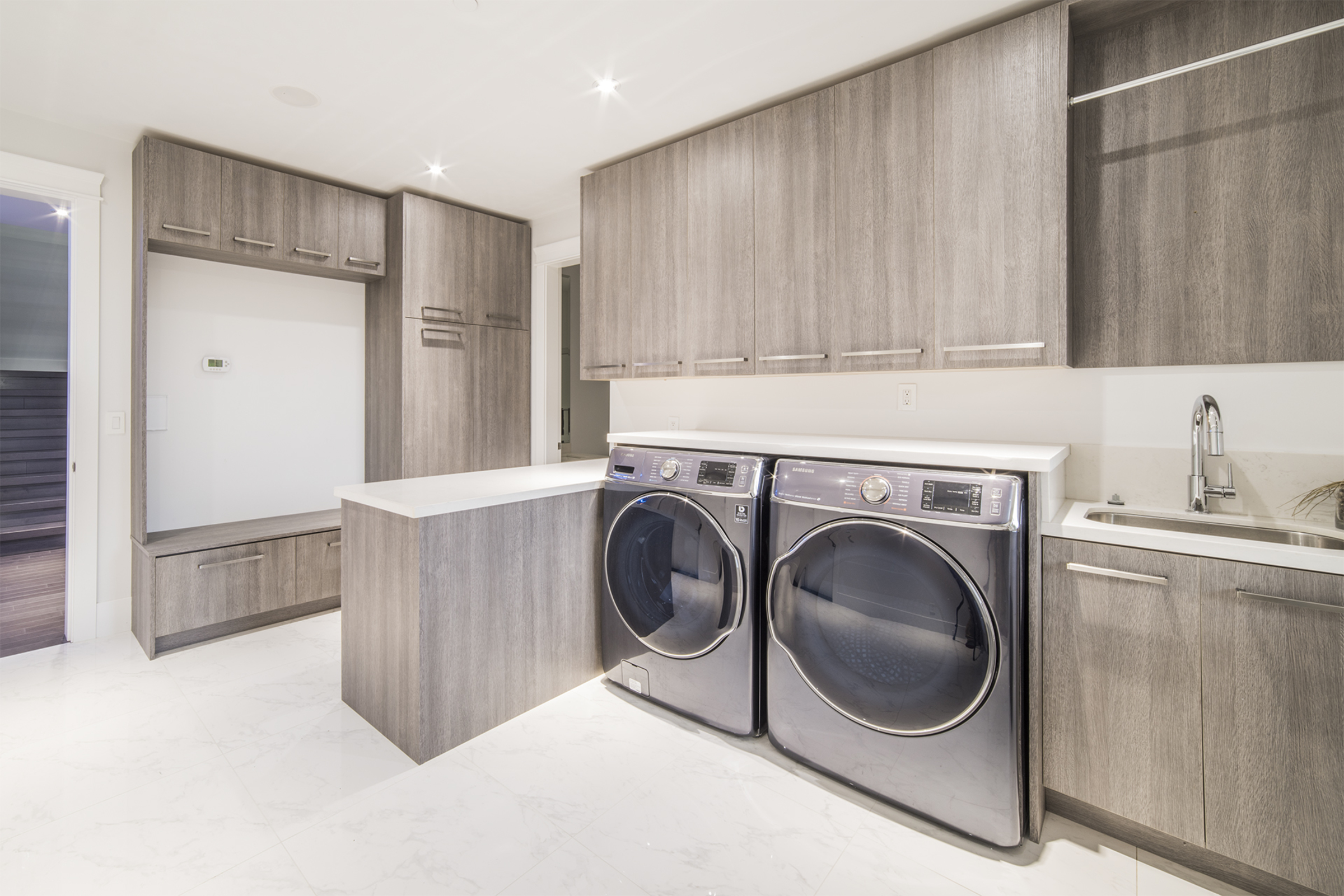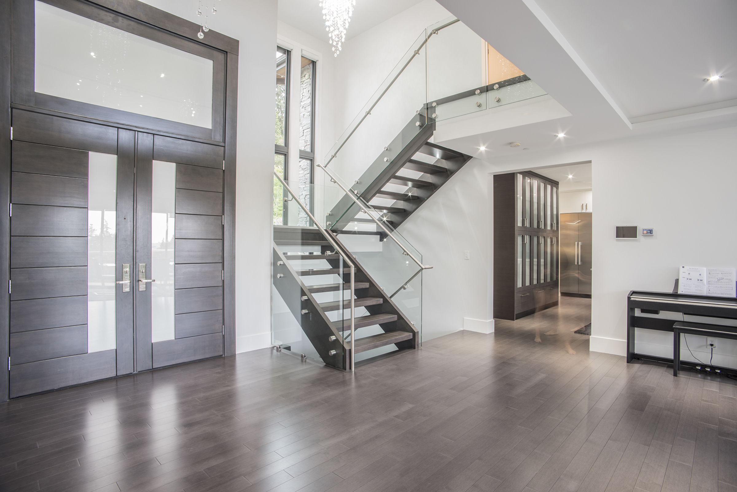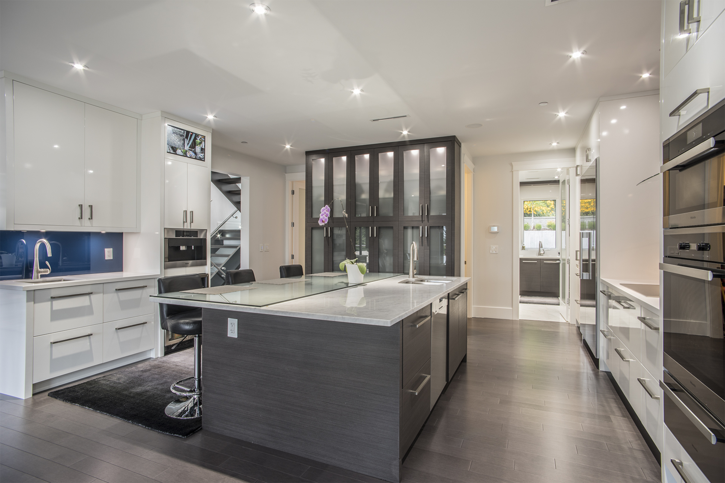 This gorgeous 5900sqft custom-built, one year old estate is situated on an oversized 12,000sqft, bright, south facing property. This luxury home exudes elegance with a dramatic entryway & soaring ceilings that provide uplifting lines and signature style. The three-level open floor plan is ideal for families with five spacious bedrooms, seven bathrooms, and multiple decks/patios. Large windows and doors maximize sunlight revealing a beautiful floating staircase and exquisite chandeliers. State-of-the-art Control 4 technology offers smart-phone control for surround sound, video monitored security and dimmable lutron lights. The extra large deck extends the living space outdoors with a built in bbq that complements the expansive city views. The main floor features rich hardwood over radiant in-floor heat, a formal dining/living area, a large family room with a triple