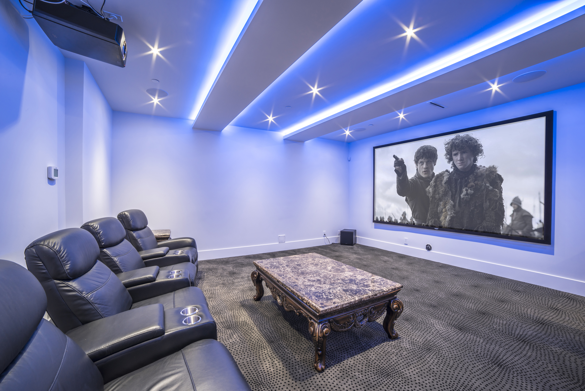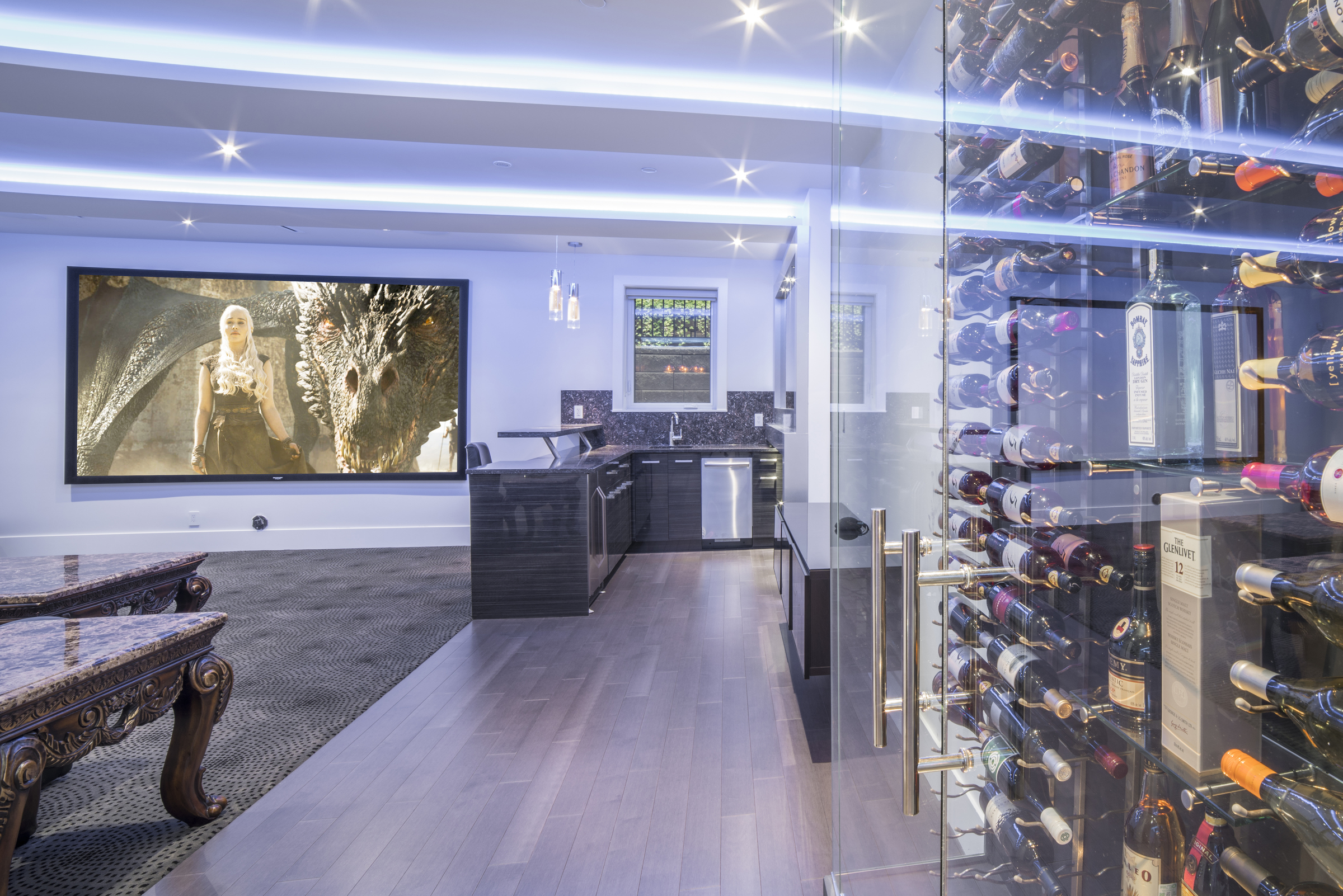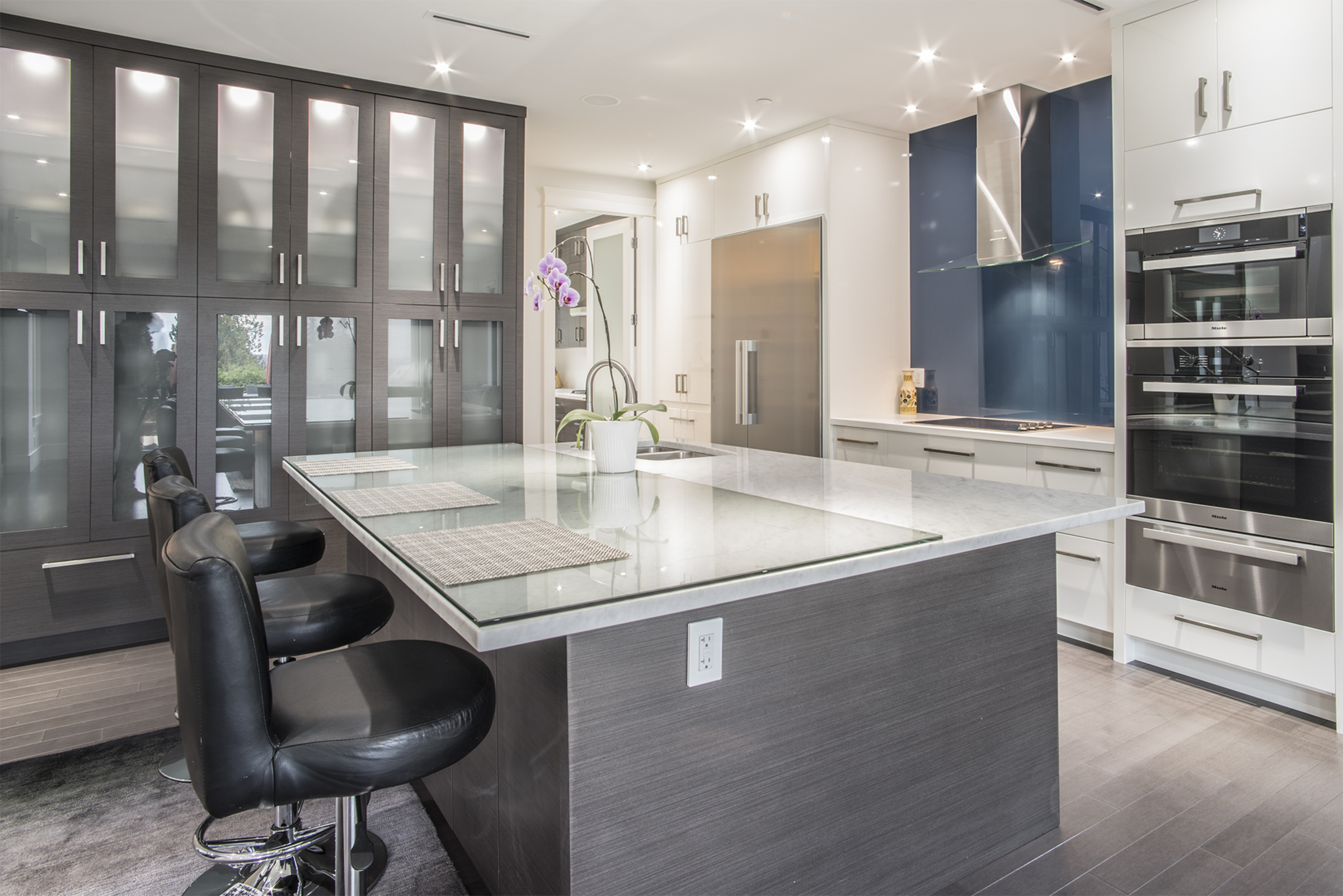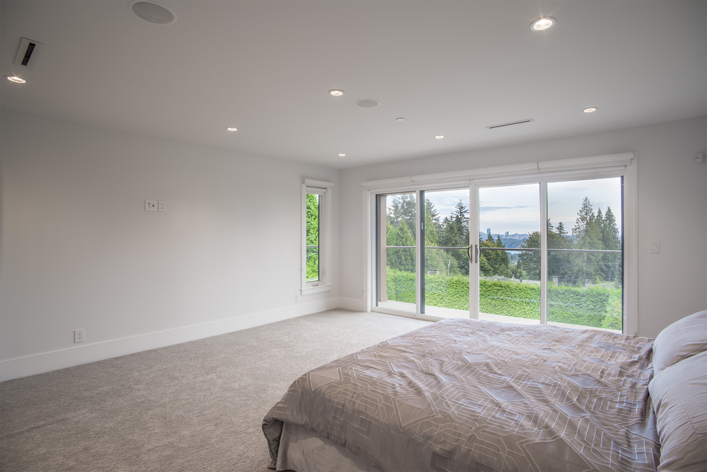 This gorgeous 5900sqft custom-built, one year old estate is situated on an oversized 12,000sqft, bright, south facing property. This luxury home exudes elegance with a dramatic entryway & soaring ceilings that provide uplifting lines and signature style. The three-level open floor plan is ideal for families with five spacious bedrooms, seven bathrooms, and multiple decks/patios. Large windows and doors maximize sunlight revealing a beautiful floating staircase and exquisite chandeliers. State-of-the-art Control 4 technology offers smart-phone control for surround sound, video monitored security and dimmable lutron lights. The extra large deck extends the living space outdoors with a built in bbq that complements the expansive city views. The main floor features rich hardwood over radiant in-floor heat, a formal dining/living area, a large family room with a triple