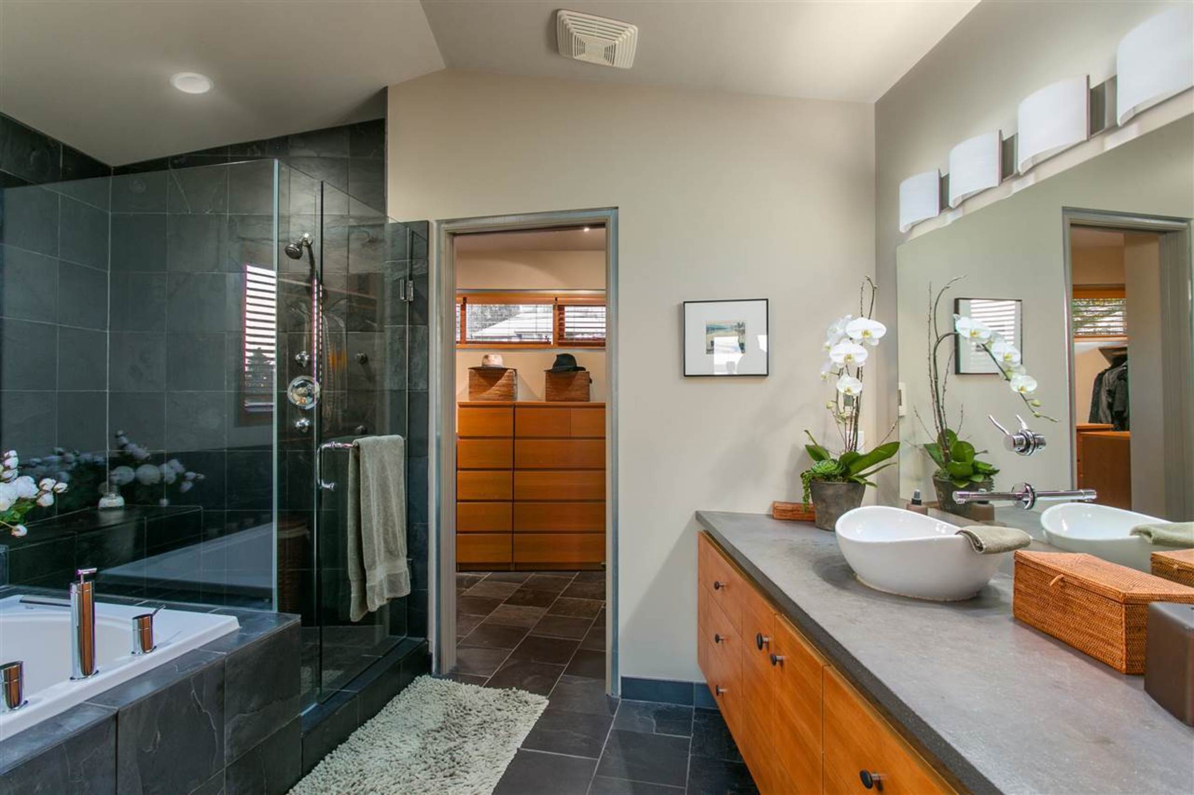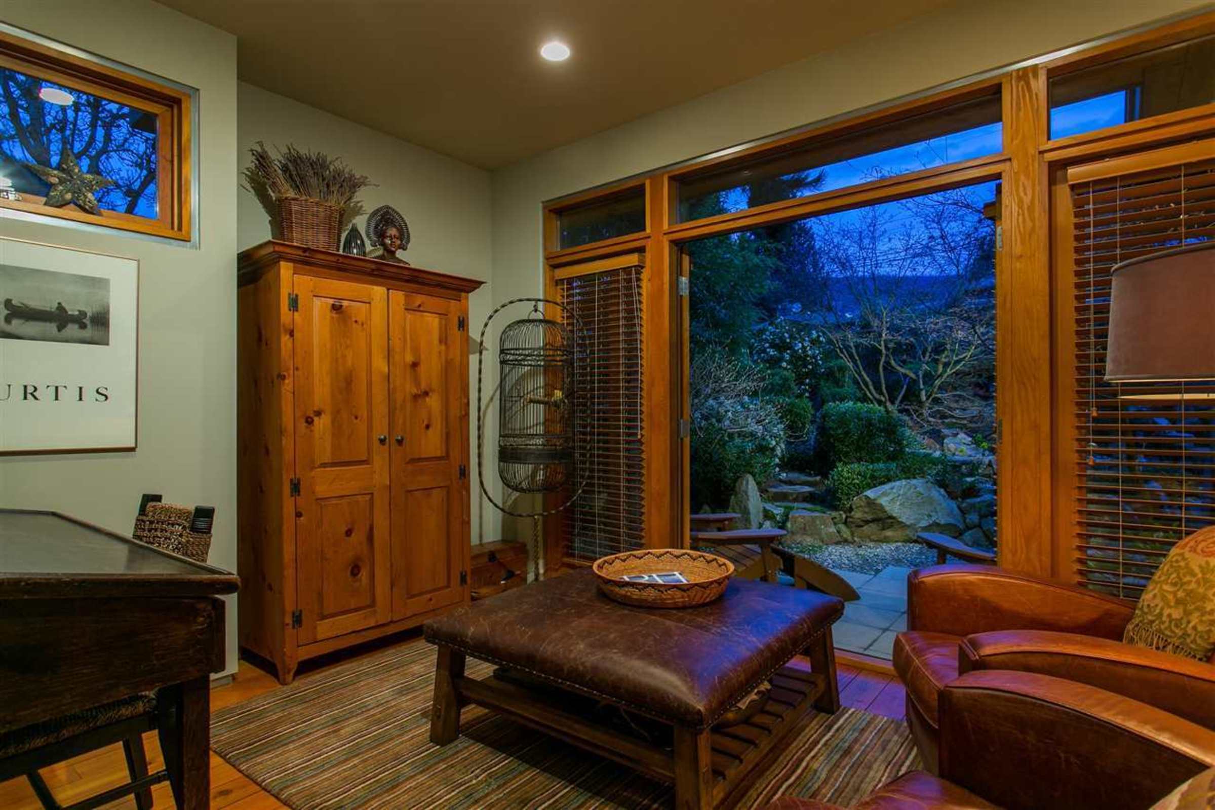 This 3900sqft 6 bed, 5 bath, Mason Kent masterpiece is an artistic expression of grace & elegance. Situated in Ambleside’s most desirable neighbourhood, the unique & imaginative design flows seamlessly with the natural environment of the west coast. Extensive use of natural materials, from wood to slate complement the beauty of the surrounding landscape. A gourmet kitchen with concrete counters, fir floors, designer lights, steel railings, ssound, media room & numerous skylights are just a few of the features that make this energy efficient home a true stand-out. Views of Lions Gate & the mountains are an added bonus. The 240sqft architectural designed detached studio/office with bathroom. Also included is a legal 1 bedroom soundproofed suite with heated floors and its own separate entrance.