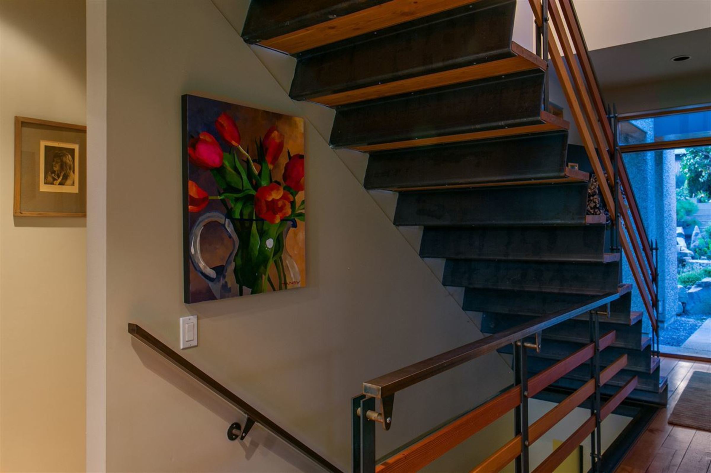 This 3900sqft 6 bed, 5 bath, Mason Kent masterpiece is an artistic expression of grace & elegance. Situated in Ambleside’s most desirable neighbourhood, the unique & imaginative design flows seamlessly with the natural environment of the west coast. Extensive use of natural materials, from wood to slate complement the beauty of the surrounding landscape. A gourmet kitchen with concrete counters, fir floors, designer lights, steel railings, ssound, media room & numerous skylights are just a few of the features that make this energy efficient home a true stand-out. Views of Lions Gate & the mountains are an added bonus. The 240sqft architectural designed detached studio/office with bathroom. Also included is a legal 1 bedroom soundproofed suite with heated floors and its own separate entrance.
