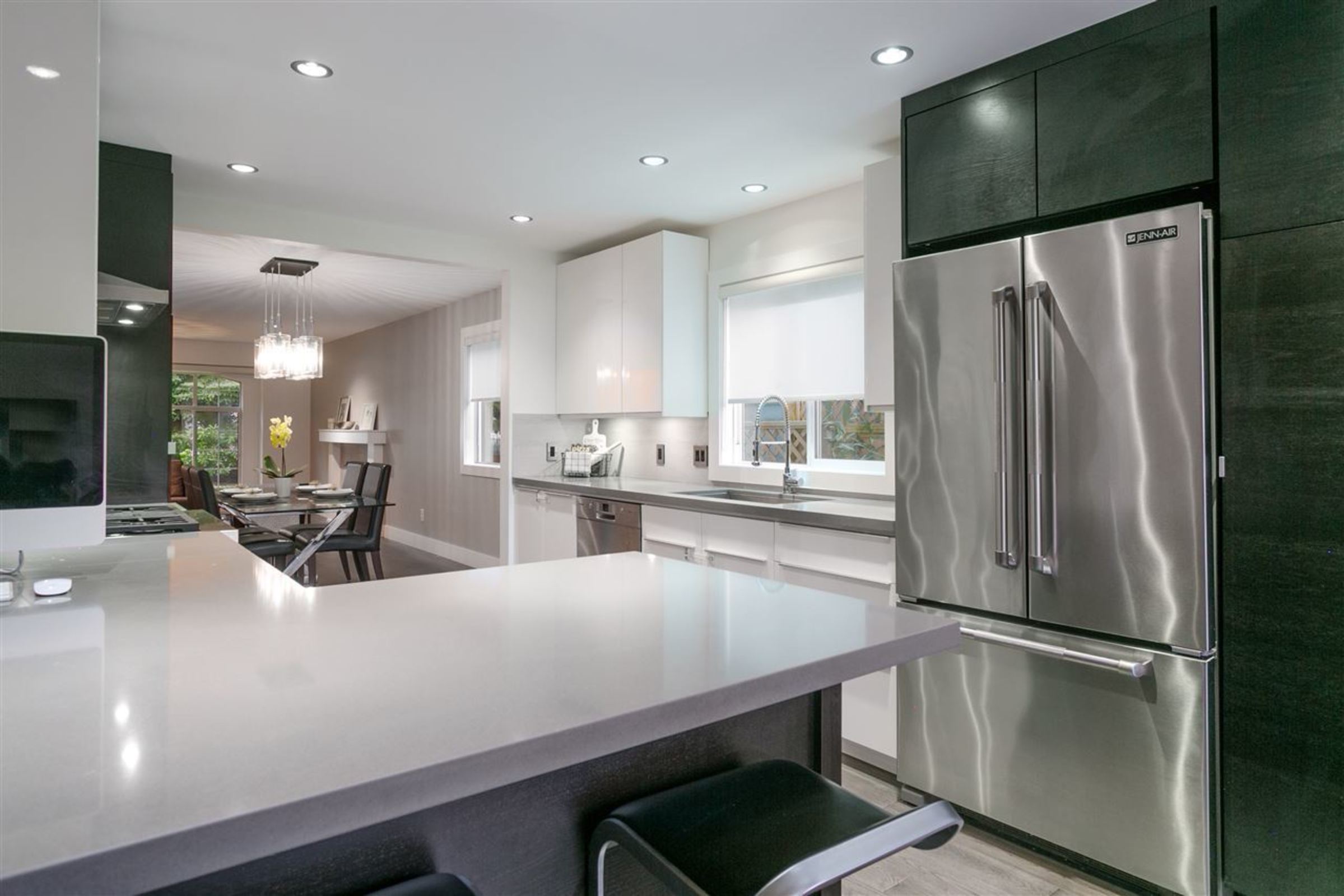 This exceptional, completely renovated, 2300 sqft., 4 bed, 3 bath home is designed to enhance family living and entertaining. The contemporary floor plan maximizes living space while providing a seamless flow throughout home. The main floor boasts an open concept kitchen with Jenn Air & Bosch appliances, silestone counters, designer blinds, dimmable lights, under-cabinet lighting, wine fridge, dining room, eating area and adjoining family room. The double french doors extend the living space to the oversized (deeper than average), bright, south-facing, well-manicured back yard complete with a spacious covered patio w/gas bbq hookup, mature magnolia tree, and organic vegetable garden. Upstairs features 4 large bedrooms and 2 bathrooms including a master wing with a brand new spa-like ensuite complete with all the luxuries: Nuheat radiant in-floor heating, quartz counters, sleek grohe fixtures, heated towel rack & an oversized walk-in closet.