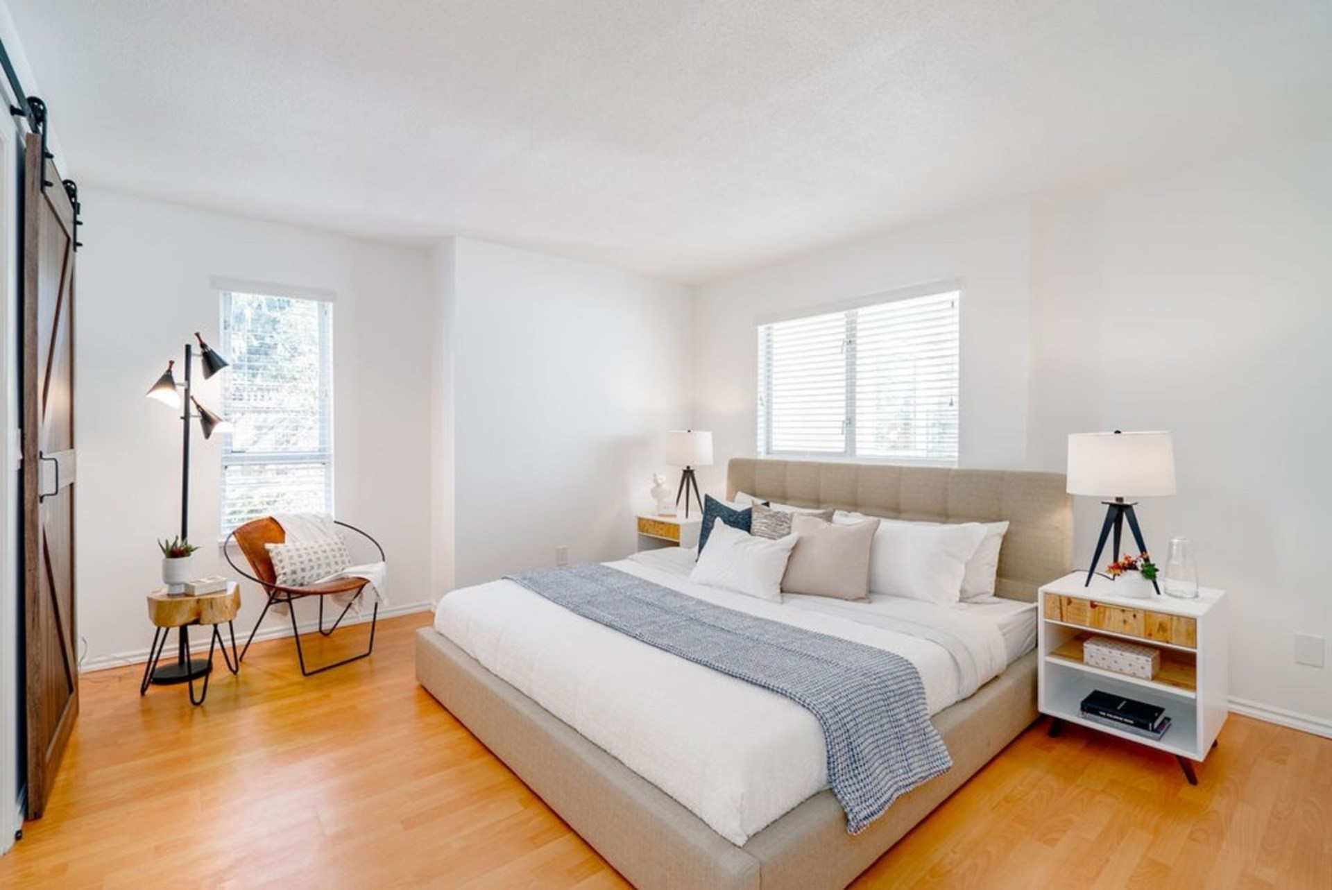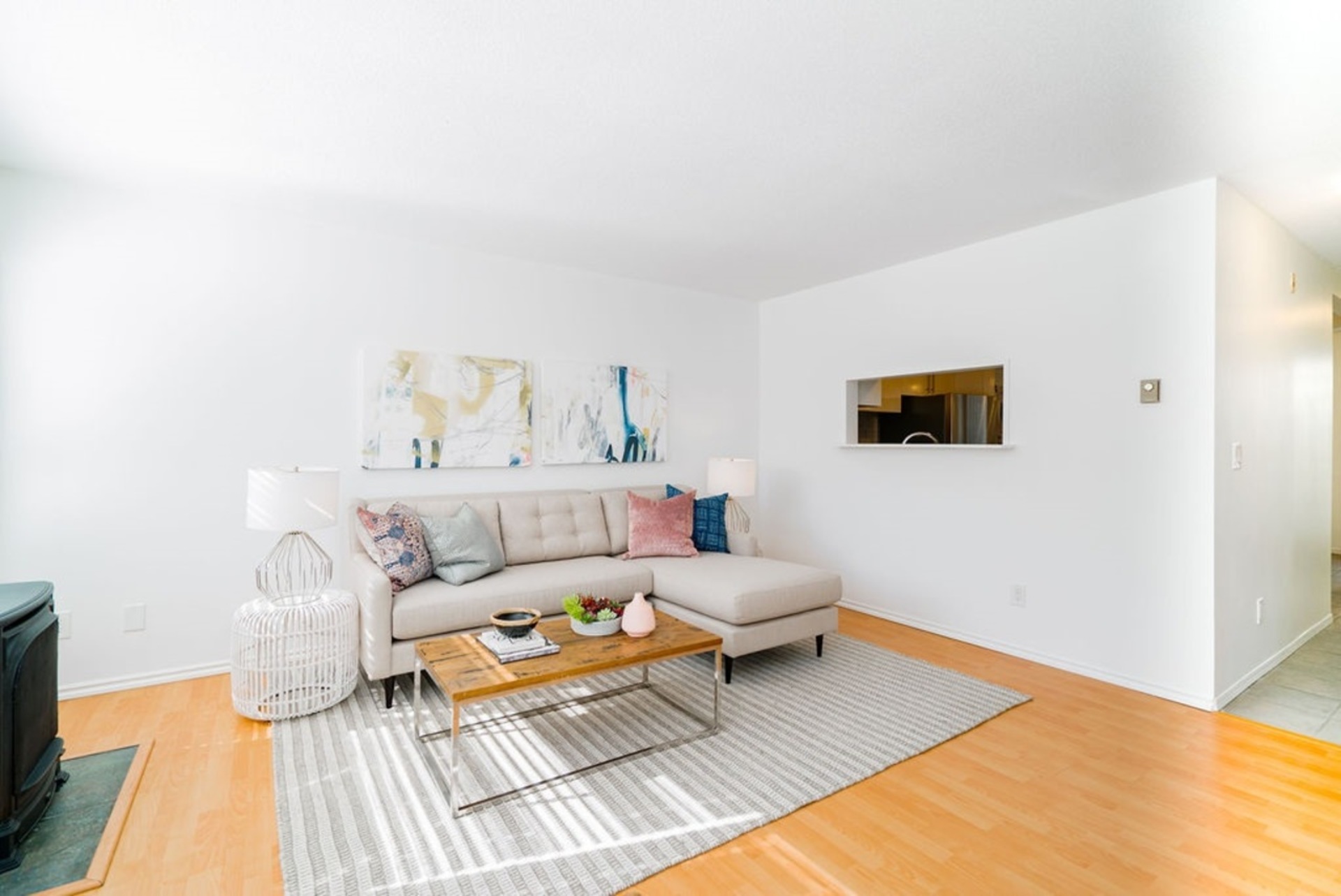 Rarely avail-This oversized 910 sqft. 1 bed & den home is located in one of the most culturally rich & authentic neighbourhoods just blocks from Commercial Drive. Freshly renovated w/ a brand new kitchen & bath, the contemporary faucets, sinks, grey quartz counters & solid wood cabinets provide a sense of design continuity throughout the home. Open the stylish hanging barn door into a spacious master, large enough for a king, complete with your own walk-in closet. The den area encourages creativity with an abundance of natural light pouring through the sunroom skylights. Additional features include new hunter Douglas blinds, new appliances, gas f/p, a unique servery kitchen window, parking & storage. Only a 5 minute drive dt & steps to one of the best & most colourful streets in the city!