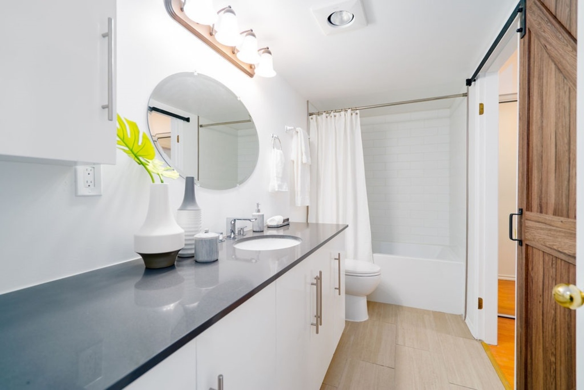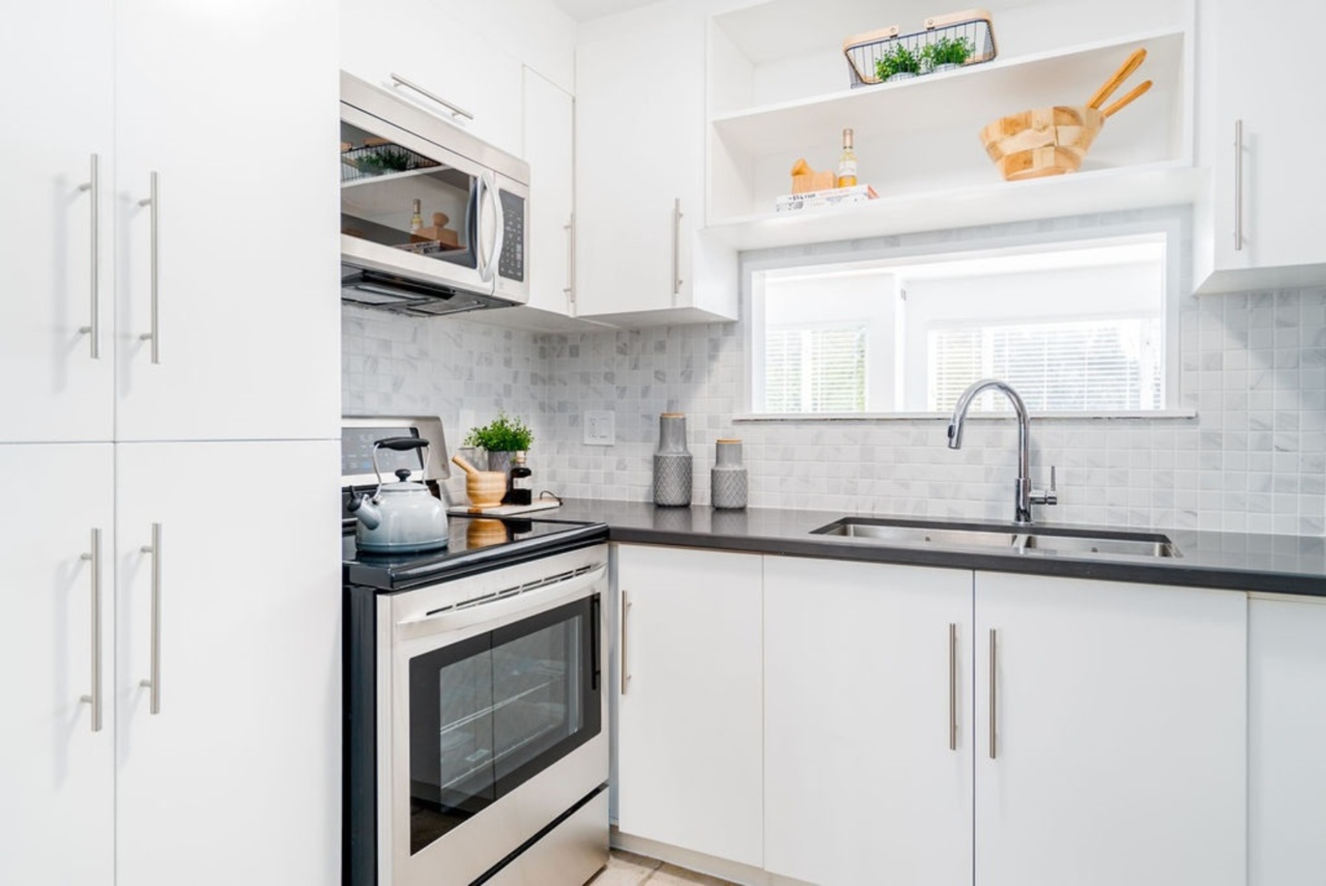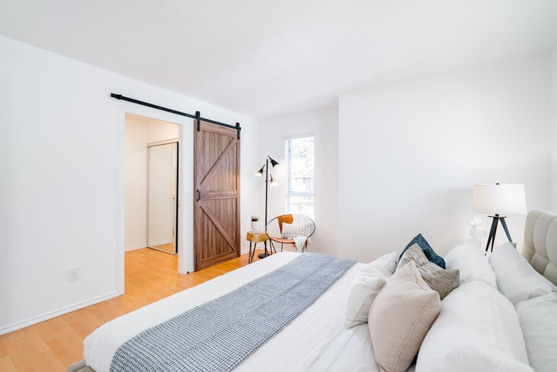 Rarely avail-This oversized 910 sqft. 1 bed & den home is located in one of the most culturally rich & authentic neighbourhoods just blocks from Commercial Drive. Freshly renovated w/ a brand new kitchen & bath, the contemporary faucets, sinks, grey quartz counters & solid wood cabinets provide a sense of design continuity throughout the home. Open the stylish hanging barn door into a spacious master, large enough for a king, complete with your own walk-in closet. The den area encourages creativity with an abundance of natural light pouring through the sunroom skylights. Additional features include new hunter Douglas blinds, new appliances, gas f/p, a unique servery kitchen window, parking & storage. Only a 5 minute drive dt & steps to one of the best & most colourful streets in the city!
