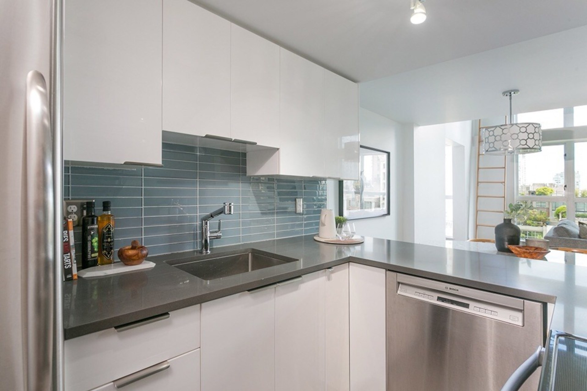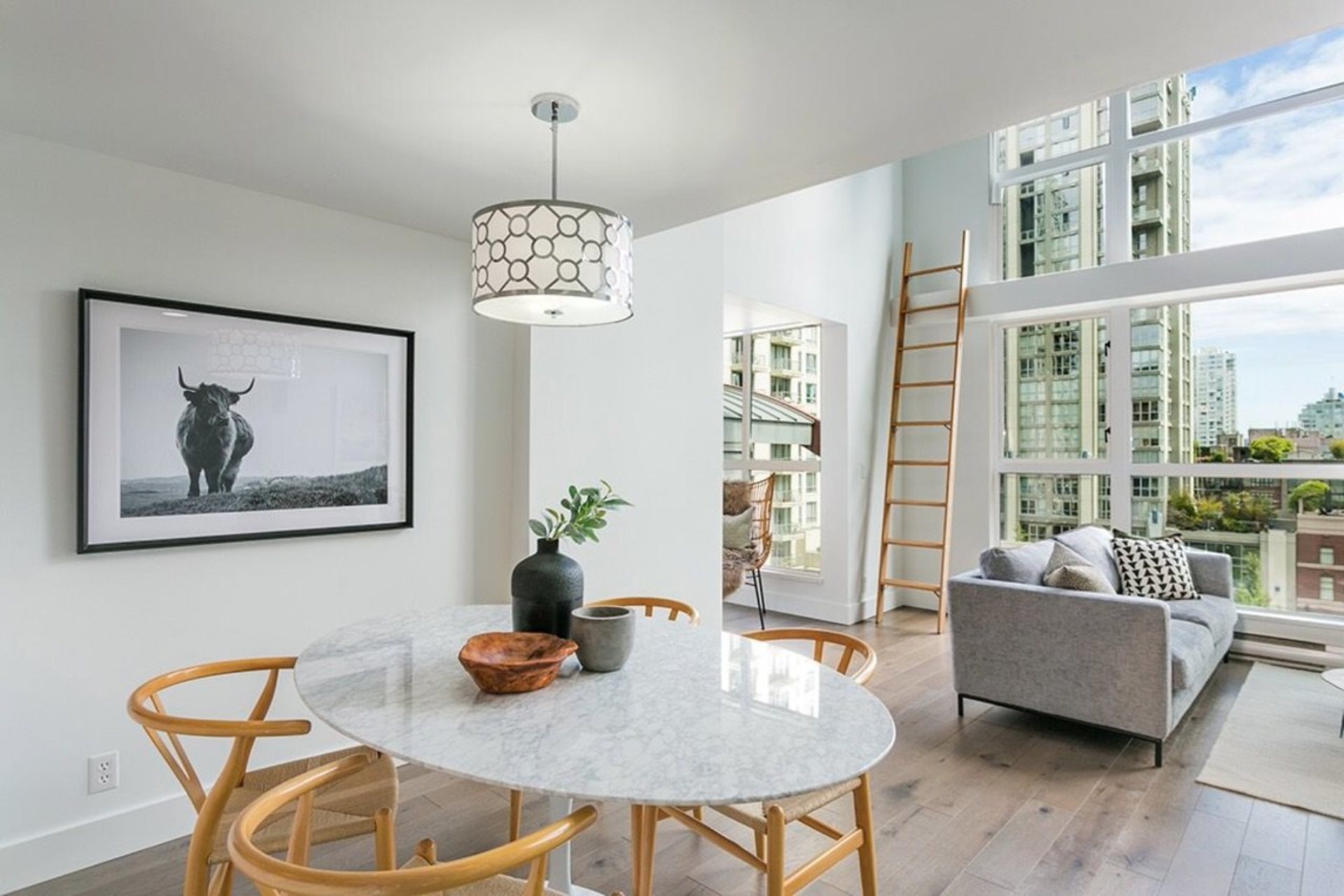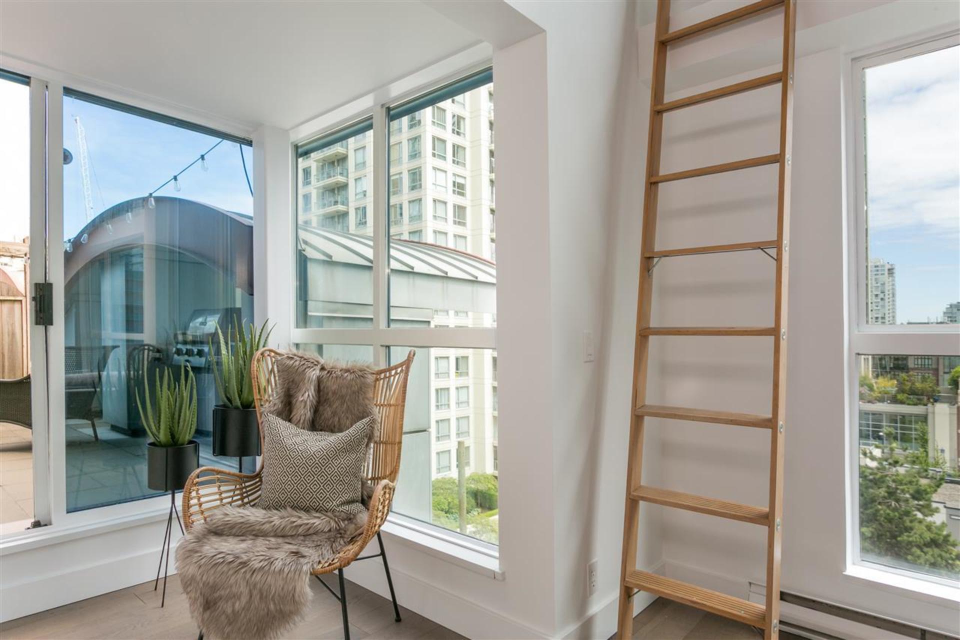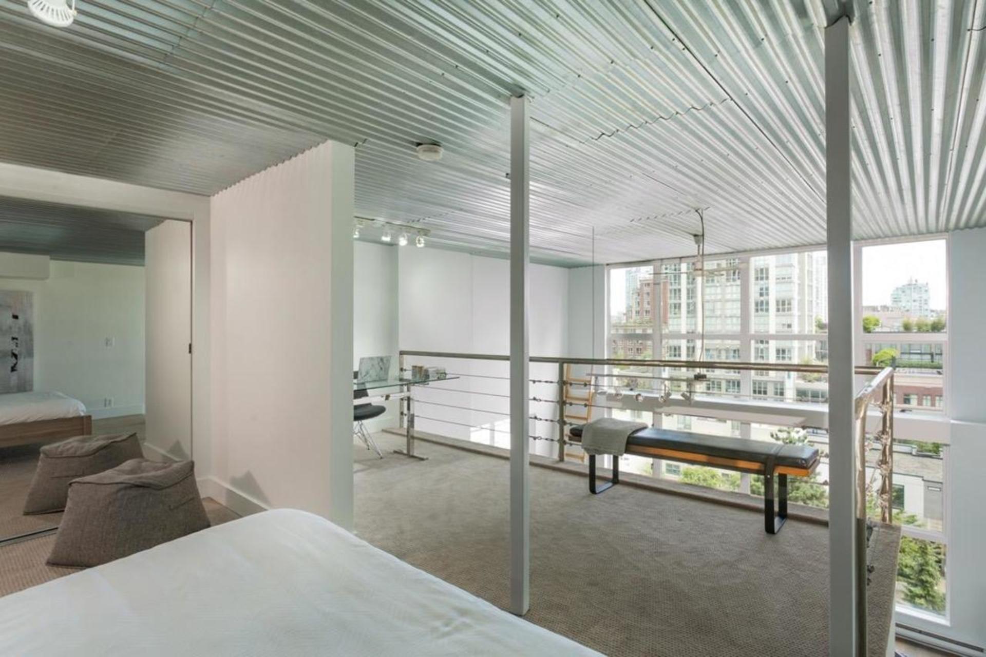 This one-of-a-kind, 994sqft, architecturally designed New York style loft has been extensively renovated from top to bottom. One of only a handful of homes w/ a city approved legal loft addition designed to optimize light, flow, separation & storage. Upstairs boasts an oversized bedroom w/large den area perfect for working from home. The open & bright main floor w/ generous 15' windows present picturesque views over low-rise buildings for maximum privacy. Enjoy summer BBQs on your private 185sqft patio that opens up to a 2000sqft seldom-used communal deck. Additional highlights incl. engineered h/w, custom steel railing/ceiling, enclosed laundry/storage, new kitchen/bath, Caesarstone, Cantu faucets, Bosch apps, new paint & blinds. Steps to all Yaletown has to offer. Prkg/storage included.