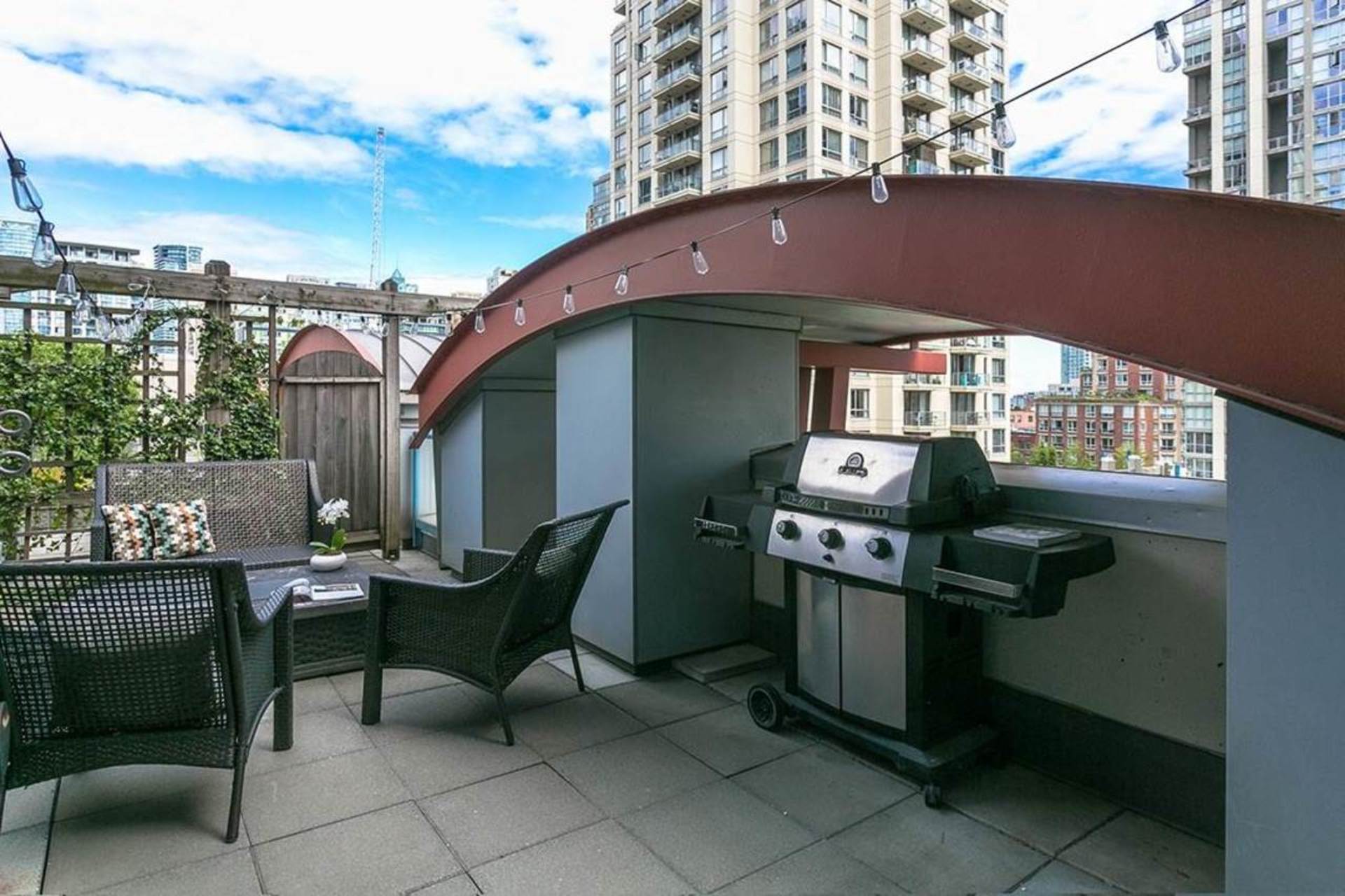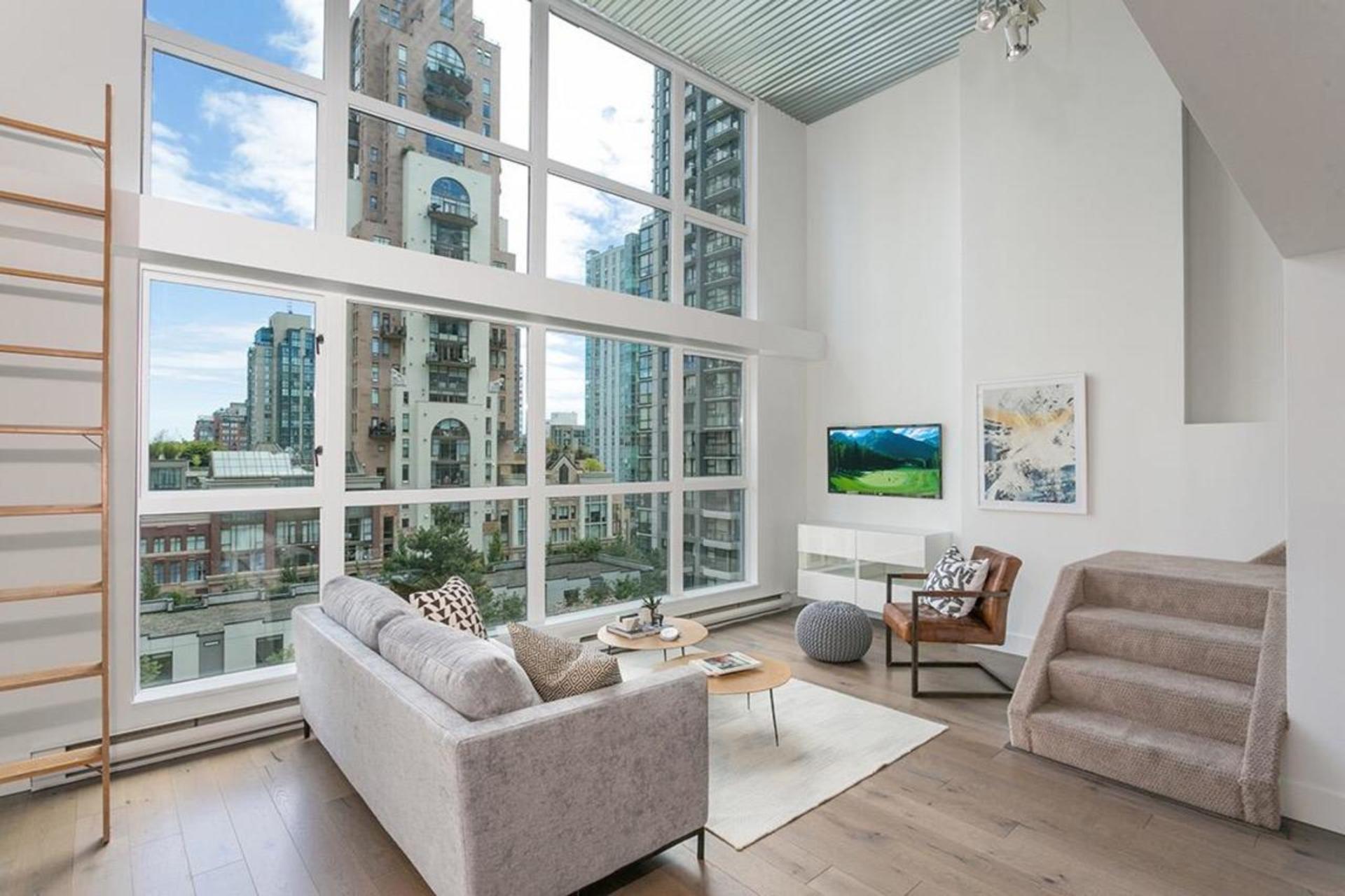 This one-of-a-kind, 994sqft, architecturally designed New York style loft has been extensively renovated from top to bottom. One of only a handful of homes w/ a city approved legal loft addition designed to optimize light, flow, separation & storage. Upstairs boasts an oversized bedroom w/large den area perfect for working from home. The open & bright main floor w/ generous 15' windows present picturesque views over low-rise buildings for maximum privacy. Enjoy summer BBQs on your private 185sqft patio that opens up to a 2000sqft seldom-used communal deck. Additional highlights incl. engineered h/w, custom steel railing/ceiling, enclosed laundry/storage, new kitchen/bath, Caesarstone, Cantu faucets, Bosch apps, new paint & blinds. Steps to all Yaletown has to offer. Prkg/storage included.