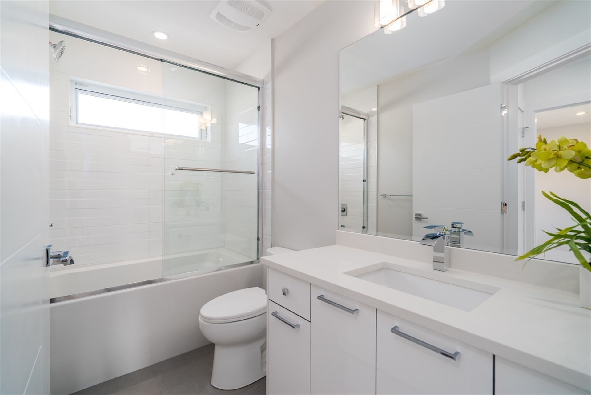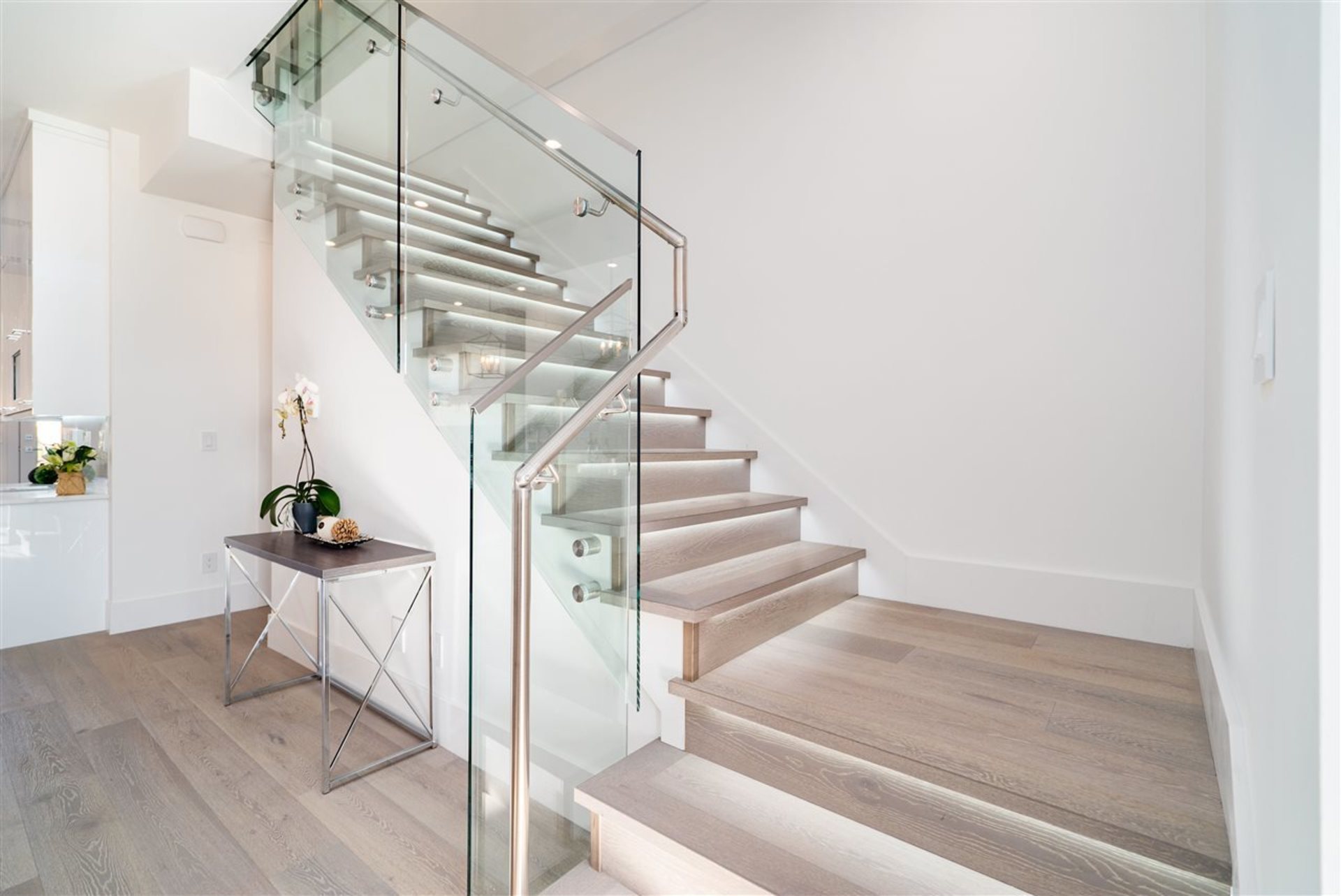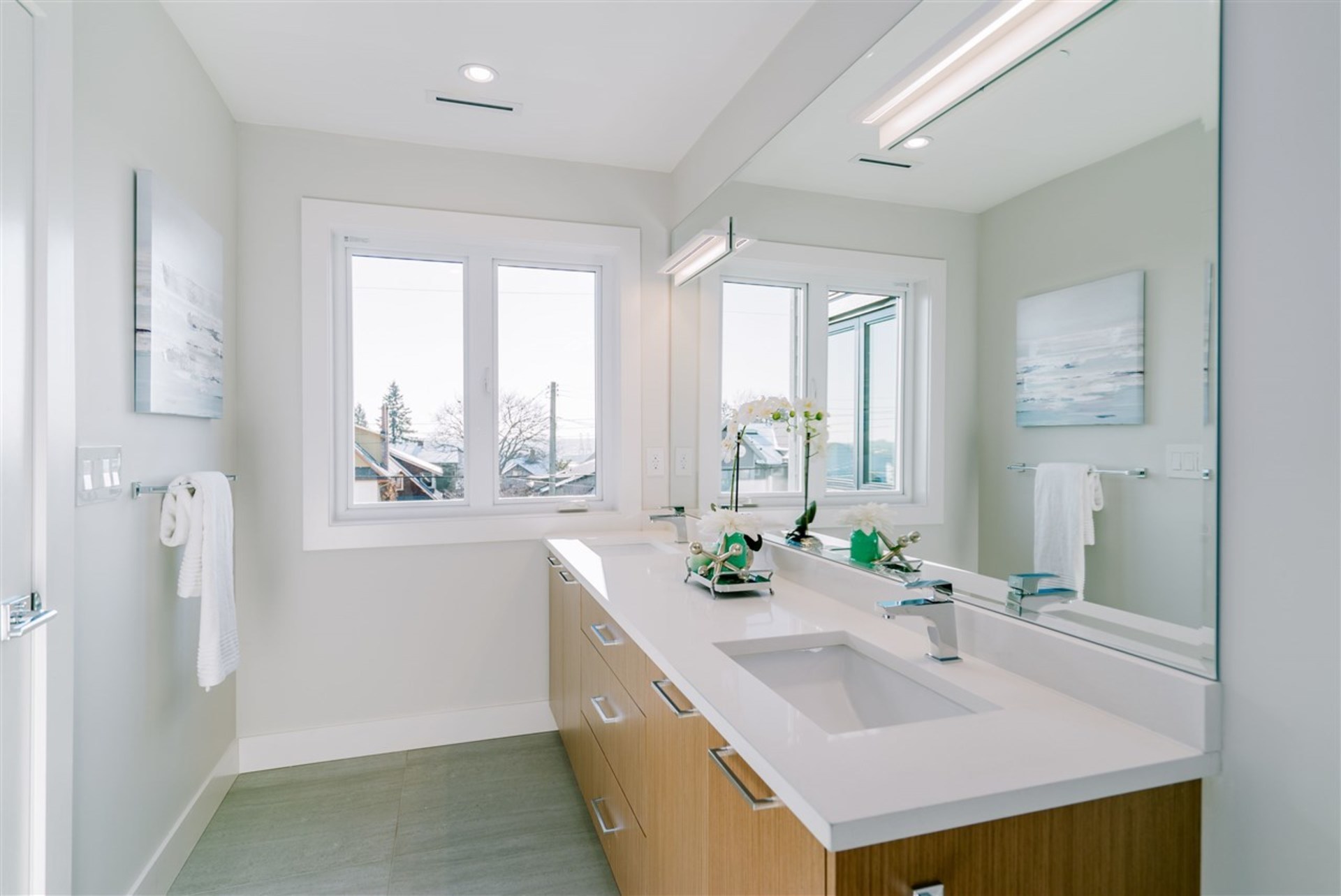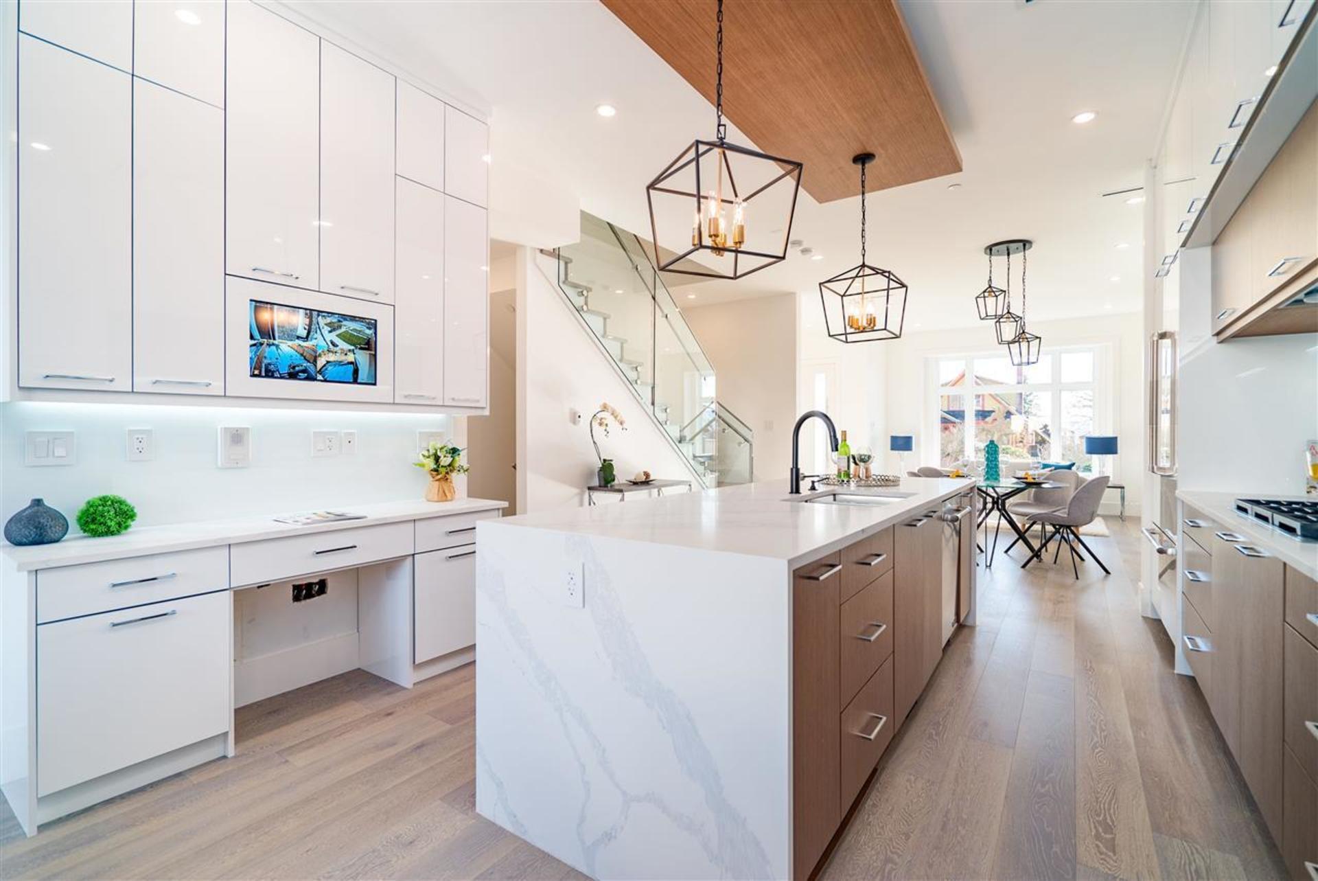 These brand new, architecturally designed, 3-level duplexes are located in the heart of Central Lonsdale. The gorgeous, 2720sqft, 4 bed, 5 bath, Canada-Place-view-homes include a 1 bedroom suite ideal for rental revenue or for the in-laws. Each unit has a spacious open concept floorplan with living room, kitchen, dining & family room on the main, 3 bed, 2 baths up & a beautiful sky-deck off the master. Vaulted ceilings, high-end integrated appliances, wide plank h/w floors, radiant in-floor heating, AC, HRV, 2 fireplaces, built-in vacuum, security and a fully fenced private yard are what set these homes apart. No expense spared. Ranking at the top of the walk-ability scale, close to everything Central Lonsdale has to offer –parks, Ridgeway school, Whole Foods, banks, restaurants & shops.
