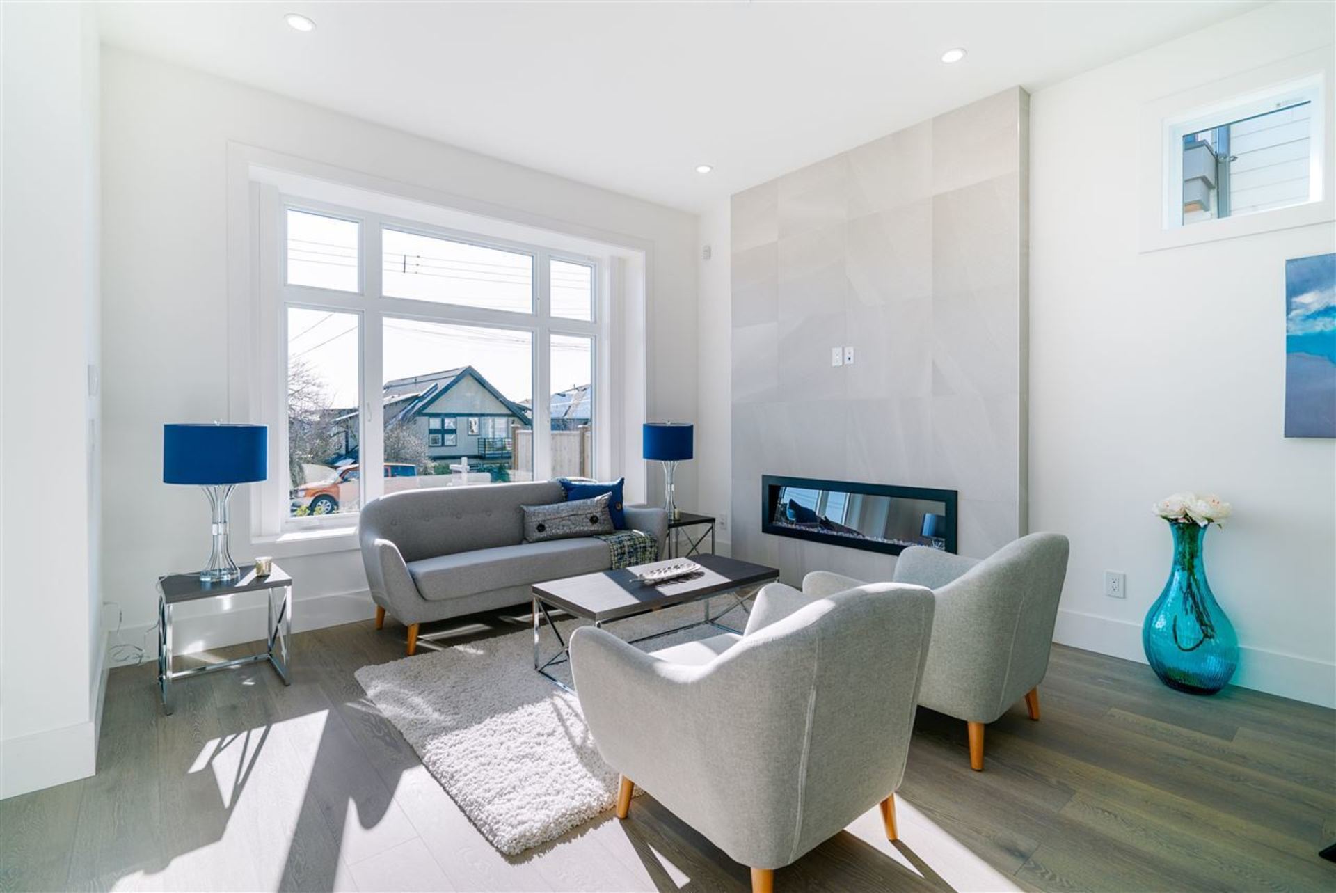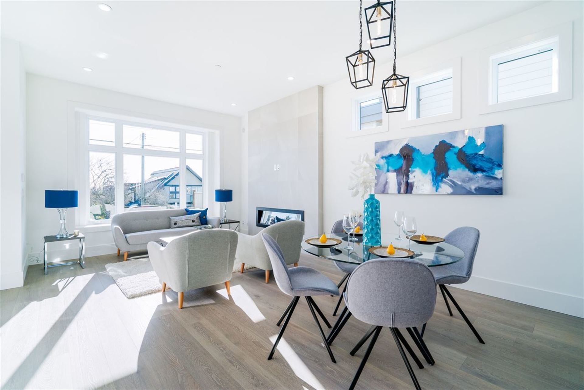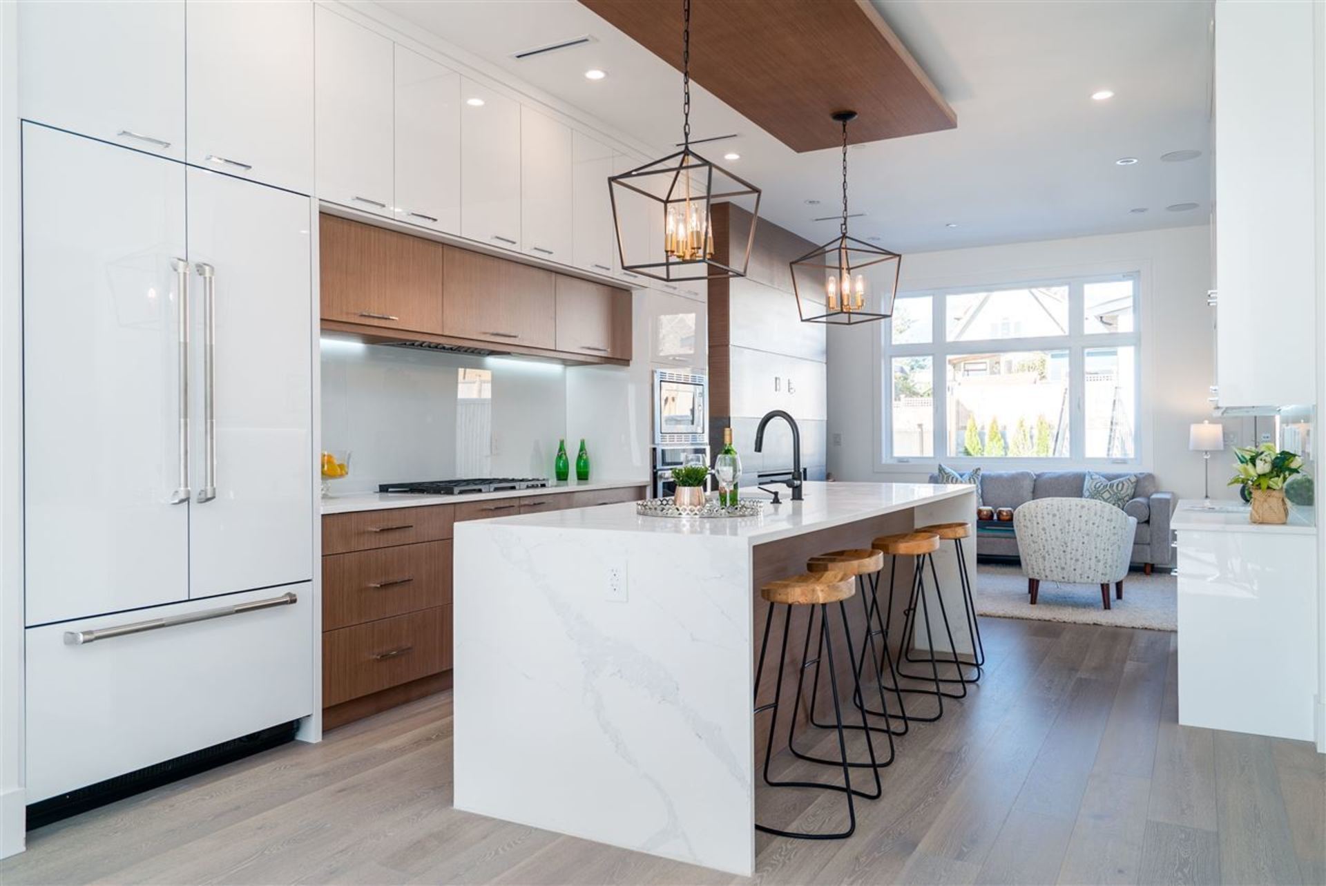 Corner unit! These brand new, architecturally designed, 3-level duplexes are located in the heart of Central Lonsdale. The gorgeous, 2720sqft, 4 bed, 5 bath, Canada-Place-view-homes include a 1 bedroom suite ideal for rental revenue or for the in-laws. Each unit has a spacious open concept floorplan with living room, kitchen, dining & family room on the main, 3 bed, 2 baths up & a deck off the master. Vaulted ceilings, high-end integrated appliances, wide plank h/w floors, radiant in-floor heating, AC, HRV, 2 fireplaces, built-in vacuum, security and a fully fenced private yard are what set these homes apart. No expense spared. Ranking at the top of the walk-ability scale, close to everything Central Lonsdale has to offer –parks, Ridgeway school, Whole Foods, banks, restaurants & shops.