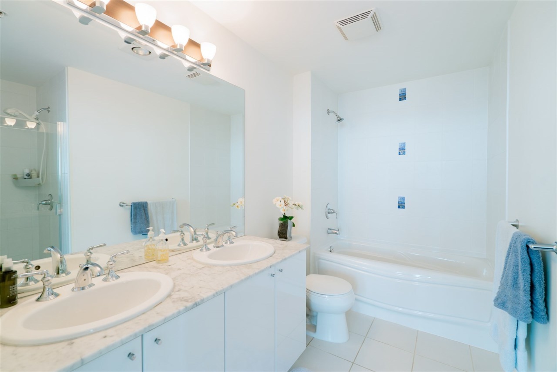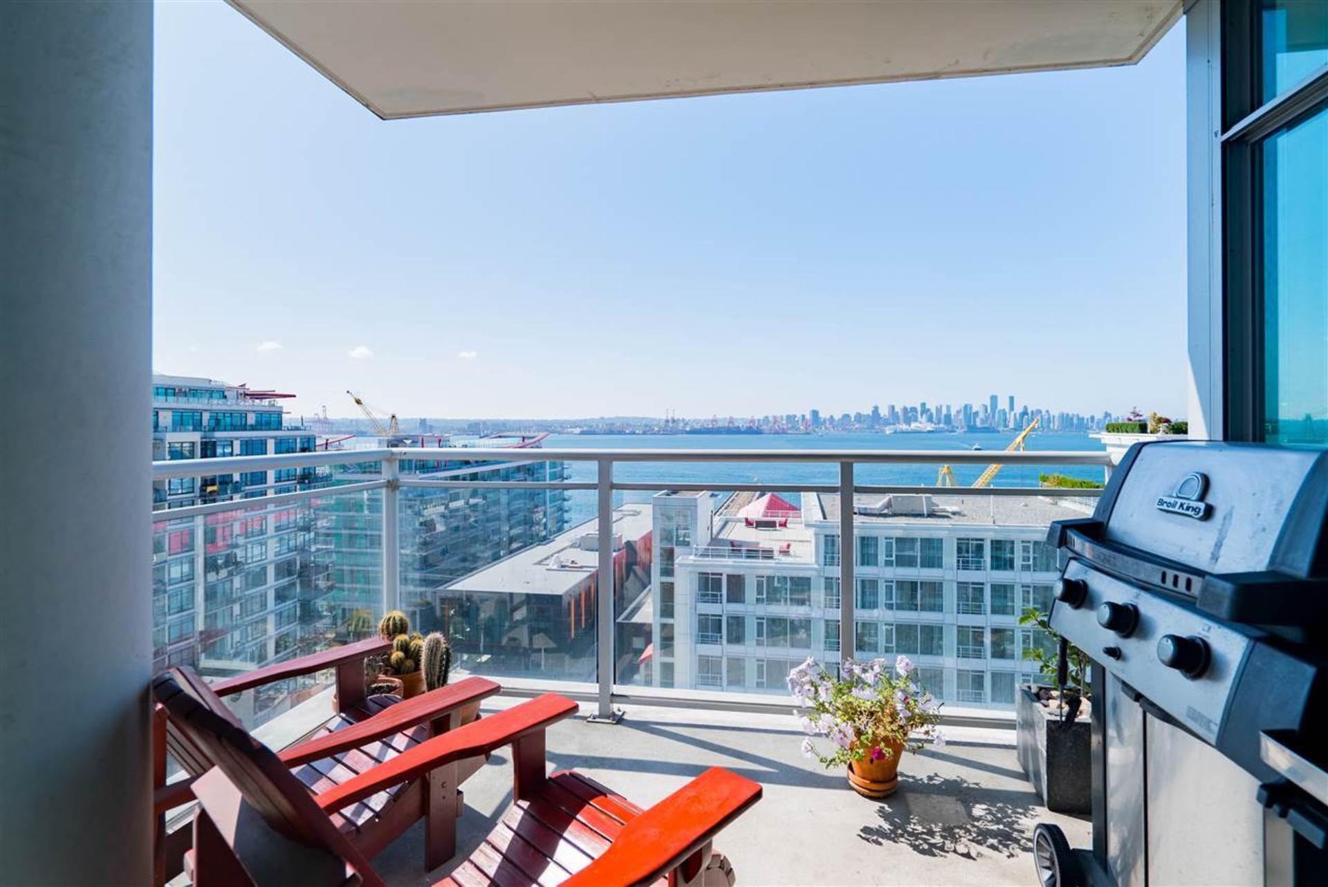 Live your best life at Premiere at the Pier! Watch the sunrise from your private 2 bed, 2 bath, 1038sqft., corner view suite located in the most desirable waterfront community in North Van. The calming water & Canada Place views from the master bedroom, living area, kitchen & deck will inspire your creativity & relax the mind. Extra height floor to ceiling windows, AC, gas stove, granite counters & newer hardwood are just a few of the features that make this home a must see! Owners have exclusive access to the Pinnacle Hotel amenities including an indoor pool, hot tub, gym & sauna. With a walkability rating of 99, you can't find a more convenient location to call home. Steps away from Lonsdale Quay, restaurants, shops & the seabus. Includes parking storage and a daily dose of vitamin Sea!
