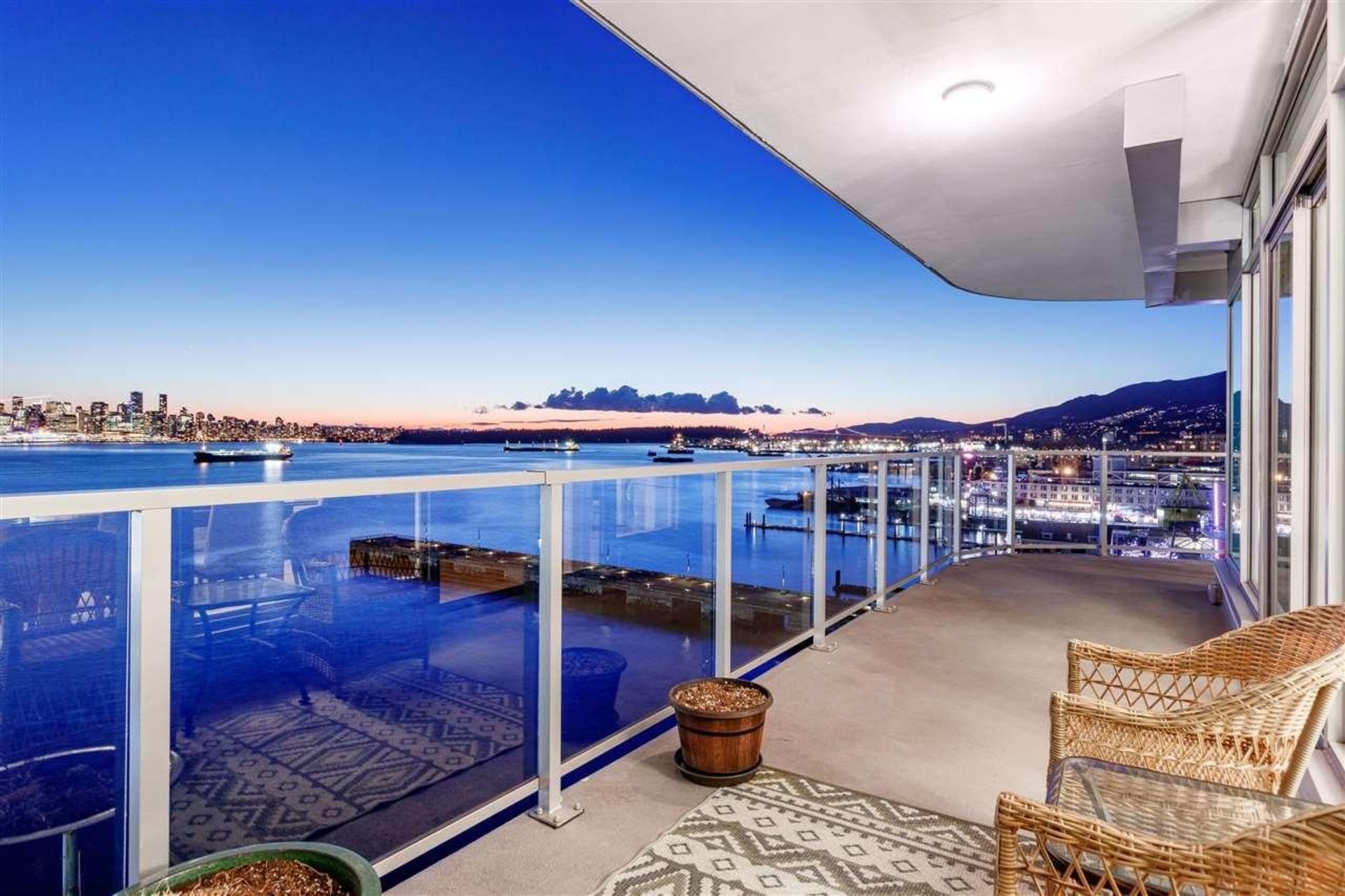 Absolutely stunning unobstructed waterfront views; welcome home to North Vancouver’s’ most beautiful and coveted waterfront living, a kaleidoscope of water entertainment. This immaculate, 2 bedroom & den home offers the very best in living with top quality finishing, creating a lifestyle like no other, with floor to ceiling windows, 1470 sq' of open concept living space and a 378 sq’ wrap around deck. Enjoy the Scavolini kitchen, Bosch appliances, luxurious master ensuite and air conditioning. Entertain on Trophy's roof terrace with kitchen, fire-pit & hot tub and enjoy VIP privileges and concierge services at the Pinnacle Hotel with a 5 lane lap pool, fully equipped gym, steam room, sauna. It's all about lifestyle & location; walk everywhere. This is a must see!