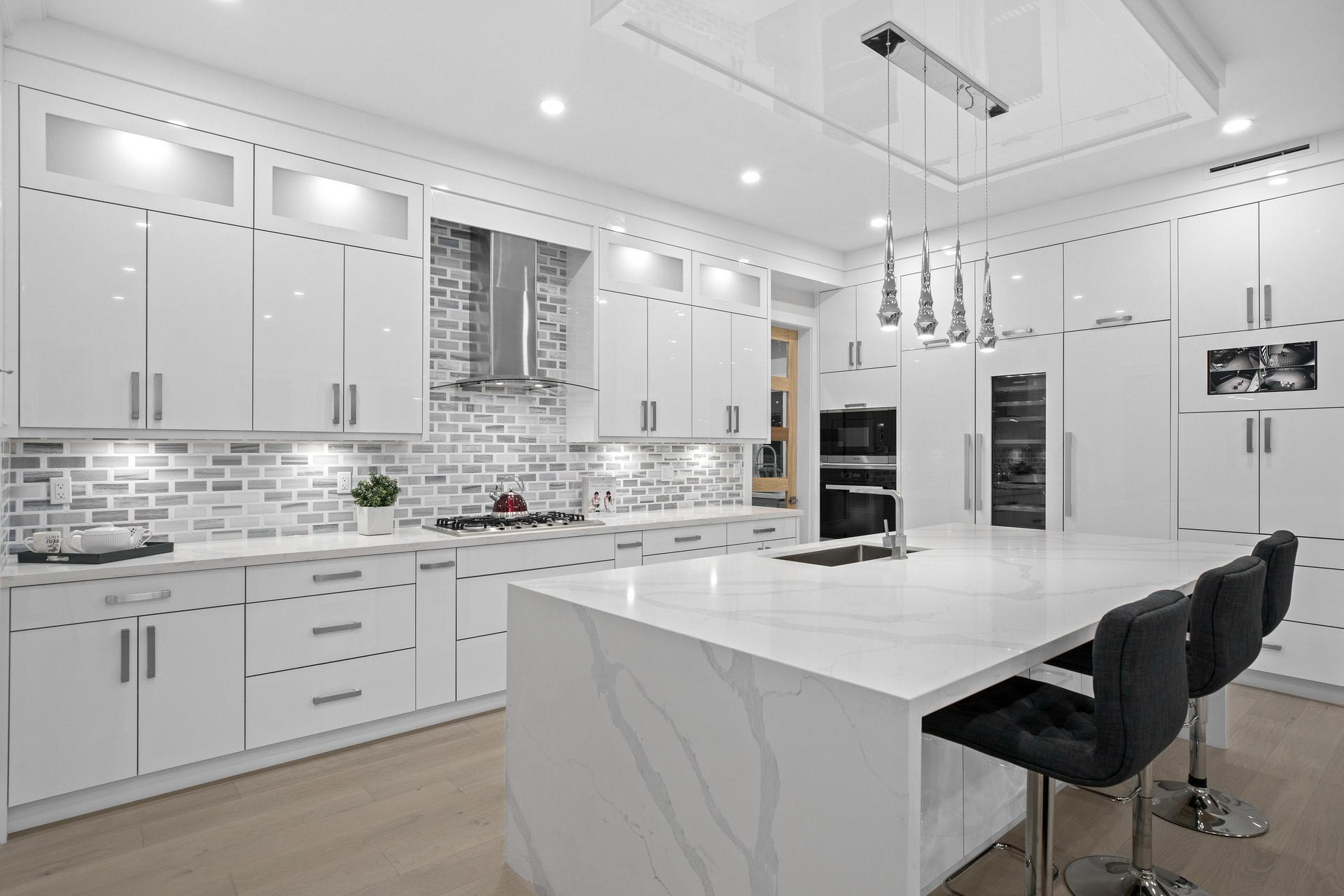 This beautiful, brand new 6 bed/6 bath, contemporary custom home has more than 5000sqft of living space with luxury finishes & designer upgrades throughout. The sleek gourmet kitchen & additional wok kitchen make family living & entertaining easy. The home comes fully loaded with Miele appliances, wine fridge, central kick-vac, AC, Eclipse sliding doors, radiant heat, custom cabinetry, large rec room with wet bar & 10' ceilings on the main complete with surround sound. Take a spa day in your own steam or enjoy an evening in your own home theatre. The oversized decks extend the living space overlooking a professionally landscaped yard with in-ground sprinklers. 2 bed legal suite included. Walking distance to shopping, parks, restaurants, and the beach!