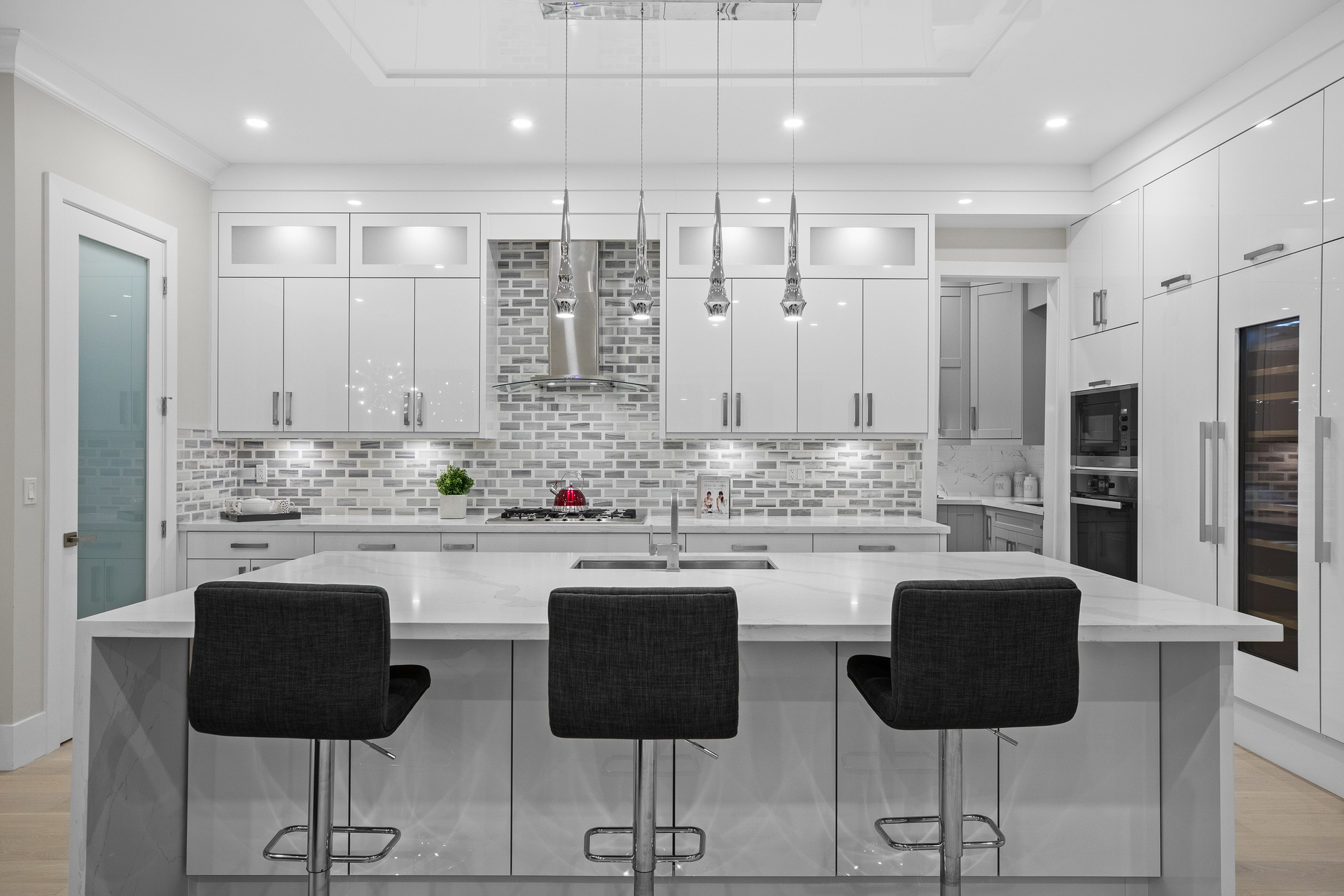 This beautiful, brand new 6 bed/6 bath, contemporary custom home has more than 5000sqft of living space with luxury finishes & designer upgrades throughout. The sleek gourmet kitchen & additional wok kitchen make family living & entertaining easy. The home comes fully loaded with Miele appliances, wine fridge, central kick-vac, AC, Eclipse sliding doors, radiant heat, custom cabinetry, large rec room with wet bar & 10' ceilings on the main complete with surround sound. Take a spa day in your own steam or enjoy an evening in your own home theatre. The oversized decks extend the living space overlooking a professionally landscaped yard with in-ground sprinklers. 2 bed legal suite included. Walking distance to shopping, parks, restaurants, and the beach!