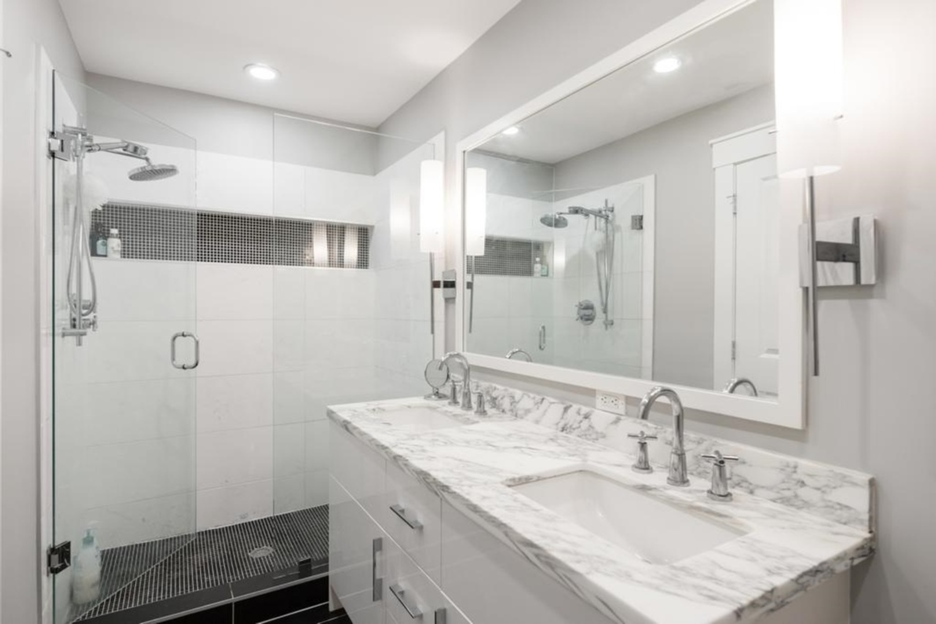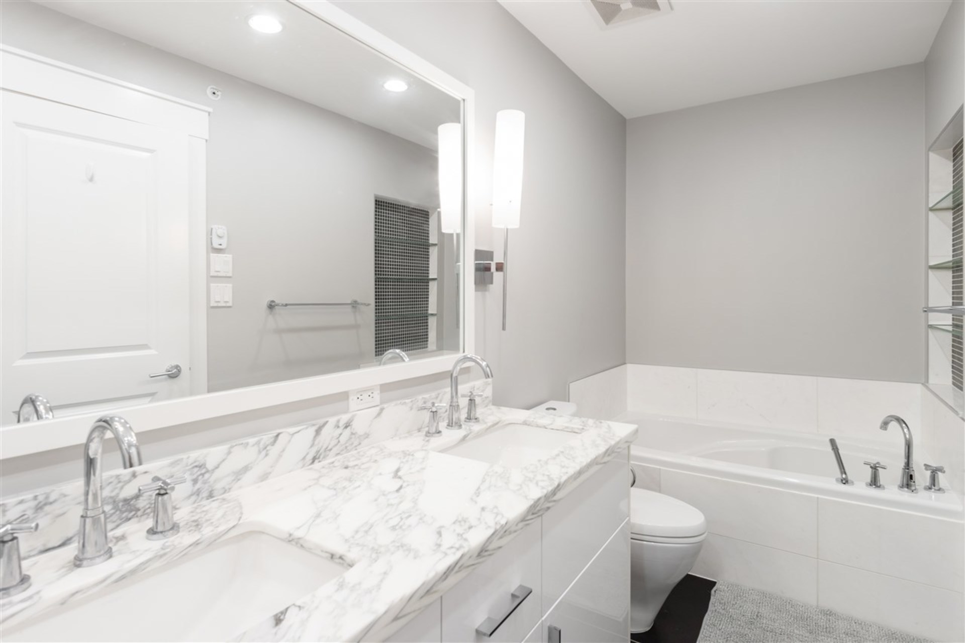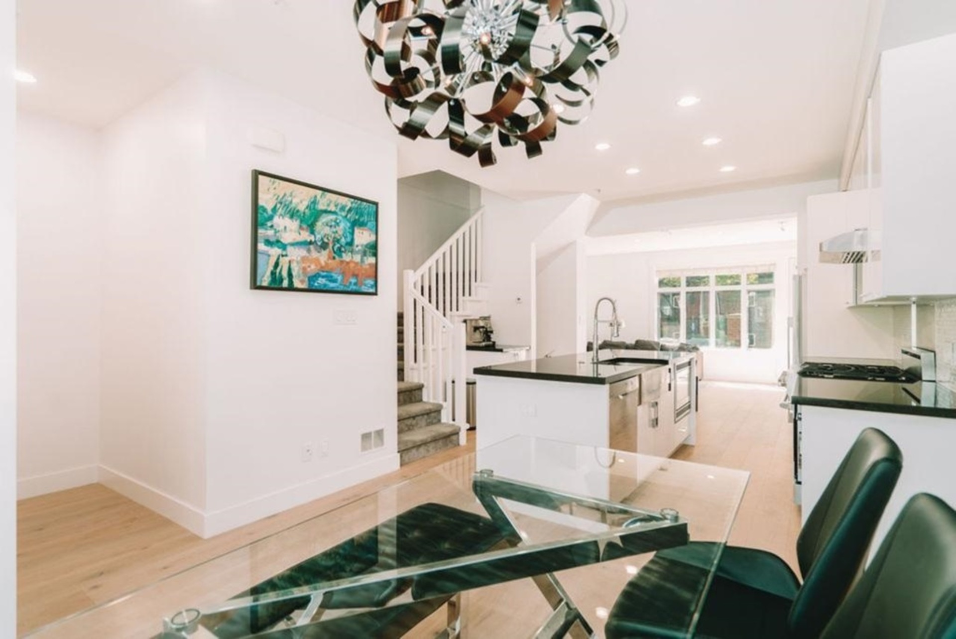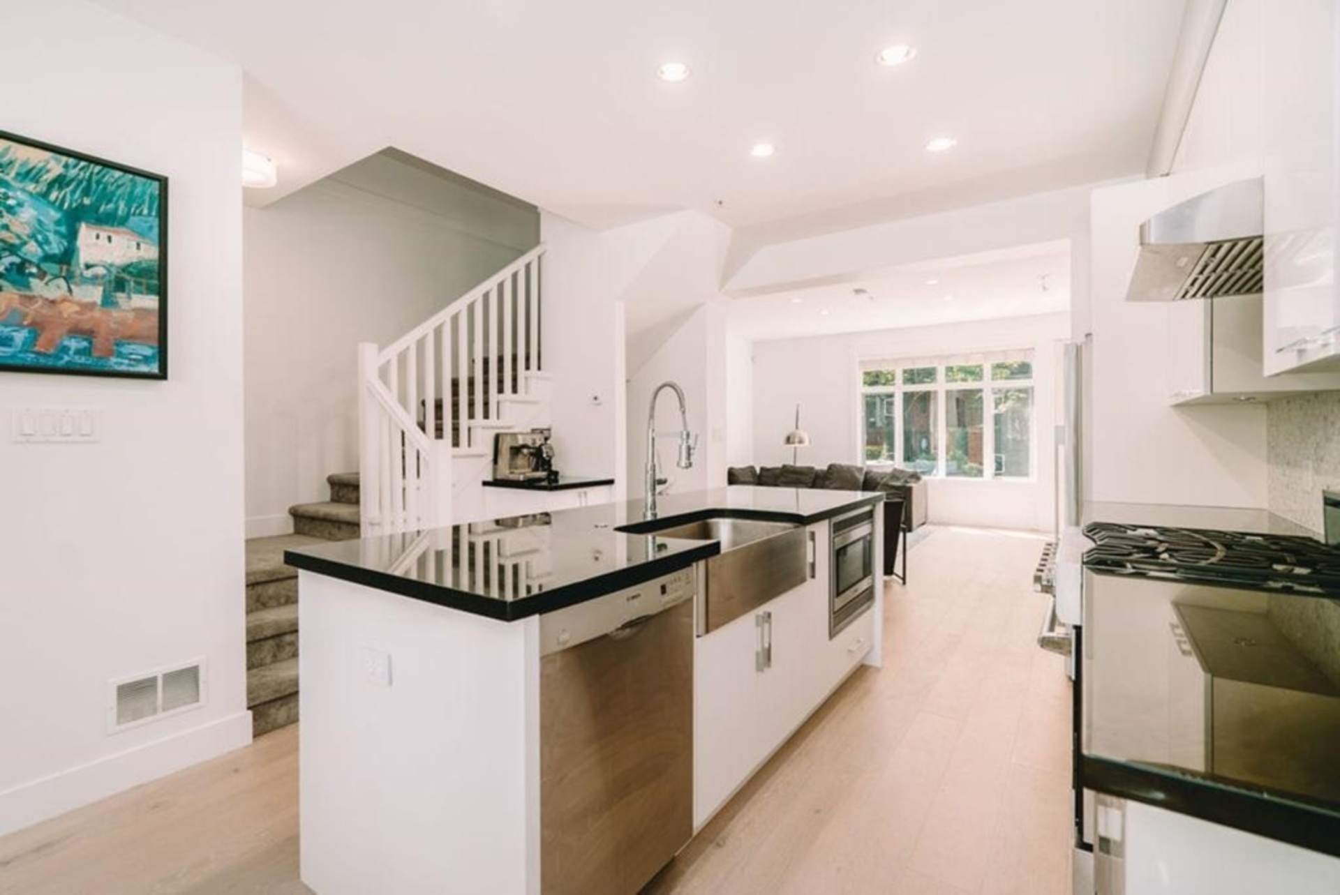 Rare & timeless. 1637sf., 3 BR, 3 BATH, TH w/perfect mix of classic & modern in true S. Granville. Perched above pedestrians, this home was thoughtfully updated w/house-sized living & gourmet kitchen/dining on main & bedrooms upstairs. Lower level family/guest room provide direct access to your own 2-car, gated garage w/storage in secure parkade. Recently renovated w/premium flooring, carpet, lighting, kitchen/bath cabinet updates & additions, new Viking dual fuel range, high cfm hood fan, Fisher & Paykel fridge, full-size washer & dryer & roman shades. HUGE, sunny, private patio extending the living space. Enjoy dual-zone A/C, 9' ceilings, acoustic glass & access to fitness room.Adjacent to Montgomery park, Osler Elementary and transit. Walking distance to Oakridge Mall & Top Schools!