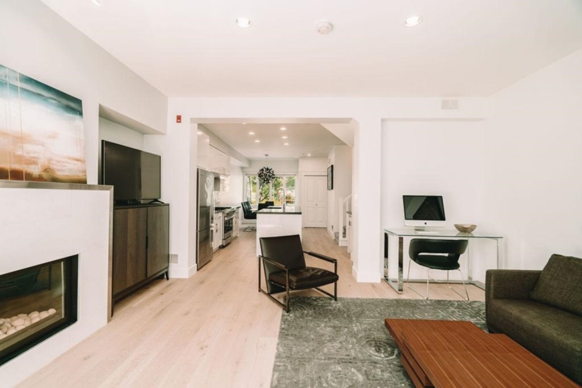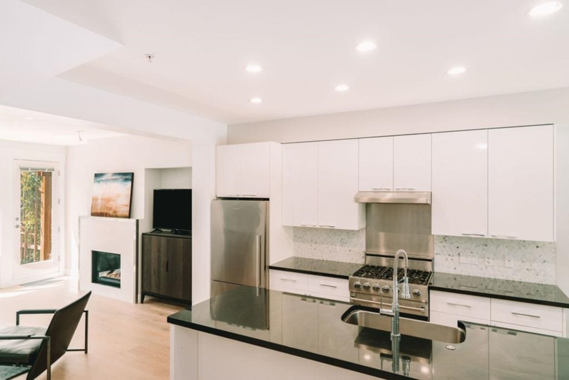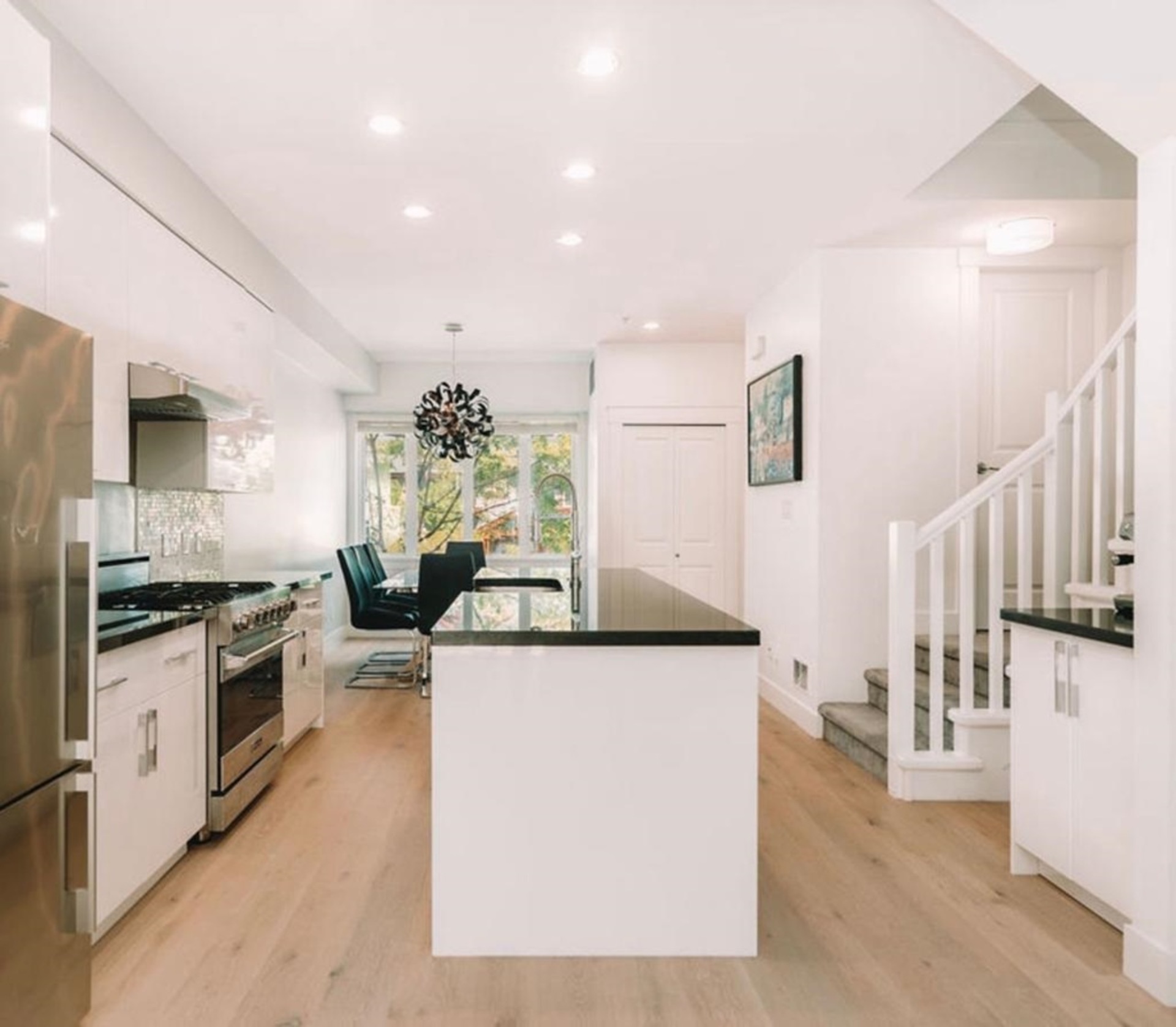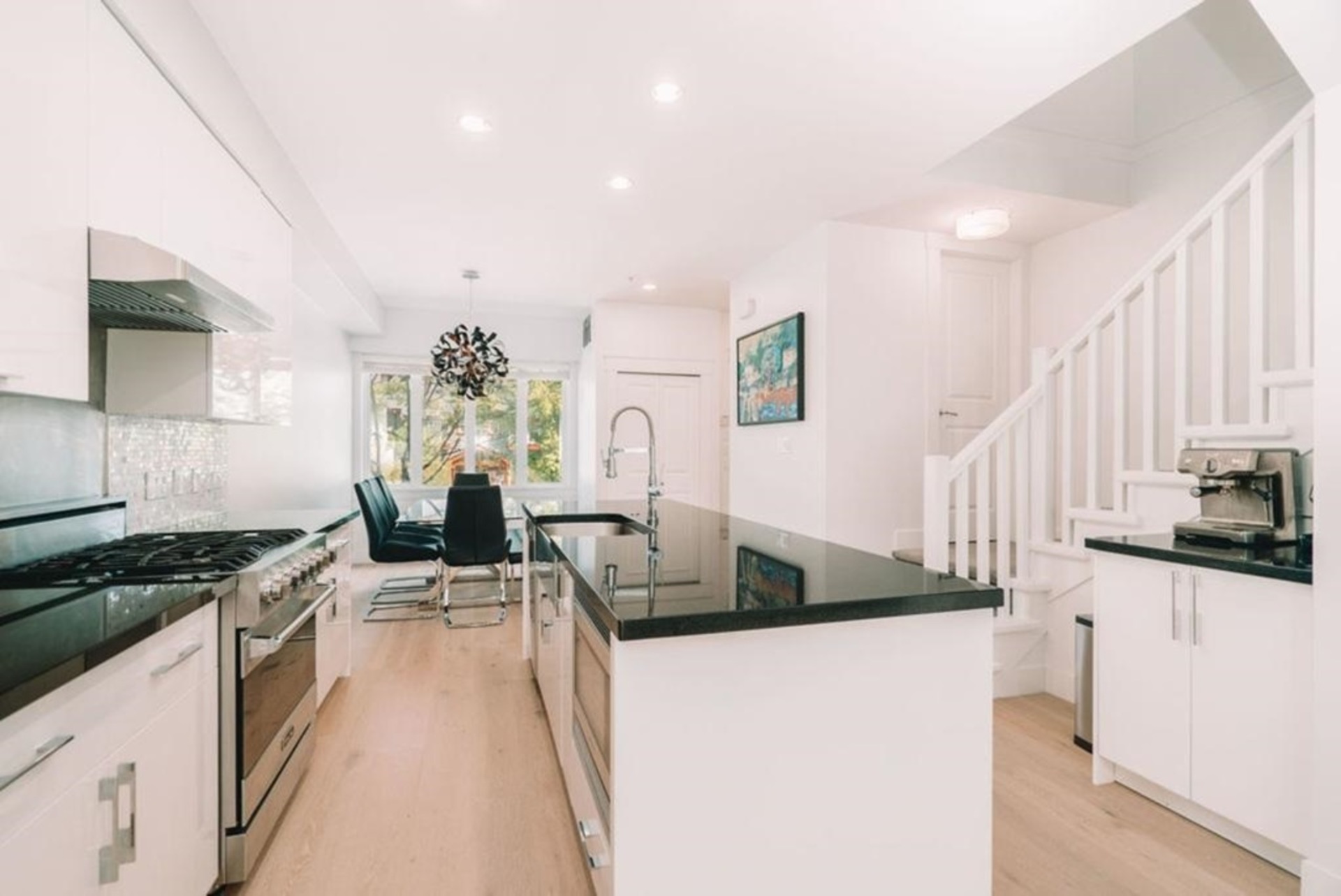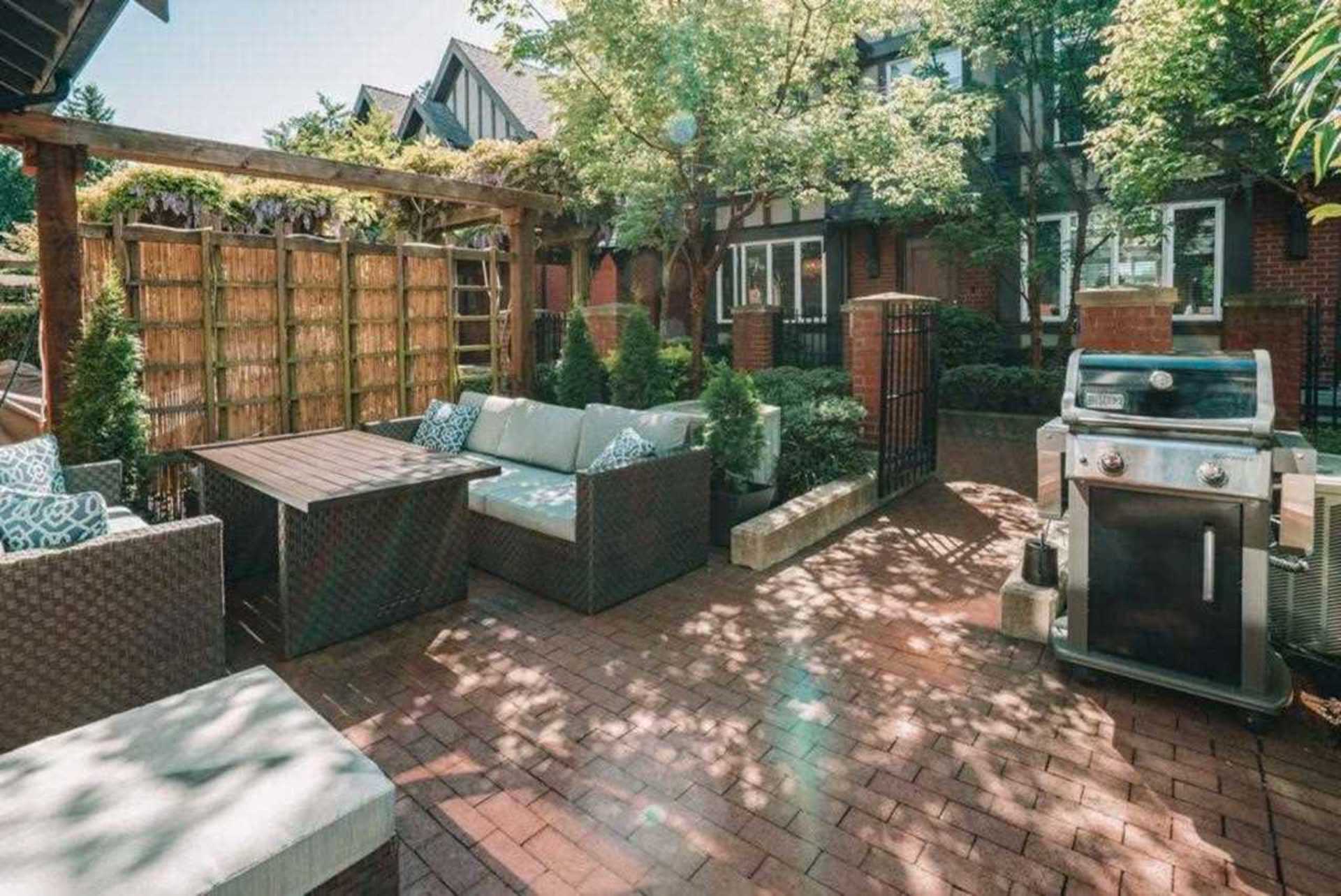 Rare & timeless. 1637sf., 3 BR, 3 BATH, TH w/perfect mix of classic & modern in true S. Granville. Perched above pedestrians, this home was thoughtfully updated w/house-sized living & gourmet kitchen/dining on main & bedrooms upstairs. Lower level family/guest room provide direct access to your own 2-car, gated garage w/storage in secure parkade. Recently renovated w/premium flooring, carpet, lighting, kitchen/bath cabinet updates & additions, new Viking dual fuel range, high cfm hood fan, Fisher & Paykel fridge, full-size washer & dryer & roman shades. HUGE, sunny, private patio extending the living space. Enjoy dual-zone A/C, 9' ceilings, acoustic glass & access to fitness room.Adjacent to Montgomery park, Osler Elementary and transit. Walking distance to Oakridge Mall & Top Schools!