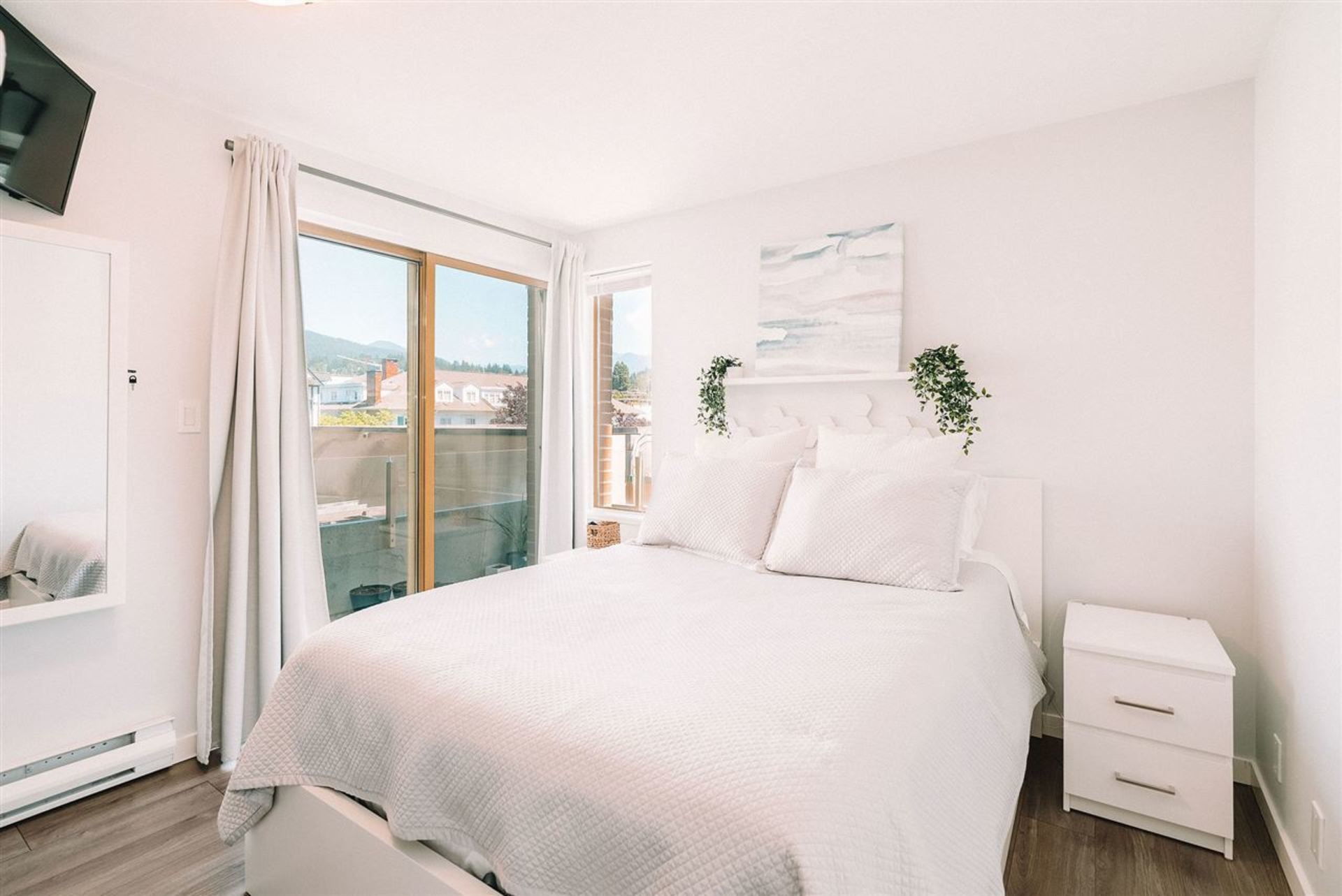 Welcome home to this completely renovated 1 bed, 1 bath, 765sqft concrete corner unit with north and south facing decks. Take in the mountain views from your bedroom or enjoy your morning coffee on your choice of 2 outdoor spaces. This home has all the conveniences with built-in shelving/storage in the laundry room, a spacious kitchen with stainless steel appliances, quartz countertops, a custom bar, in-set glass shelving & gas fireplace in the living room, a spa-inspired bathroom and your own handy ex-large storage unit across the hall from your suite. Walking distance to everything Central Lonsdale has to offer - Loblaws, restaurants, coffee shops, banks, parks and more! Leave your car at home in your own secure underground parking & live the lifestyle that you deserve!