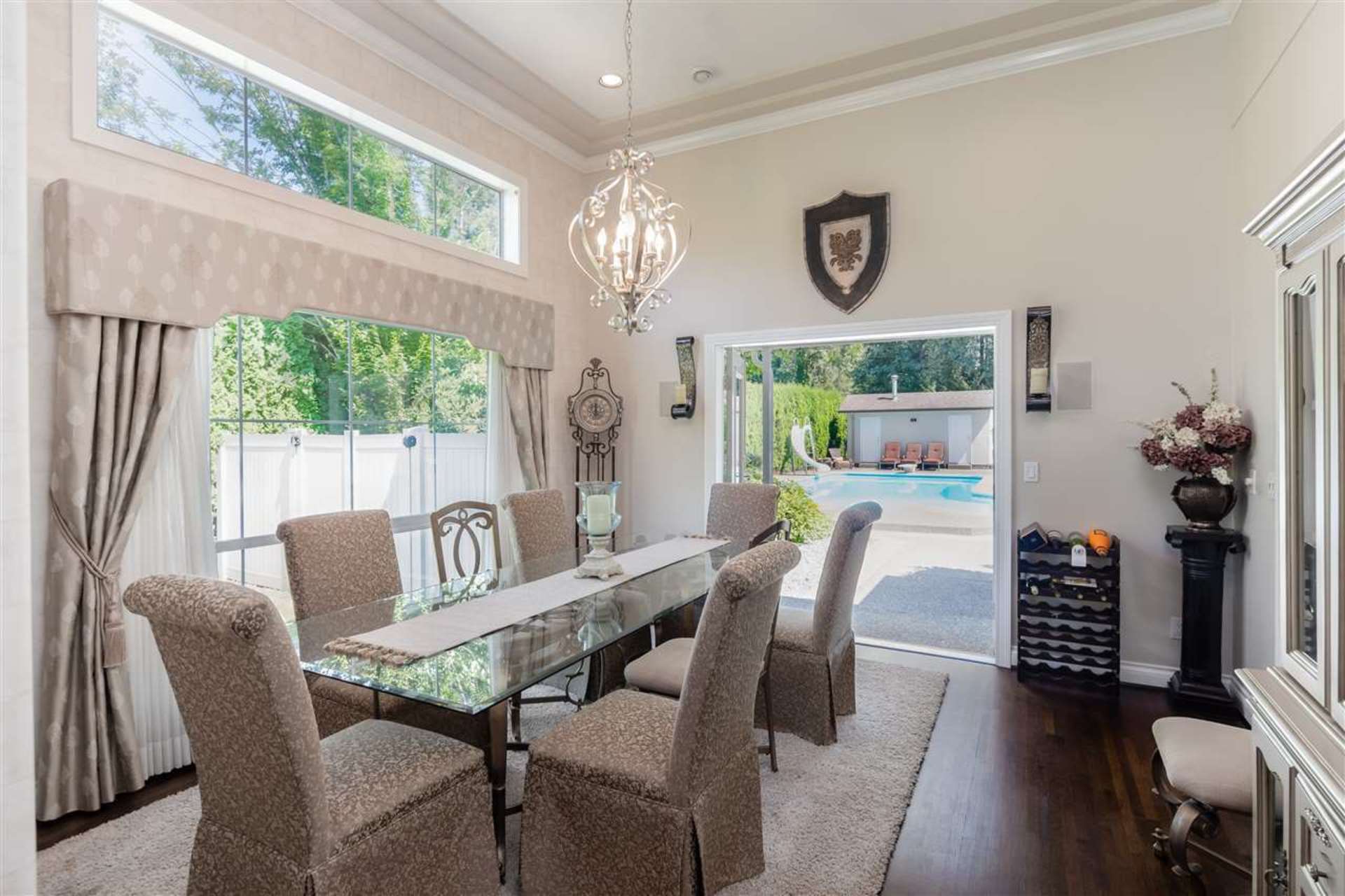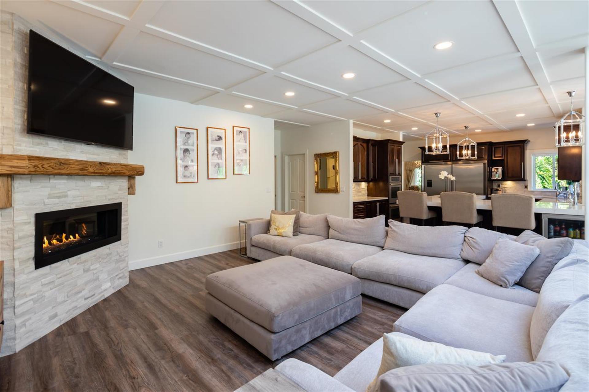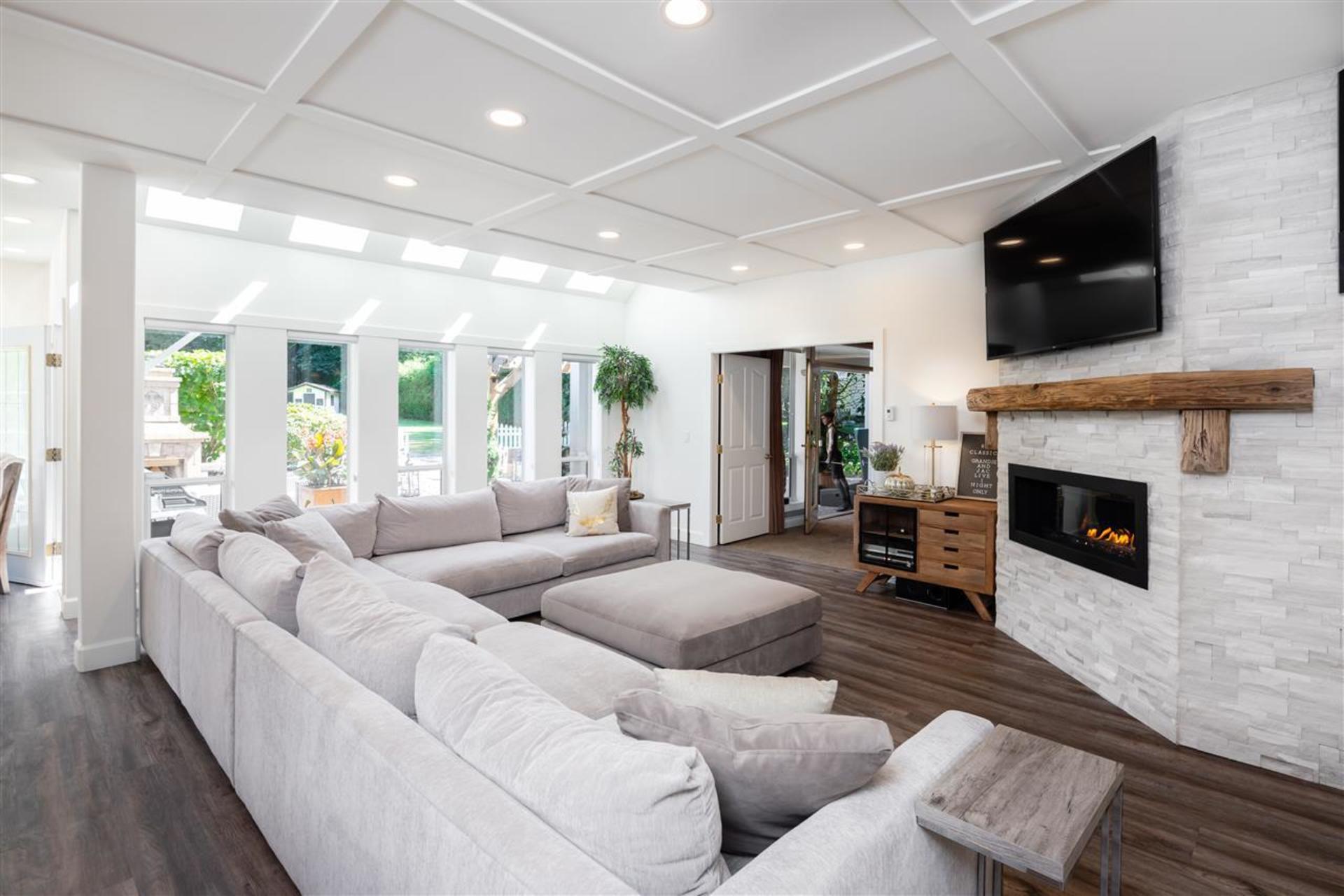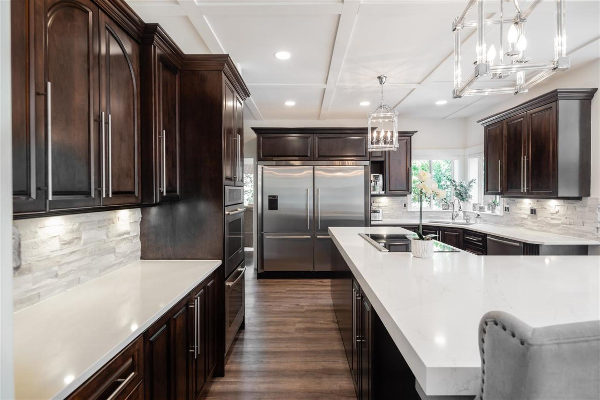 Welcome to the street of dreams! This exceptional, 6-bed + den, 5 bath, 4552 sqft., completely renovated, estate home on a beautifully landscaped one-acre property offers an unparalleled lifestyle for family living & entertaining. The grand entrance foyer with 18' ceilings and designer chandelier sets the tone while introducing a sweeping oak stairway that ascends to the upstairs bedrooms, ensuites & balcony. On the main floor the new gourmet chef's kitchen boasts top-of-the-line appliances including a Wolf induction cook-top, Jenn-Air ovens, Bosch d/w, wine fridge & commercial sized fridge/freezer. The oversized island is ideal for family gatherings with a 3" thick Caesarstone waterfall countertop creating continuous flow to the heart of the home. Entertain guests in your outdoor lounge and dining area complete with a custom built fireplace while the kids swim in the heated inground pool. After dessert, head inside to your rec-room/games room and enjoy a round