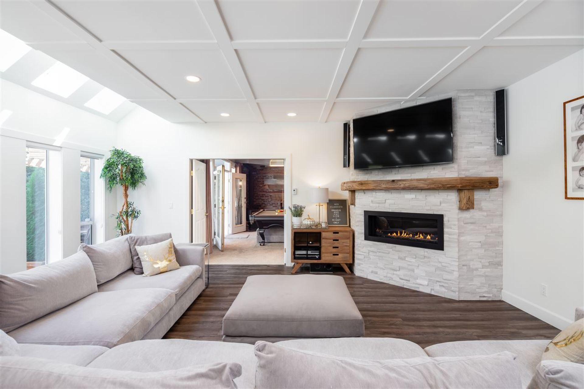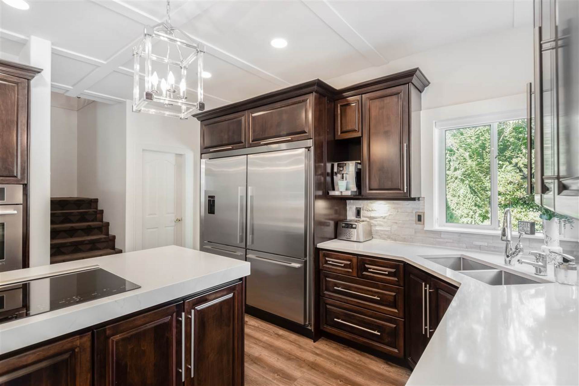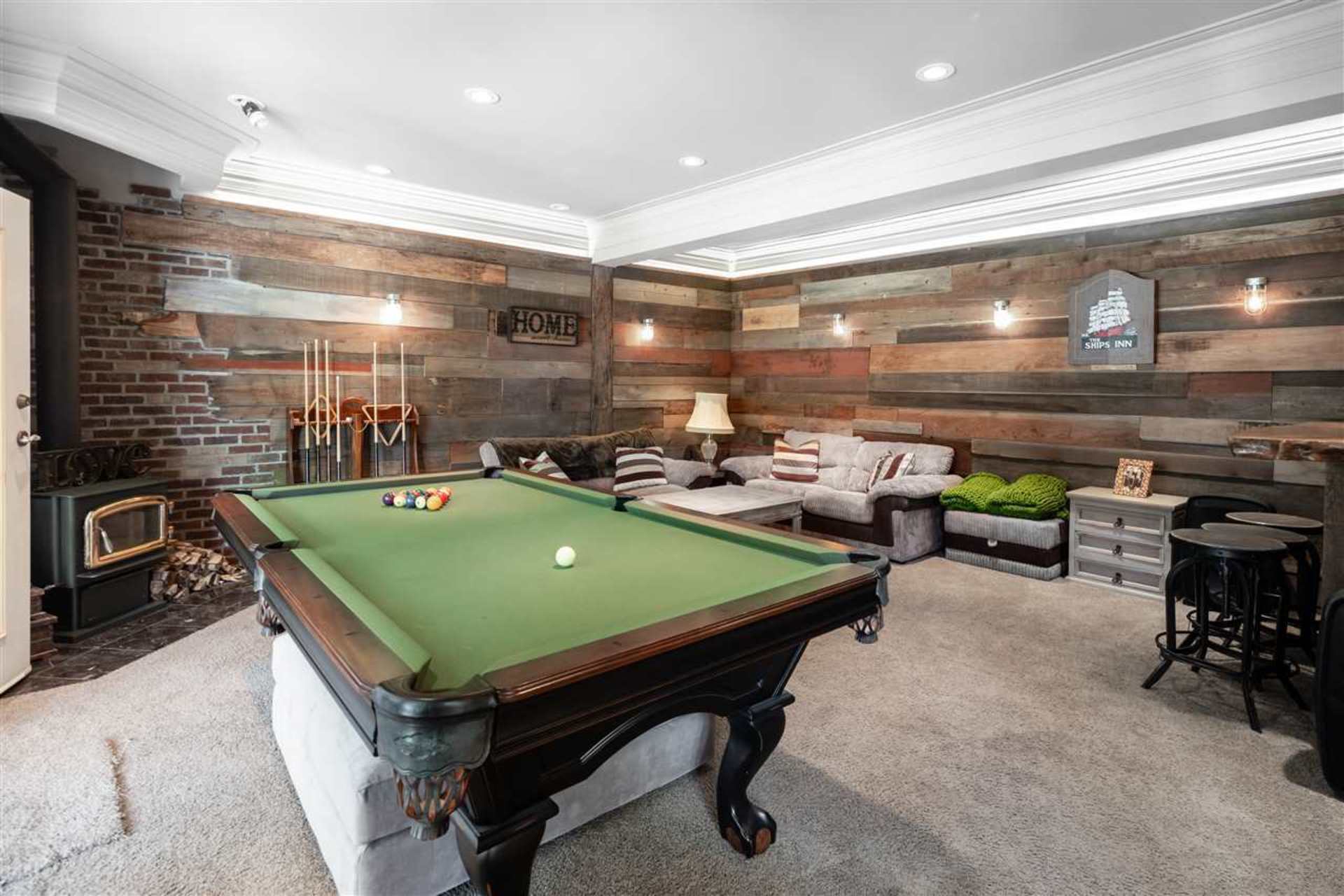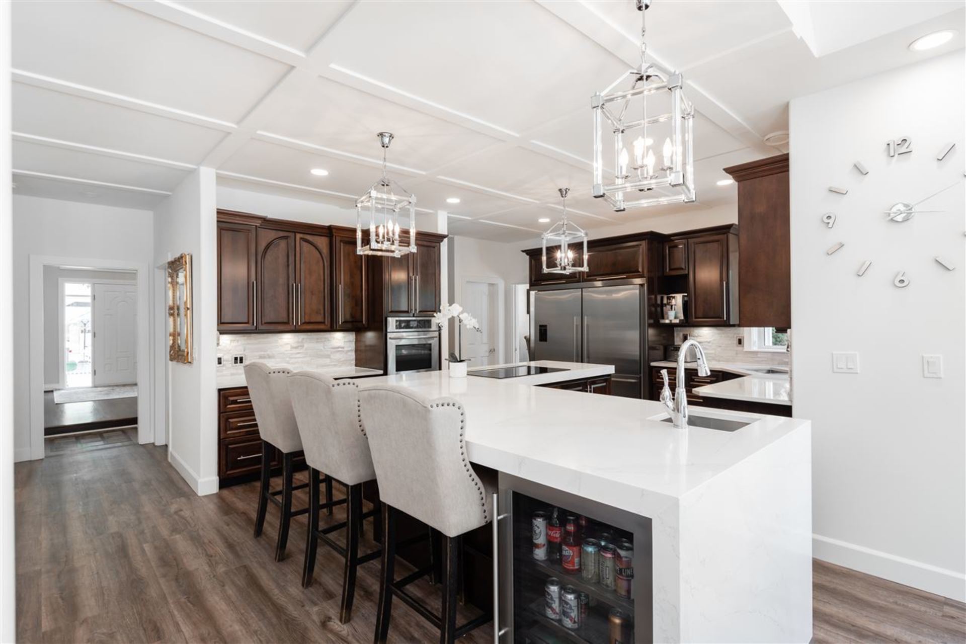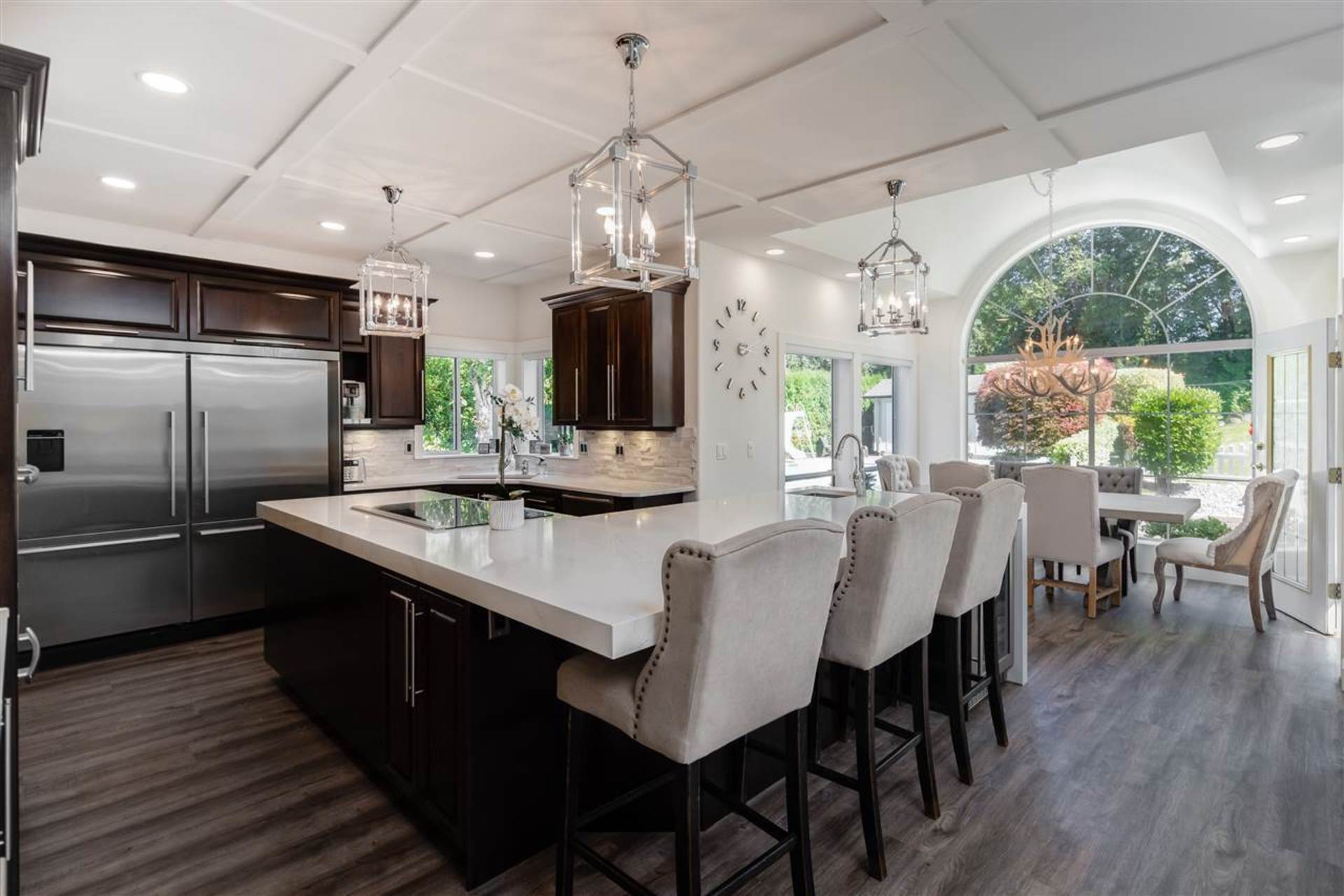 Welcome to the street of dreams! This exceptional, 6-bed + den, 5 bath, 4552 sqft., completely renovated, estate home on a beautifully landscaped one-acre property offers an unparalleled lifestyle for family living & entertaining. The grand entrance foyer with 18' ceilings and designer chandelier sets the tone while introducing a sweeping oak stairway that ascends to the upstairs bedrooms, ensuites & balcony. On the main floor the new gourmet chef's kitchen boasts top-of-the-line appliances including a Wolf induction cook-top, Jenn-Air ovens, Bosch d/w, wine fridge & commercial sized fridge/freezer. The oversized island is ideal for family gatherings with a 3" thick Caesarstone waterfall countertop creating continuous flow to the heart of the home. Entertain guests in your outdoor lounge and dining area complete with a custom built fireplace while the kids swim in the heated inground pool. After dessert, head inside to your rec-room/games room and enjoy a round