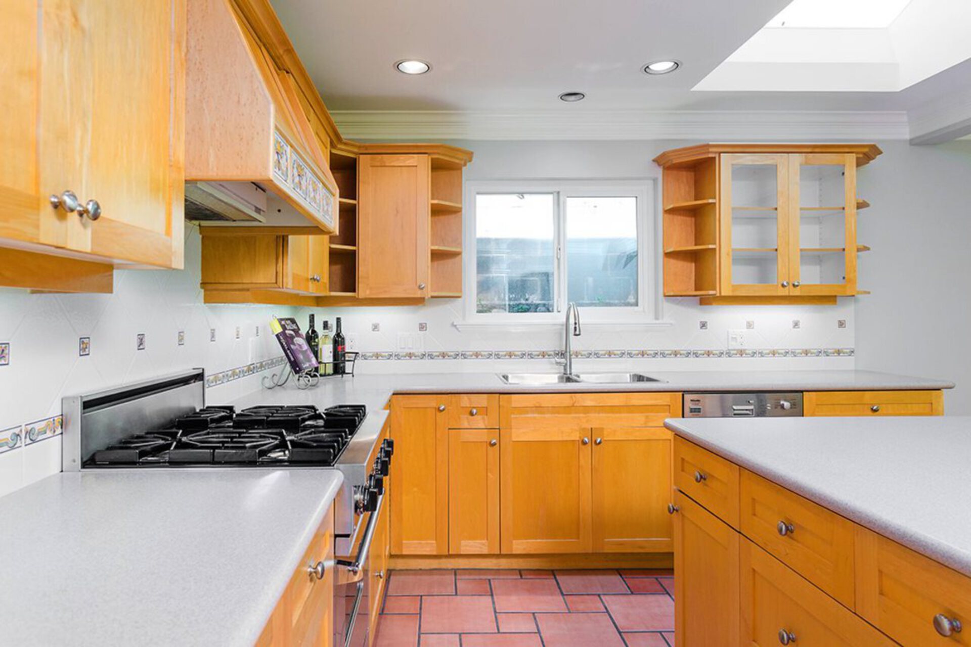 This meticulously kept 4-bed, 3-bath, perfect family home on a desirable quiet cul-de-sac is a timeless classic. The 2300sqft plan has effortless flow w/ beautiful oak h/w floors, new paint & double glazed windows, open archways, crown molding & 2 gas fireplaces connecting the living room, dining & kitchen. An abundance of natural light pours through the kitchen skylight highlighting the focal point of the home complete w/ luxury appliances: Subzero fridge, Ultraline gas stove & Miele dishwasher. Two sets of french doors provide a seamless transition to the outdoors. Retreat to your own private backyard oasis amongst mature & beautifully landscaped gardens augmented w/ a pond & a detached tiny home/office. Upstairs you'll find 4 large beds, 2 baths laundry & a cozy reading/computer nook.