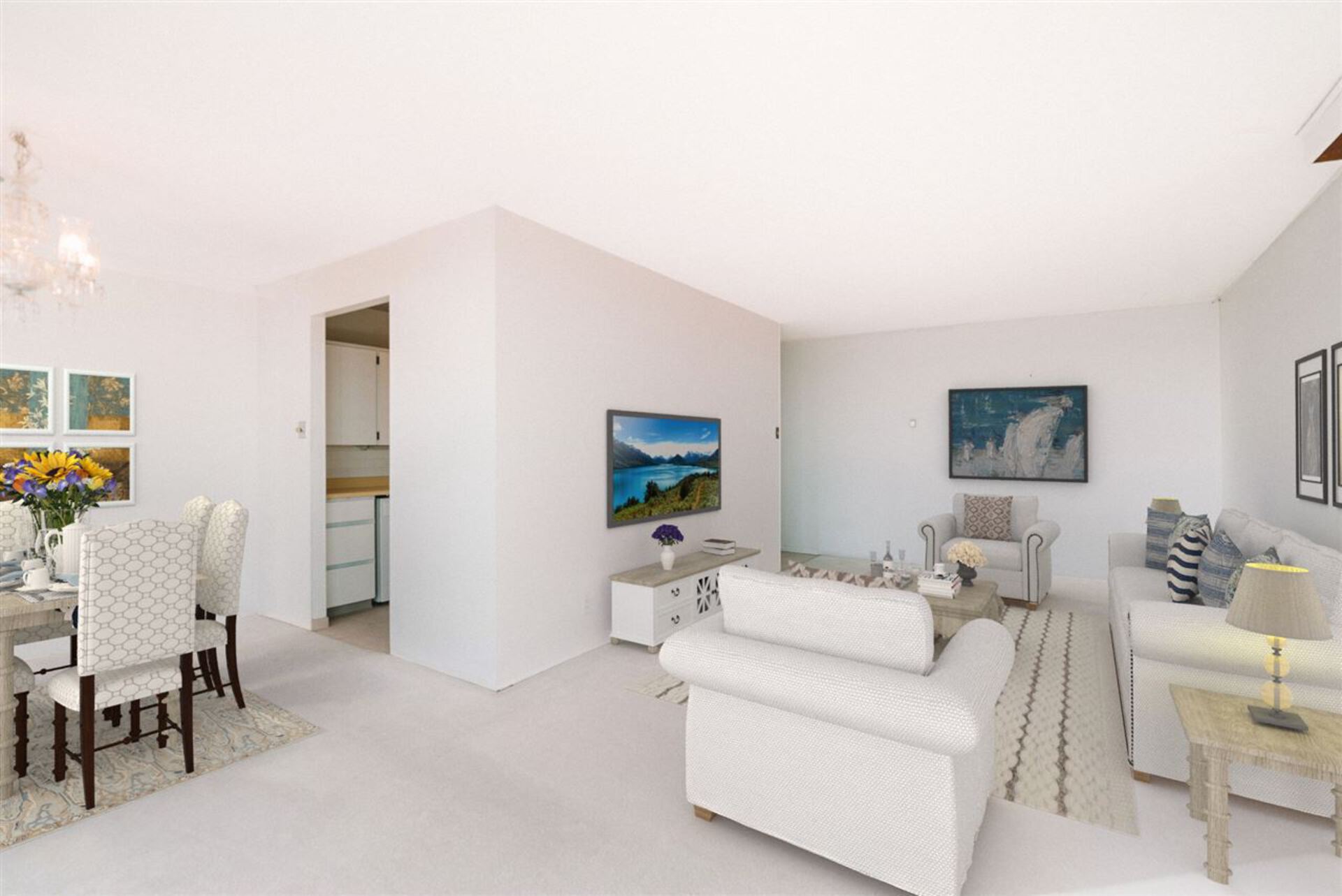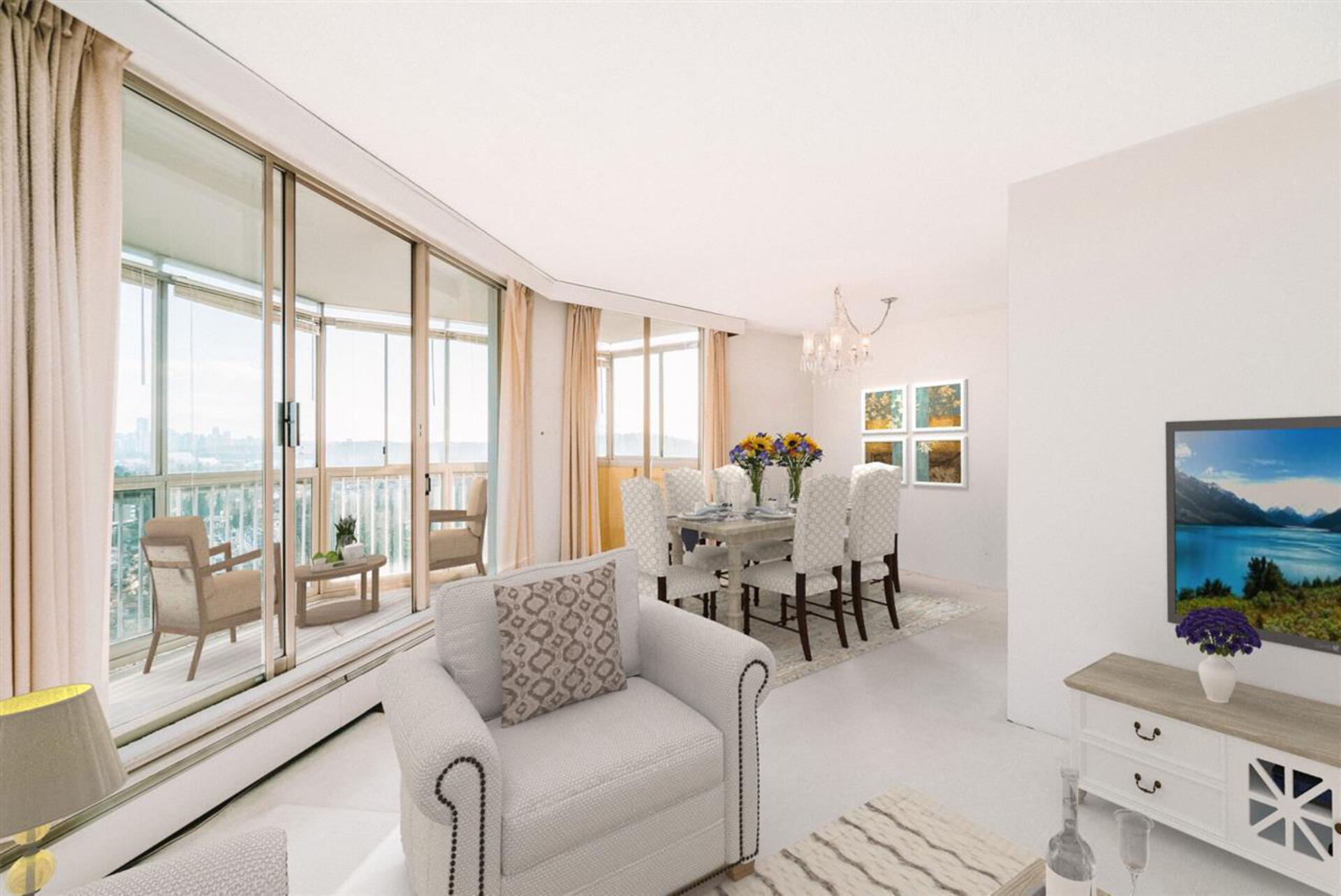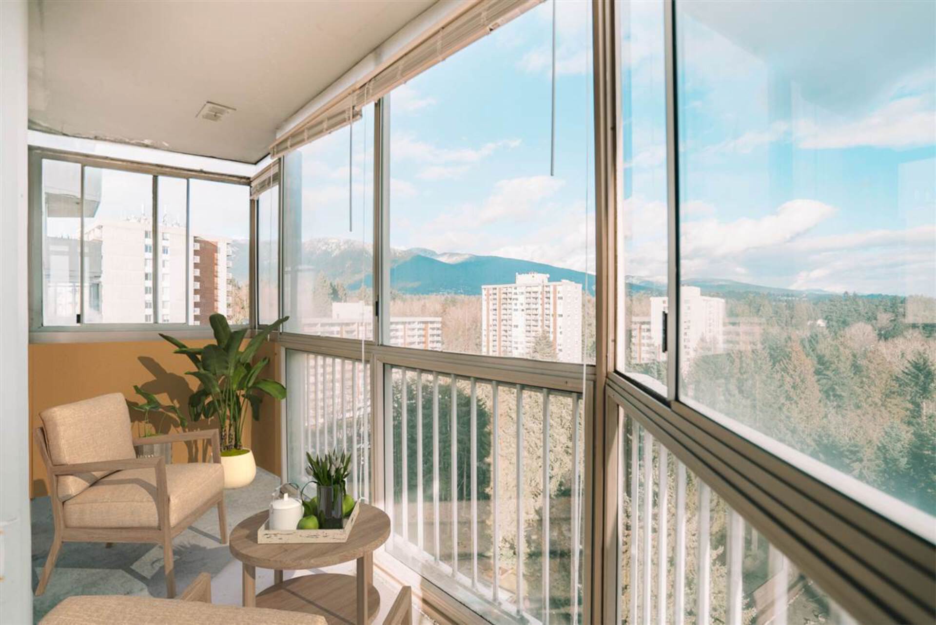 A rare find! This southeast facing, 1113 sqft., 2 bed, 2 bath concrete home in the beautiful gated community of Woodcroft offers panoramic ocean views from Vancouver Island out to UBC, & from Burrard Inlet to Grouse Mountain. Take in the revitalizing flow of the Capilano river while overlooking the tree tops and Lions Gate village from this bright & airy sanctuary in the sky. The spacious & functional layout will allow you to customize & update at a minimal cost. Features include an enclosed balcony, master walk-in closet, oversized in-suite storage, classic galley kitchen, large living area, parking & storage locker. This mini-resort offers 24/7 security & is surrounded by lush landscaped garden areas. Amenities include pool, hot tub, exercise room, etc. Easy Access to Lions gate bridge.