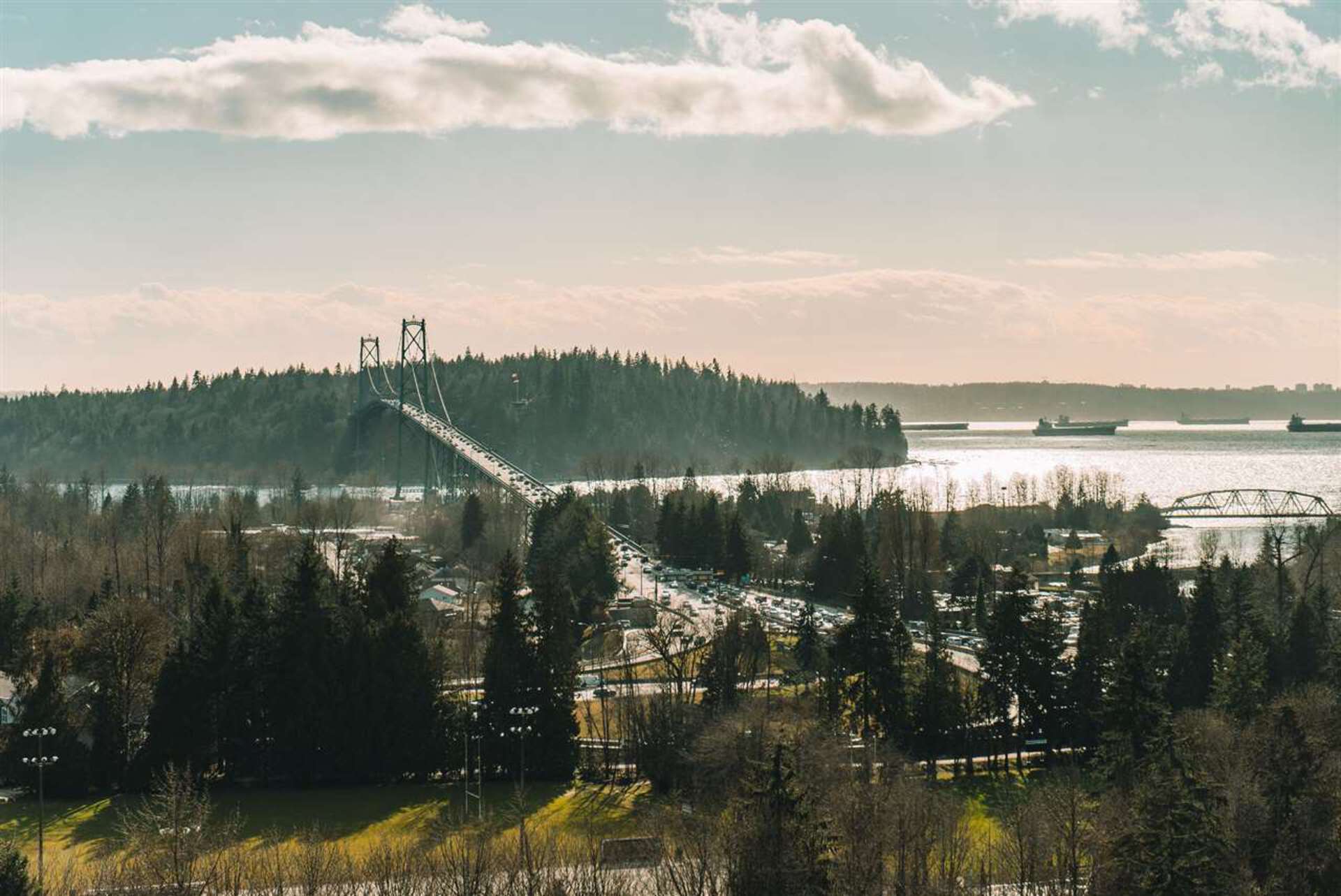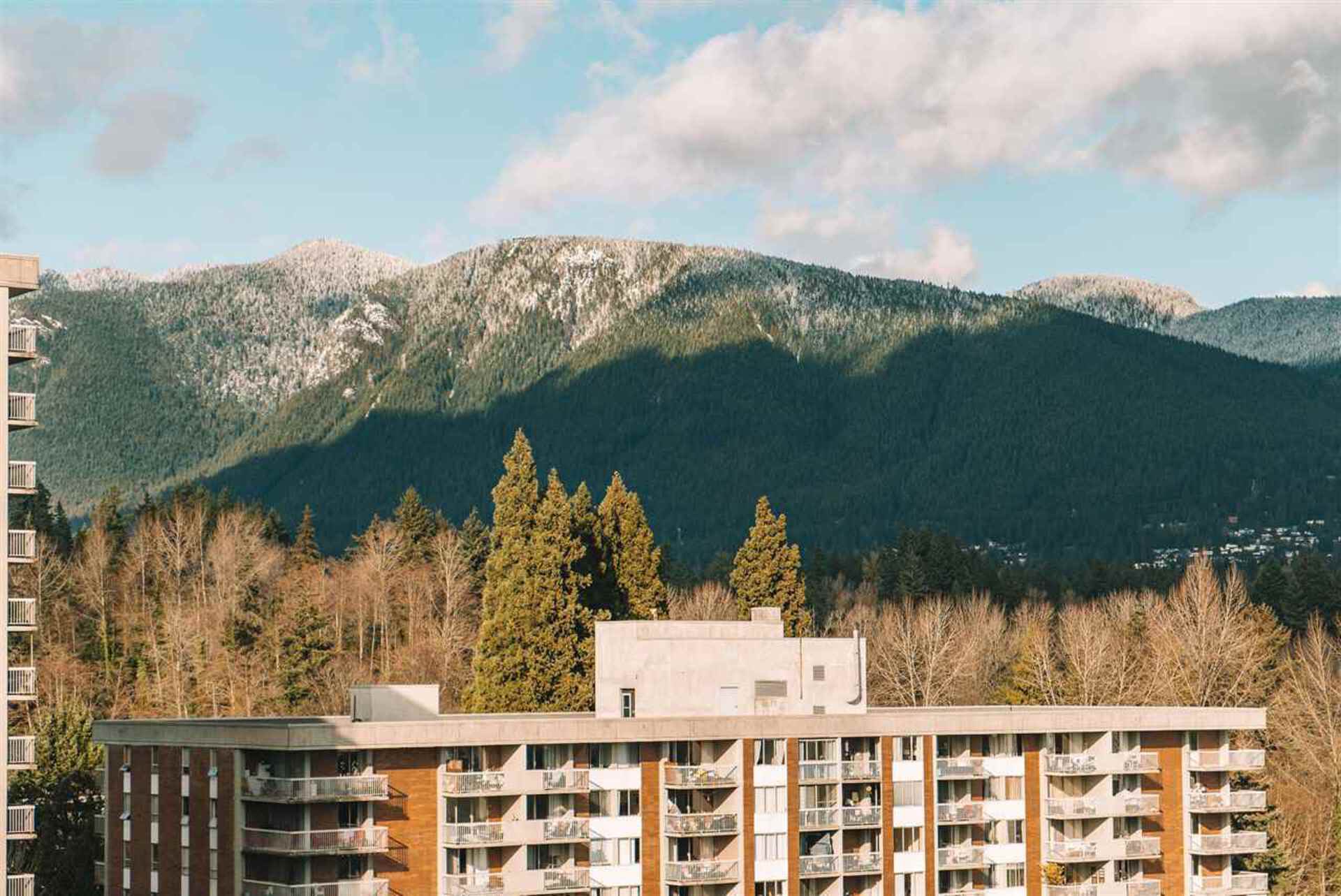 A rare find! This southeast facing, 1113 sqft., 2 bed, 2 bath concrete home in the beautiful gated community of Woodcroft offers panoramic ocean views from Vancouver Island out to UBC, & from Burrard Inlet to Grouse Mountain. Take in the revitalizing flow of the Capilano river while overlooking the tree tops and Lions Gate village from this bright & airy sanctuary in the sky. The spacious & functional layout will allow you to customize & update at a minimal cost. Features include an enclosed balcony, master walk-in closet, oversized in-suite storage, classic galley kitchen, large living area, parking & storage locker. This mini-resort offers 24/7 security & is surrounded by lush landscaped garden areas. Amenities include pool, hot tub, exercise room, etc. Easy Access to Lions gate bridge.