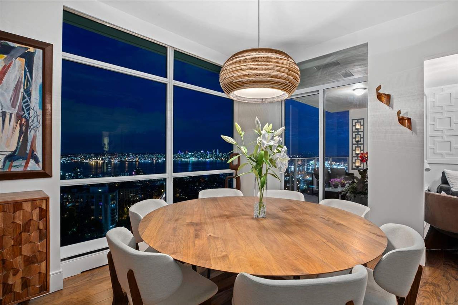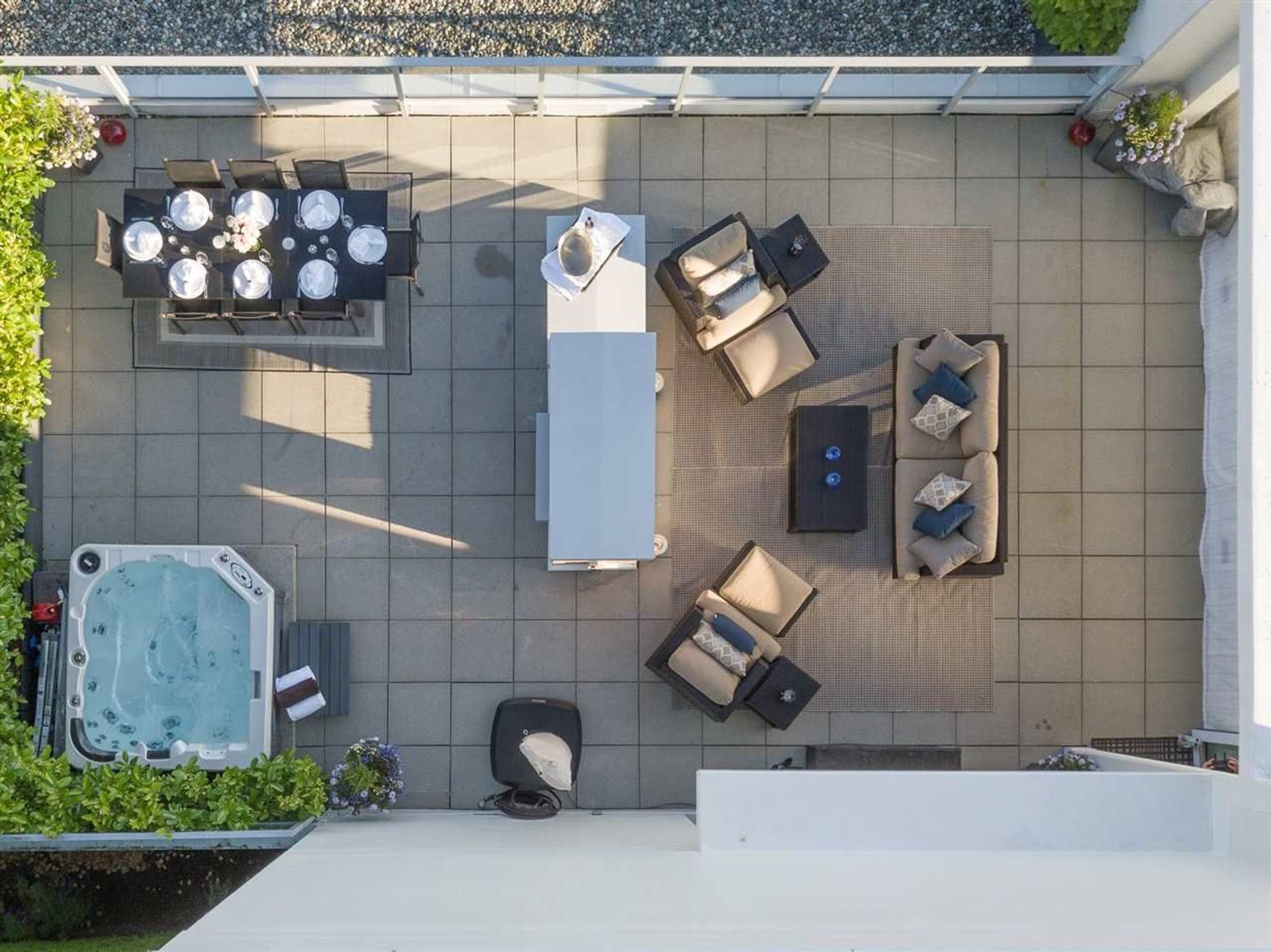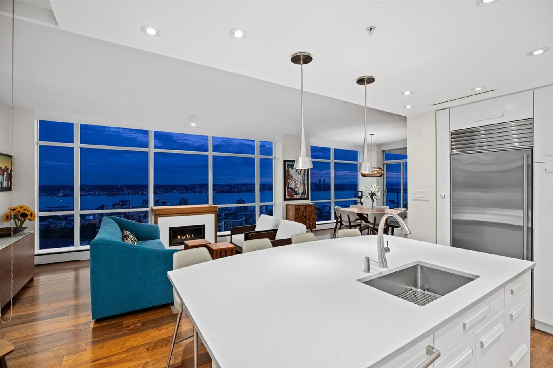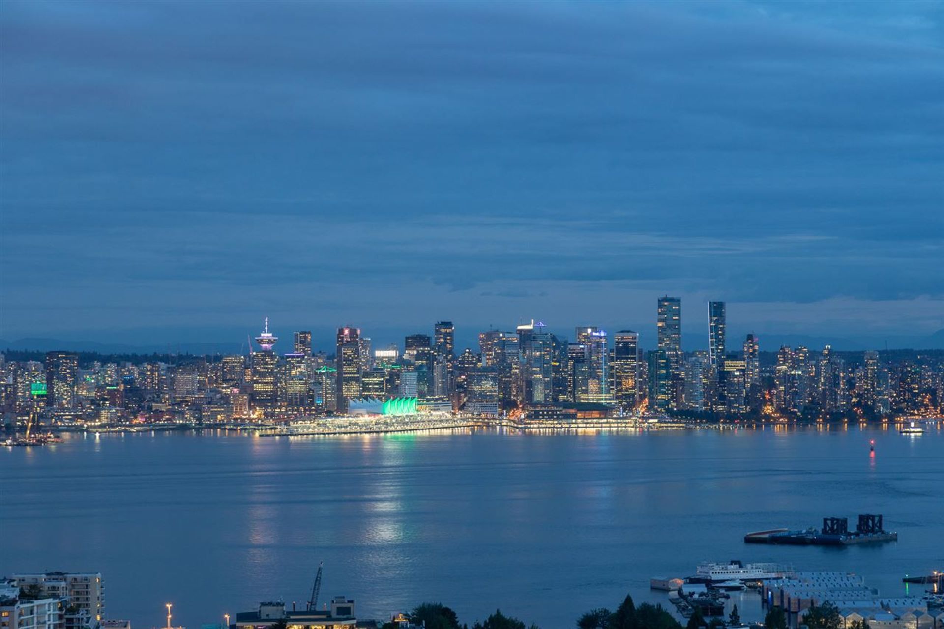 This one-of-a-kind, penthouse w/ unobstructed panoramic views of the city & harbour, is a truly remarkable home. Completely redesigned & renovated to maximize living space, this 2 bed + den, 3 bath residence is the perfect pairing of style & functionality. The gourmet kitchen is a showstopper w/ floor to ceiling custom cabinetry, Subzero, Wolf & Miele appliances & an oversized island. The main bed includes walk-in closet & spa-inspired ensuite w/ dual sinks. Features include AC, ventless washer/dryer, built-in vac, in-ceiling wine cellar, & pull-out pantry. The 1682sqft interior space extends out to a 930sqft rooftop patio complete w/ gas fireplace, hot tub, gardens. An add. 200sqft covered deck extends the living area. Walking distance to all Central Lonsdale has to offer!