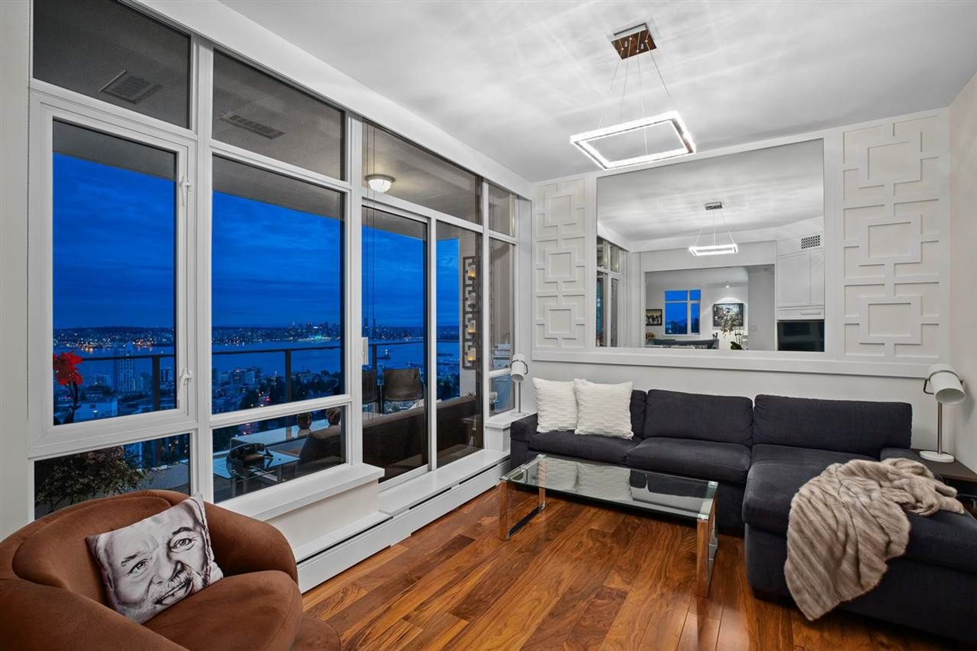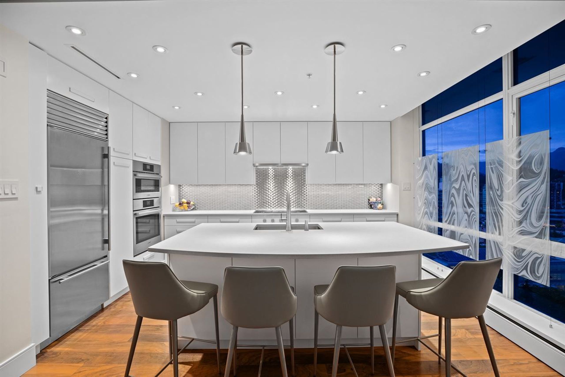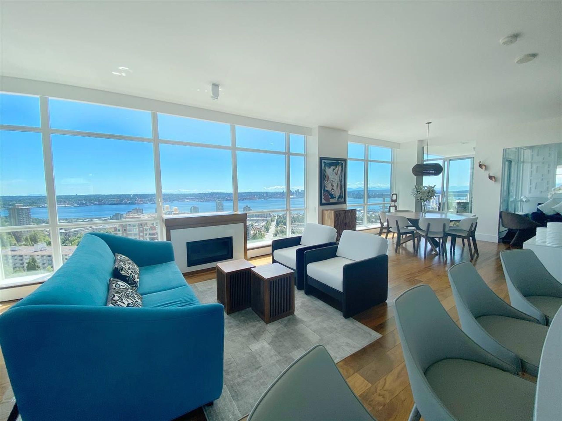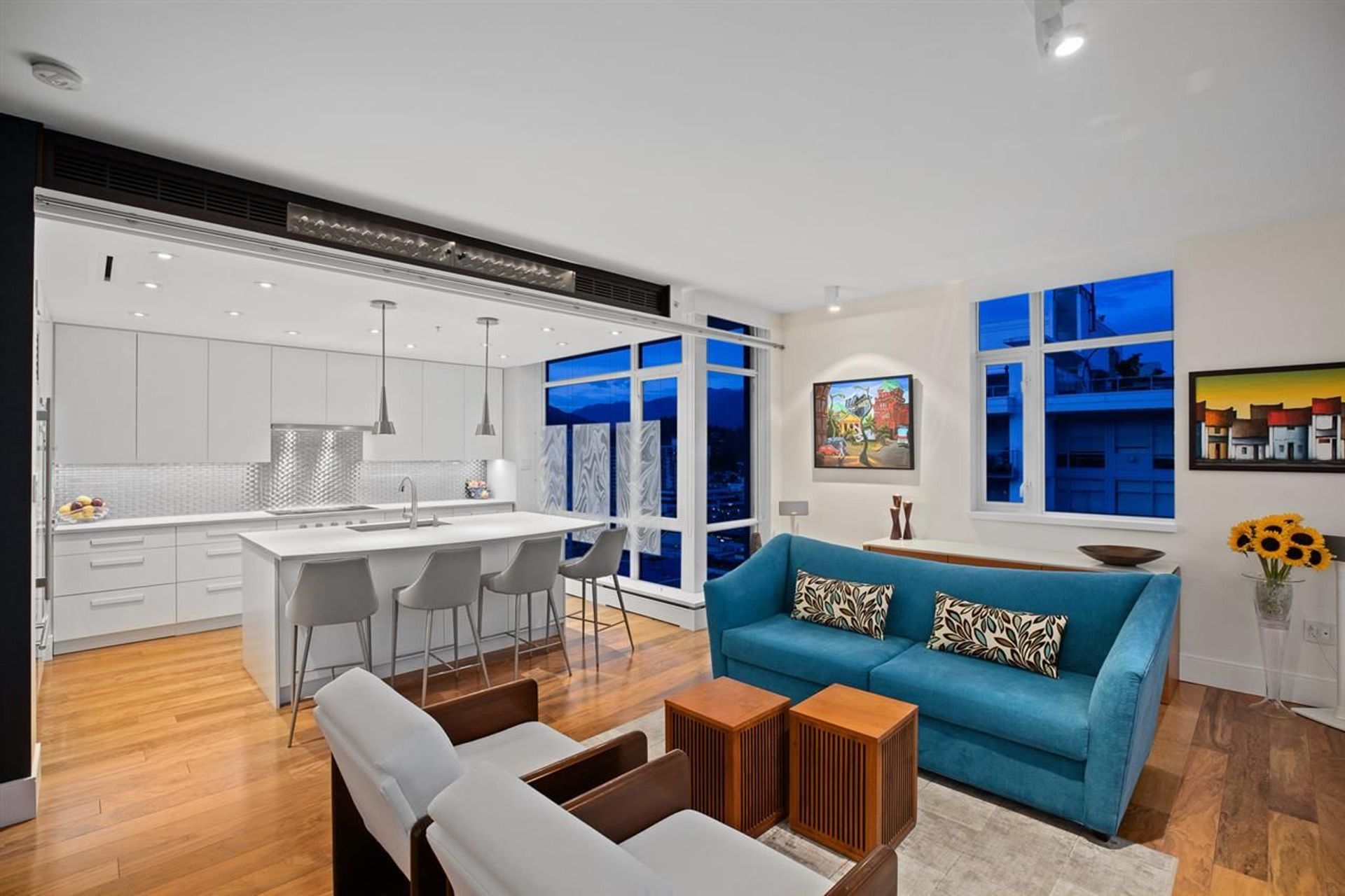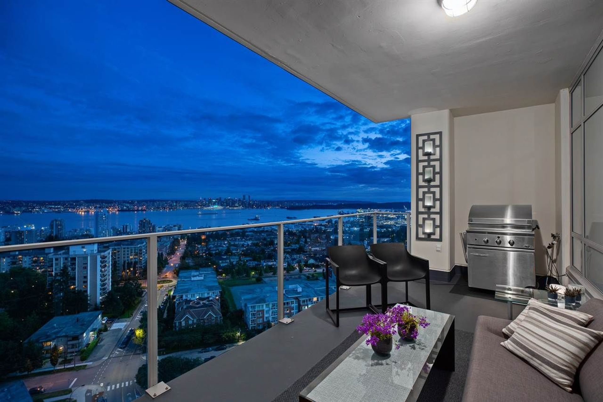 This one-of-a-kind, penthouse w/ unobstructed panoramic views of the city & harbour, is a truly remarkable home. Completely redesigned & renovated to maximize living space, this 2 bed + den, 3 bath residence is the perfect pairing of style & functionality. The gourmet kitchen is a showstopper w/ floor to ceiling custom cabinetry, Subzero, Wolf & Miele appliances & an oversized island. The main bed includes walk-in closet & spa-inspired ensuite w/ dual sinks. Features include AC, ventless washer/dryer, built-in vac, in-ceiling wine cellar, & pull-out pantry. The 1682sqft interior space extends out to a 930sqft rooftop patio complete w/ gas fireplace, hot tub, gardens. An add. 200sqft covered deck extends the living area. Walking distance to all Central Lonsdale has to offer!