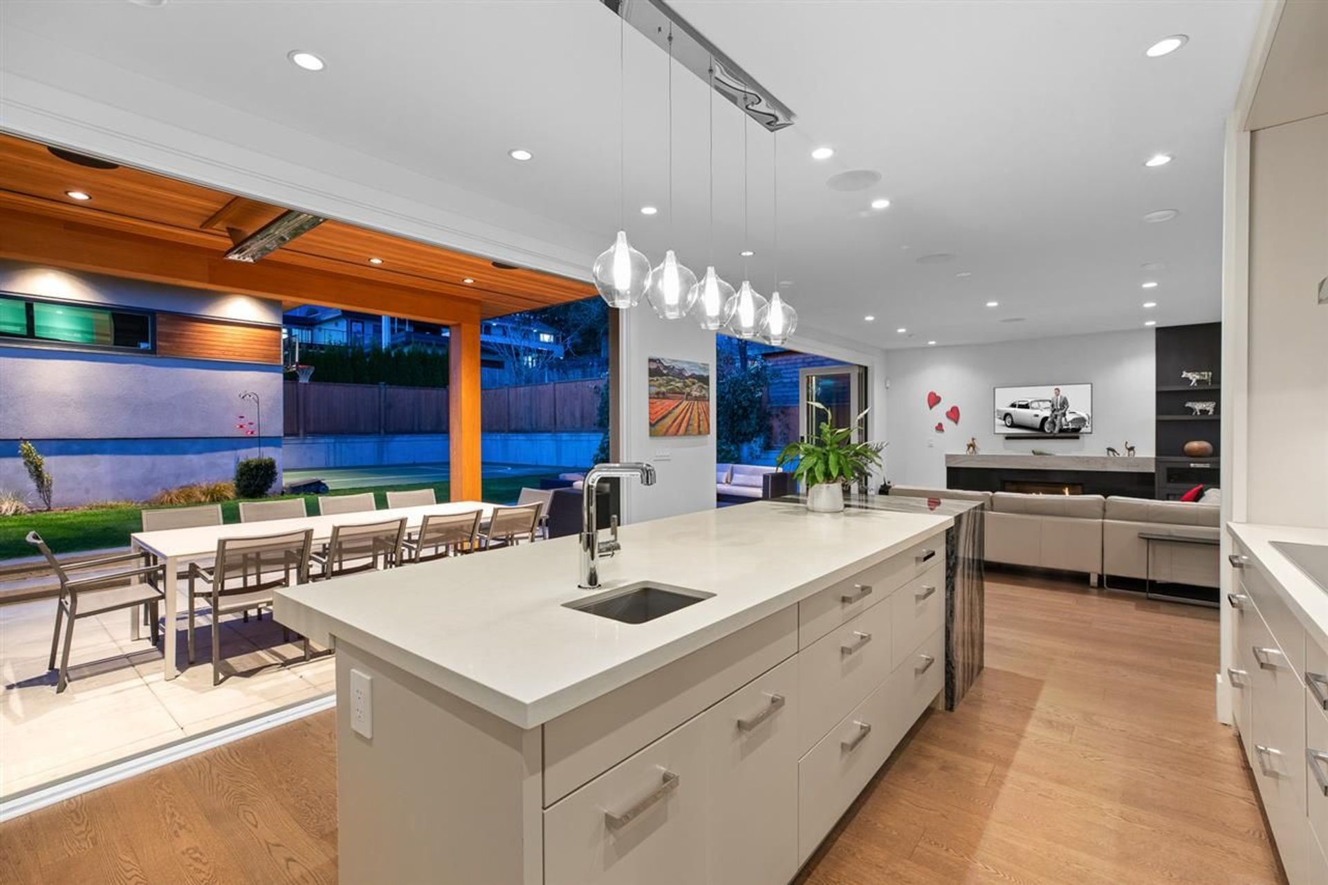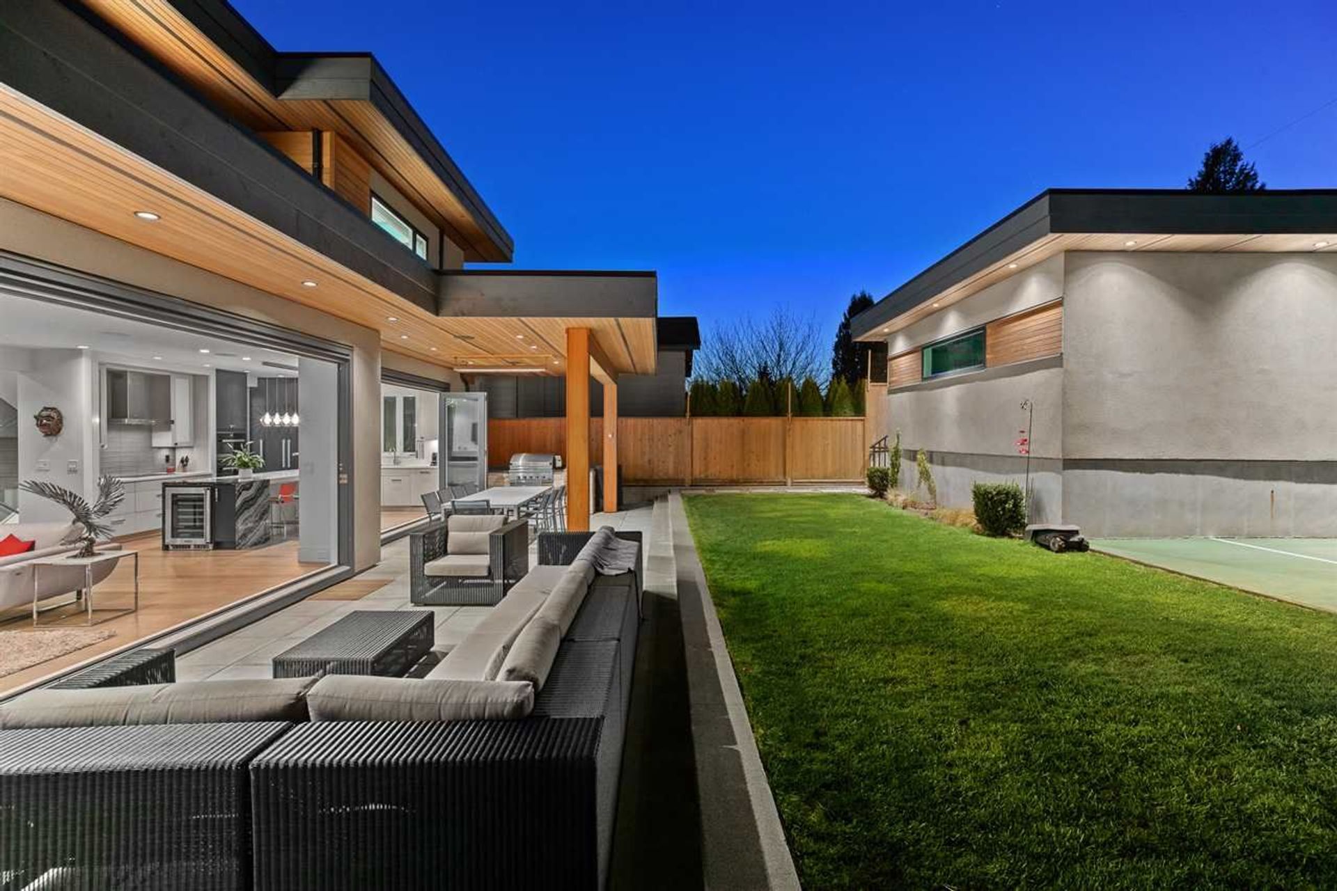 This stunning, custom-designed 4202sqft home exudes luxury & style. Located on a quiet cul-de-sac, this 4-bed + office, 6 bath home is built to the highest standards using only the finest materials & top-of-the-line finishings. The gourmet kitchen is equipped w/ Miele appliances & boasts an oversized island & wine fridge. Multi-panel folding doors open to a showstopper backyard including a heated covered patio, outdoor kitchen & a sports court, blending the indoors & outdoors seamlessly. The upper floor has downtown views, spa-inspired ensuites, a large master walk-in closet & spacious rooms. Downstairs you’ll find a cinema w/ full bar, a bed & a home gym. Too many features to list: h/w, radiant, Wok kitchen w/gas, A/C, 2 gas fireplaces, iPad controlled Sonos, electric blinds, and more!