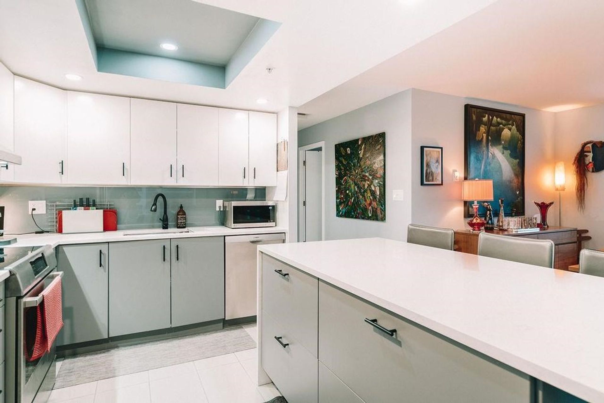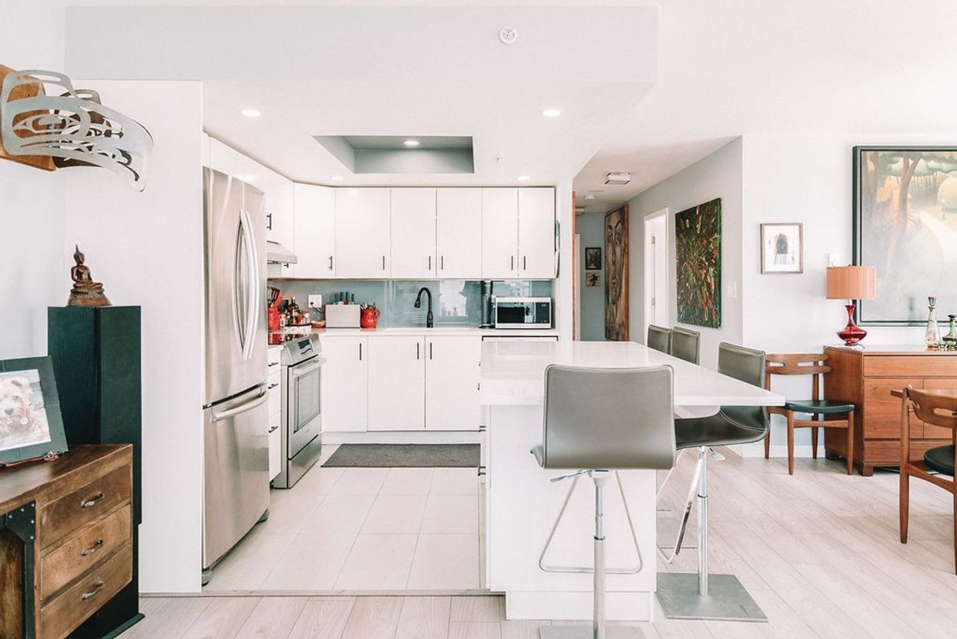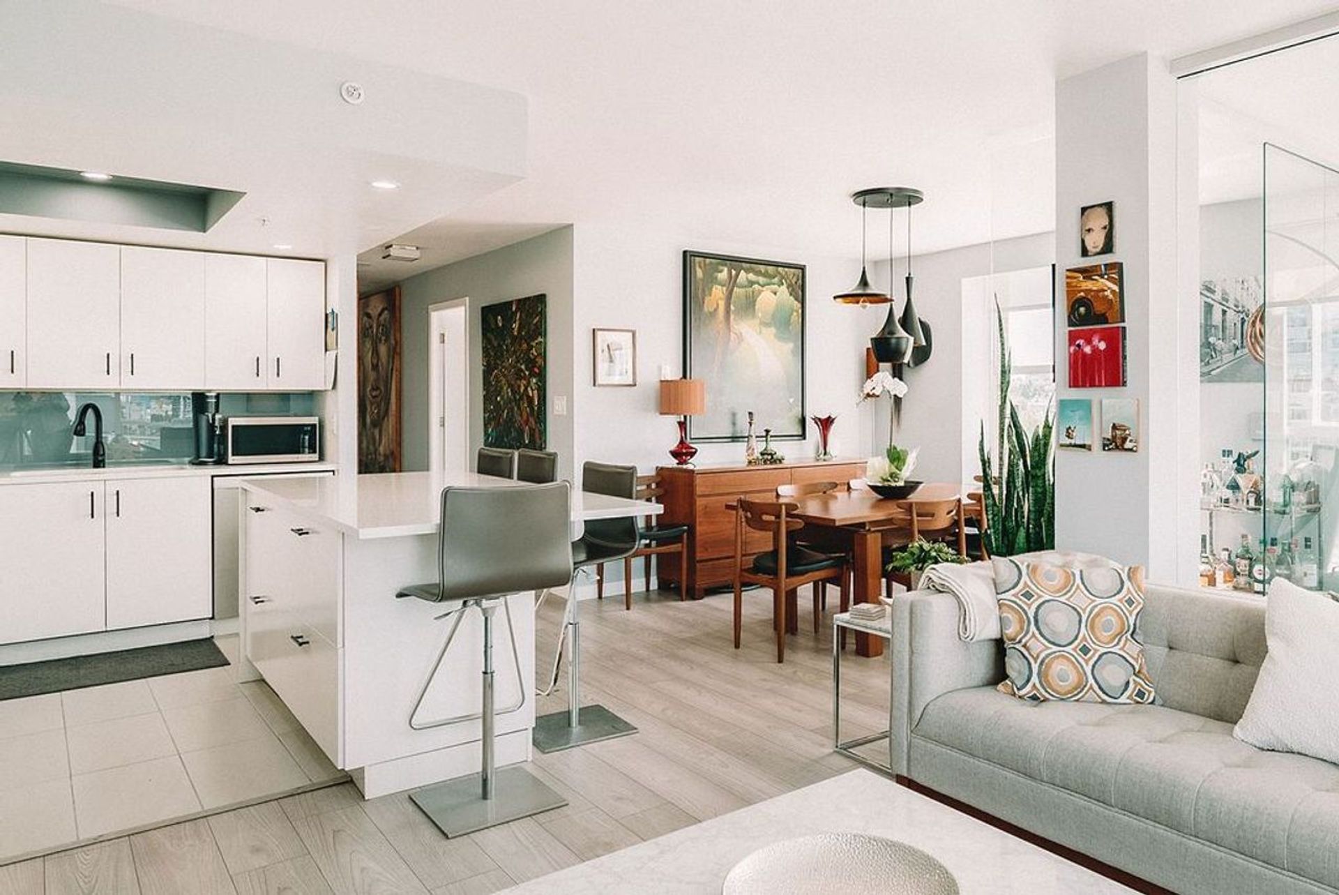Designer updated suite, built by award-winning developer Bosa. Nestled next to False Creek & the iconic Science World, this spacious, bright, SW facing, 1251 sqft., 2 BR, 2 Bath, concrete view home has been completely renovated & luxuriously redesigned. The new open concept kitchen improves flow, sociability & natural light, while the glass partitioned solarium acts as a multi-functional space -a guest room, or just a place to relax & take in the views. Too many feat to list: Bosch appliances, stone counters, oversized waterfall island, new bathrooms, california closet, parking, storage & more! This transit oriented development is the cornerstone of a thriving and vibrant neighbourhood. Adjacent to skytrain walking distance to Rogers Arena, BC Place Costco, the Seawall & restaurants.