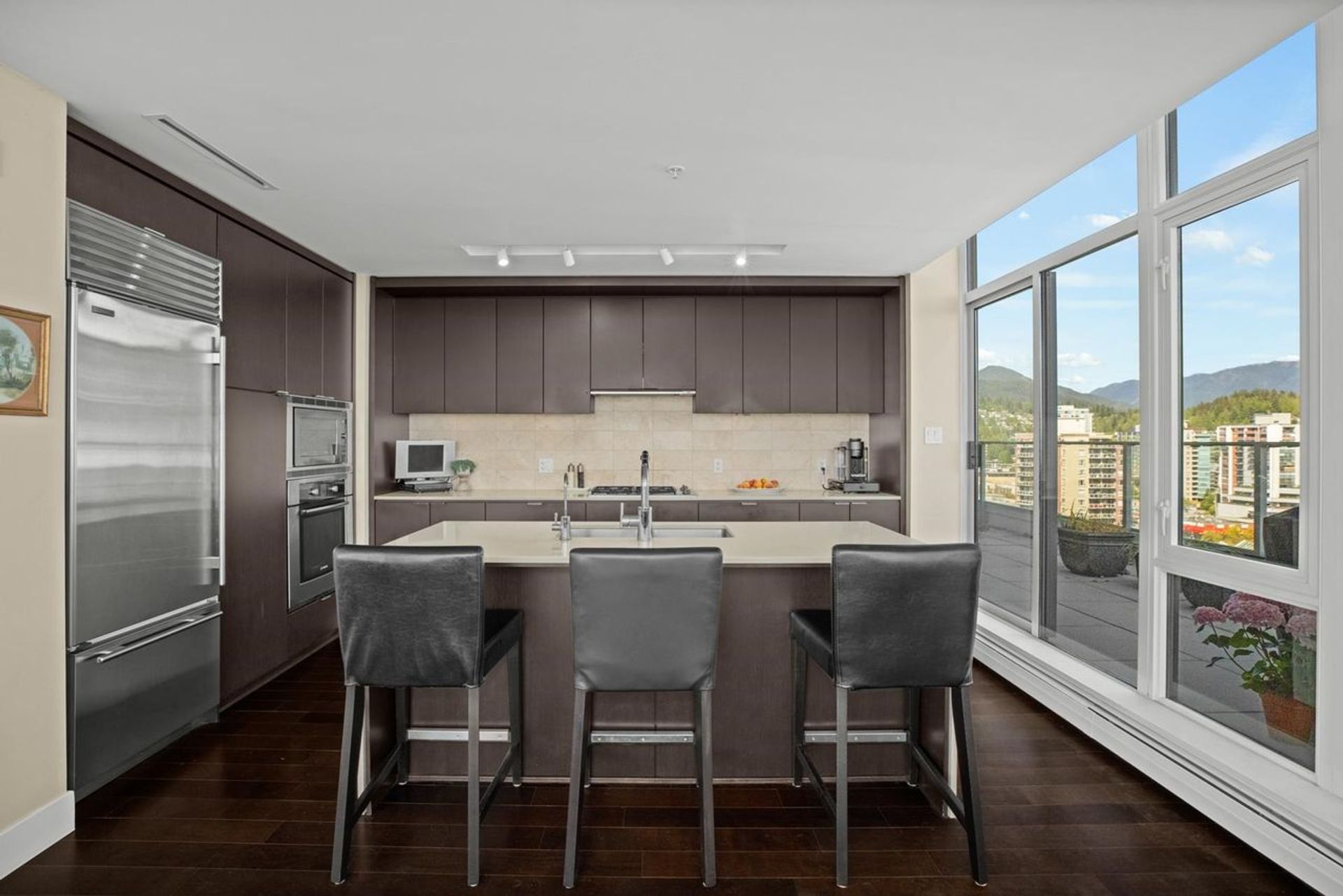 AC! SUB-PENTHOUSE- Rarely Available - This beautiful, bright, large 1757sqft home is a downsizer's dream! Perched on the 18th floor with UNOBSTRUCTED views of downtown, Lions gate bridge & the mountains, this 2 bed +DEN + FLEX room boasts 10ft ceilings, 3 bath & 2 large decks(458sqft). Equipped with AC, Sub-zero fridge, Bosch appliances, gas f/p, bbq hook-up, laundry room & plenty of storage. LEED Silver building. Walking distance to absolutely everything central Lonsdale has to offer - Whole Foods, parks & restaurants etc. Includes 2 parking & storage. Located in Vista Place, a safe, secure & well-maintained building with a healthy contingency fund, gym, party room, guest suite. This home checks off all the boxes! You'll never need to move again! Call for your private tour today!