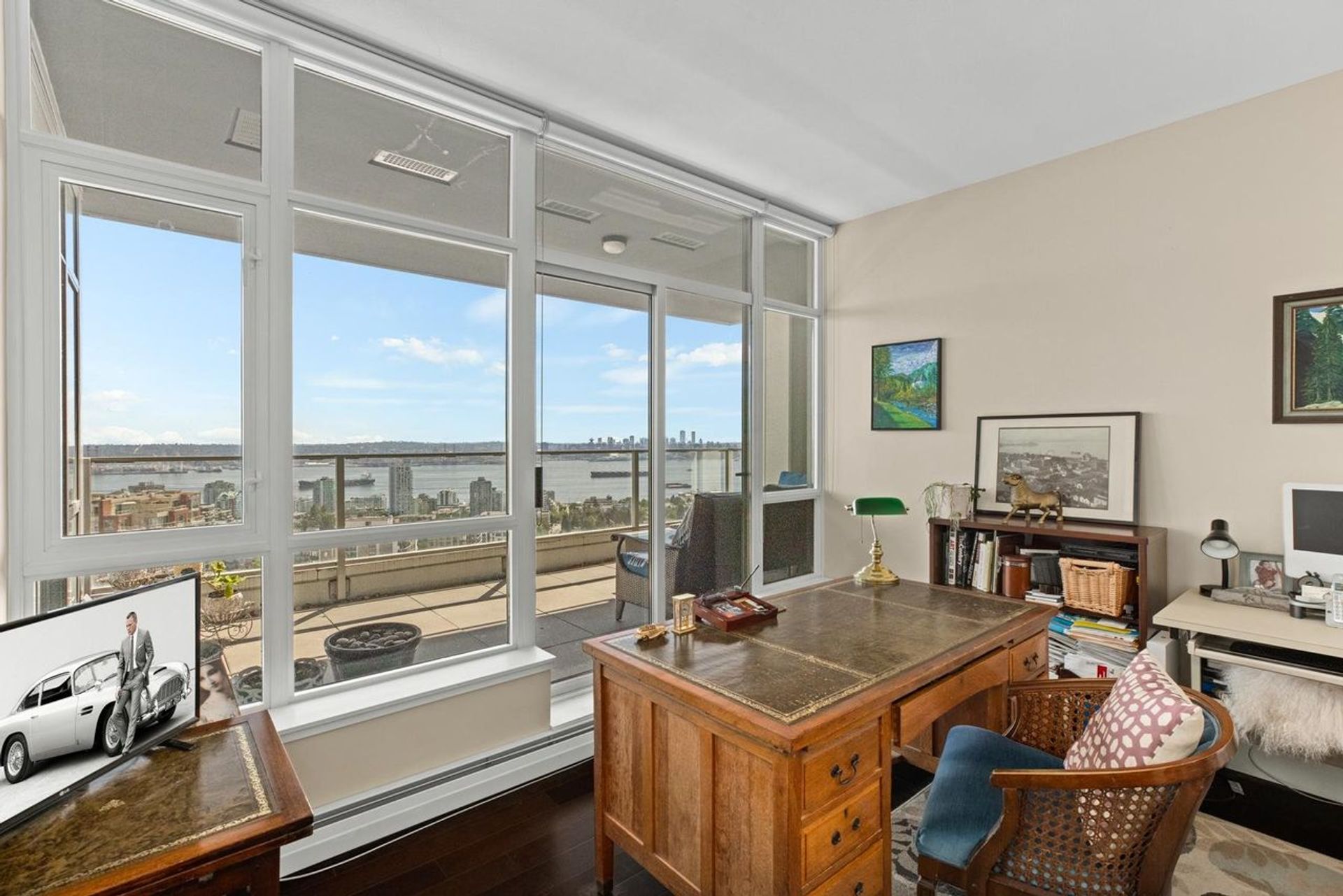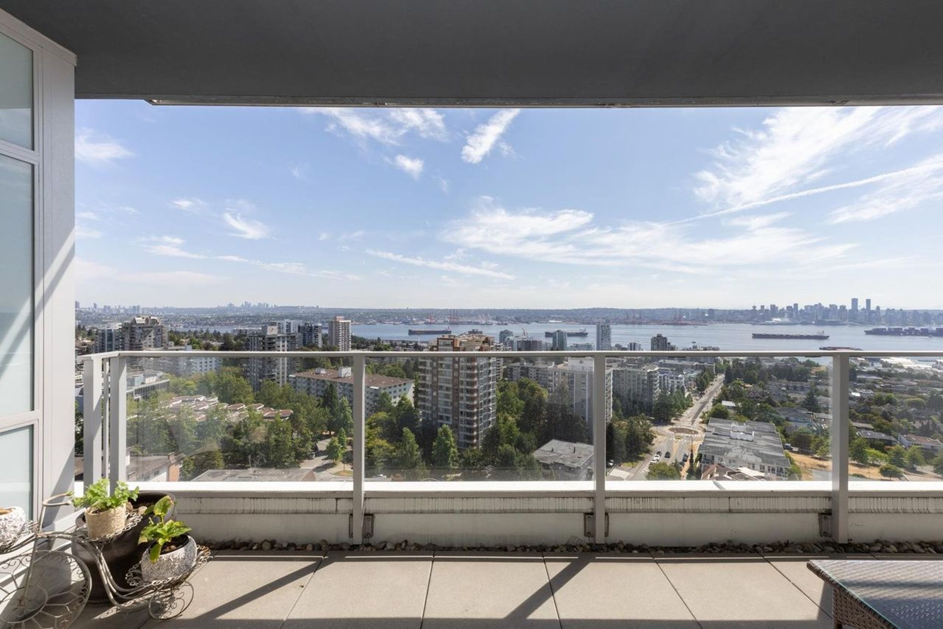 AC! SUB-PENTHOUSE- Rarely Available - This beautiful, bright, large 1757sqft home is a downsizer's dream! Perched on the 18th floor with UNOBSTRUCTED views of downtown, Lions gate bridge & the mountains, this 2 bed +DEN + FLEX room boasts 10ft ceilings, 3 bath & 2 large decks(458sqft). Equipped with AC, Sub-zero fridge, Bosch appliances, gas f/p, bbq hook-up, laundry room & plenty of storage. LEED Silver building. Walking distance to absolutely everything central Lonsdale has to offer - Whole Foods, parks & restaurants etc. Includes 2 parking & storage. Located in Vista Place, a safe, secure & well-maintained building with a healthy contingency fund, gym, party room, guest suite. This home checks off all the boxes! You'll never need to move again! Call for your private tour today!