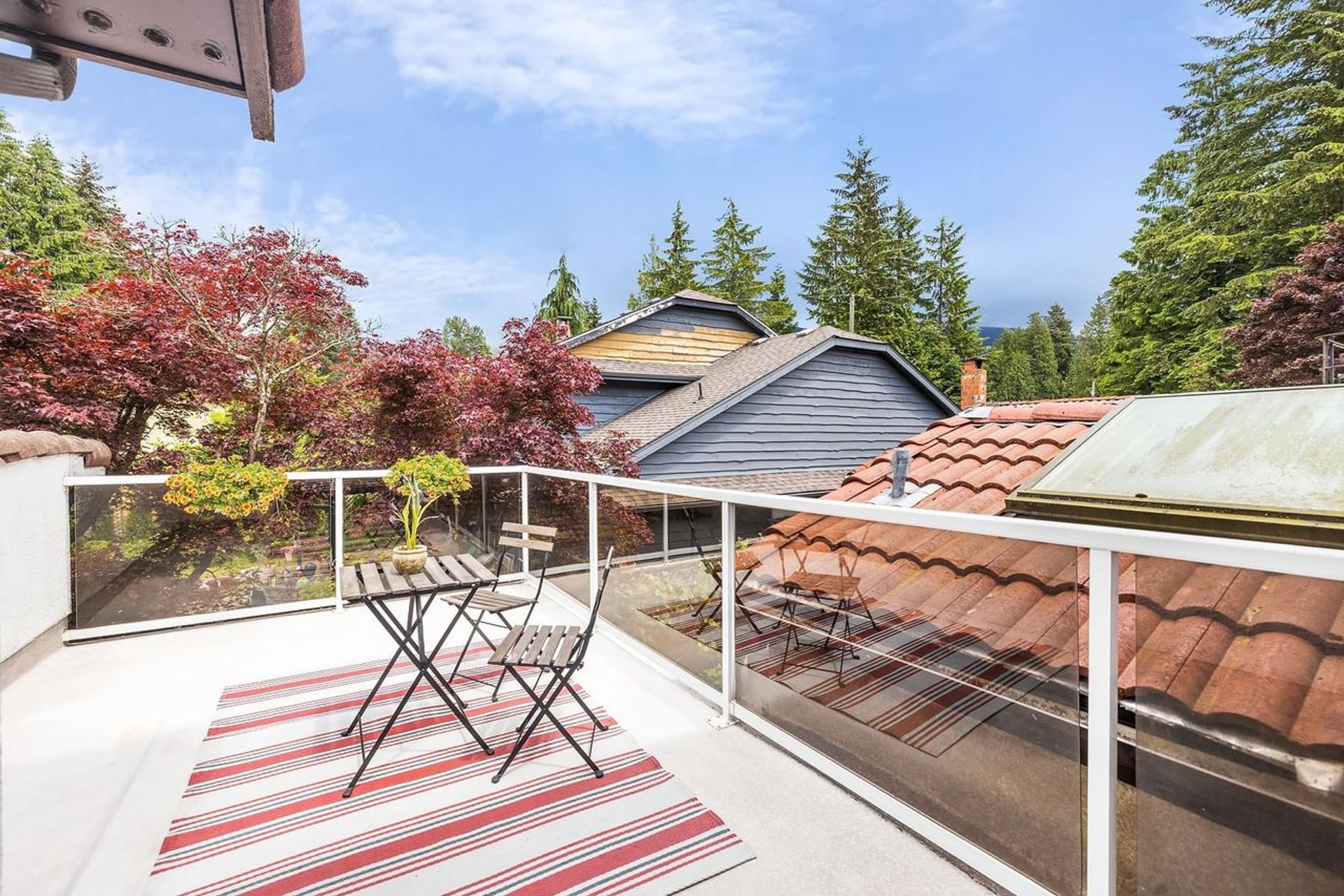 First time on the market in over 40 years! This iconic Spanish duplex-style townhome is located in the heart of Edgemont Village. This 3 bedroom, 3 bathroom, 1784 sqft home was organically designed with family in mind. The vaulted ceilings display a reverence for open space and natural light while the living room blends seamlessly to the beautiful lush private outdoor gardens draped in mature grape vines. Enjoy your morning coffee on the oversized upper deck off the master bedroom. Featuring mountain views & a courtyard area surrounded by magnificent tall hedges & manicured gardens creating a spectacular private sanctuary. Walking distance to Handsworth Secondary, Cleveland Elementary and all that Edgemont has to offer!