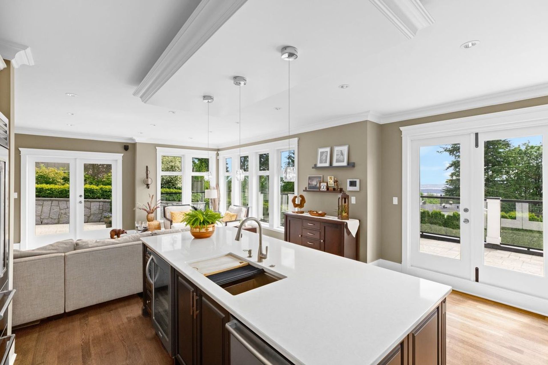 This premiere 5270 sqft., 6 bed, 6 bath + office estate in prestigious Canyon Heights is perched on a 12,000 sqft. lot w/ views of DT Van all the way to Van Island, as well as spectacular year round sunsets. Built with the finest quality materials w/ thoughtful features & high-end appliances including Wolf & Subzero, set this home apart. The gourmet chef’s kitchen w/ oversized island flows seamlessly outdoors to a spectacular wrap-around deck w/ breathtaking views, ideal for entertaining. Too many feat to list: above ground 1-bed suite, media rec room w/custom designed dry bar, city/mountain views from all bedrooms, 12 zone radiant heat, beautiful landscaped gardens, parking for 7 all set amidst total privacy. 5 mins from Edgemont Village in the sought after Handsworth school catchment.