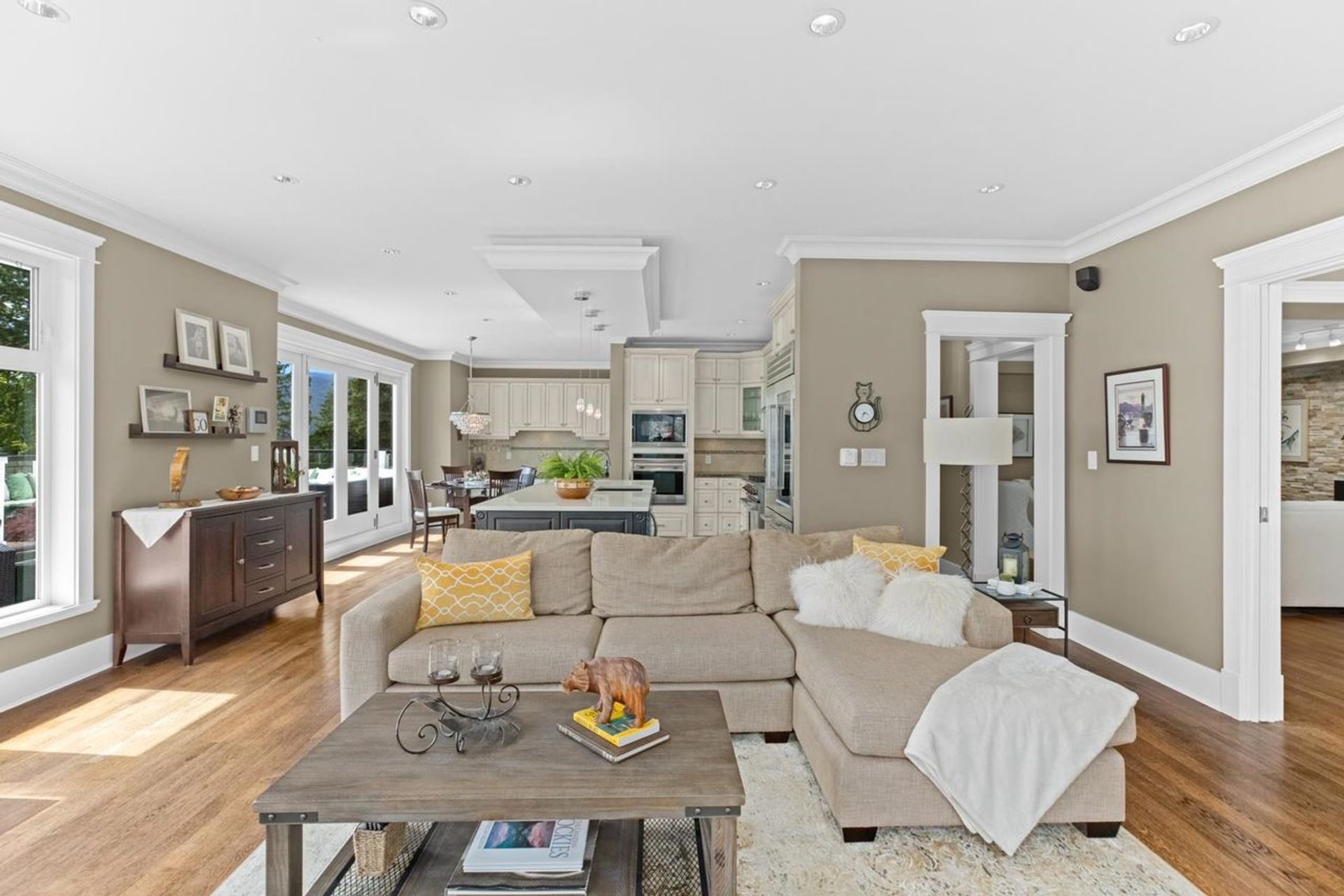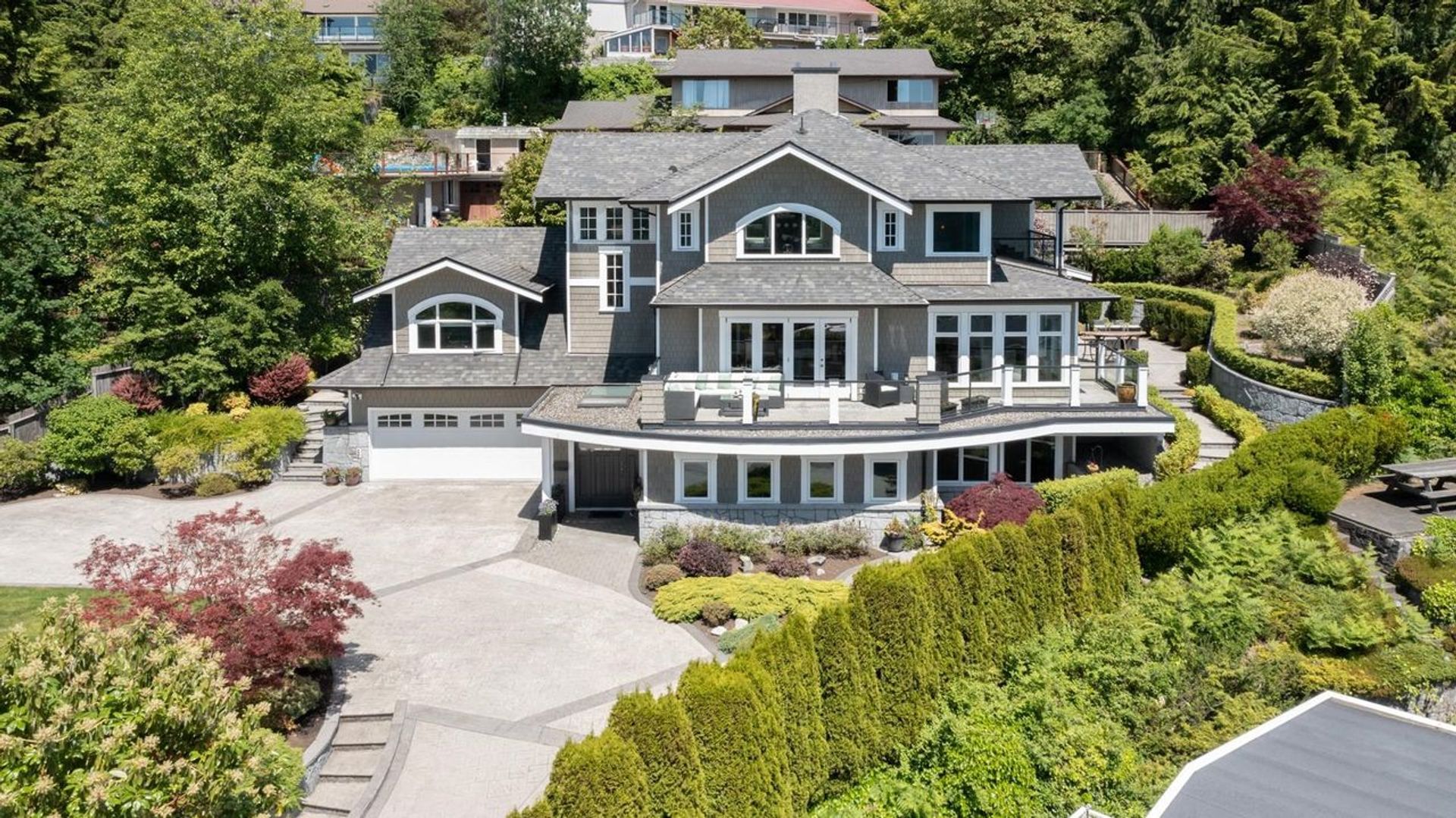 This premiere 5270 sqft., 6 bed, 6 bath + office estate in prestigious Canyon Heights is perched on a 12,000 sqft. lot w/ views of DT Van all the way to Van Island, as well as spectacular year round sunsets. Built with the finest quality materials w/ thoughtful features & high-end appliances including Wolf & Subzero, set this home apart. The gourmet chef’s kitchen w/ oversized island flows seamlessly outdoors to a spectacular wrap-around deck w/ breathtaking views, ideal for entertaining. Too many feat to list: above ground 1-bed suite, media rec room w/custom designed dry bar, city/mountain views from all bedrooms, 12 zone radiant heat, beautiful landscaped gardens, parking for 7 all set amidst total privacy. 5 mins from Edgemont Village in the sought after Handsworth school catchment.