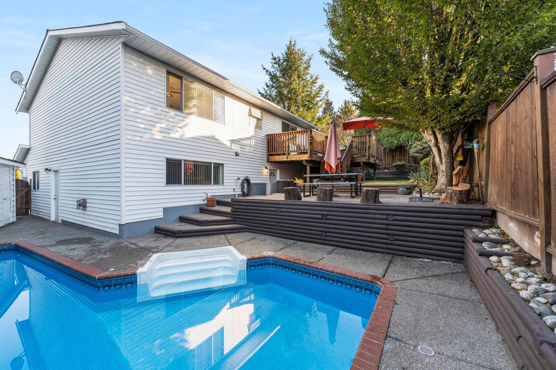 First time on the market in 20 years, this 5 bed, 3 bath 2400 sqft home is ideal for entertaining with its covered patio & perfectly positioned pool in a sun-drenched, fully fenced, south-west facing backyard. Updates include a recently renovated bathrooms, newer appliances (dishwasher, oven/stove), & new paint throughout. Main level is suitable w/ separate entrance. The pool liner, filter, water pump & heater have all been upgraded in the past 5 years. If you're looking for the ideal neighbourhood to raise your family, this is it. Close to parks, 2 elementary schools & only 4 minutes to Walnut Grove Secondary. Give your family the lifestyle they deserve! Be inspired by this rare chance to own the childhood home of one of the most celebrated award-winning artists in Canadian country music.