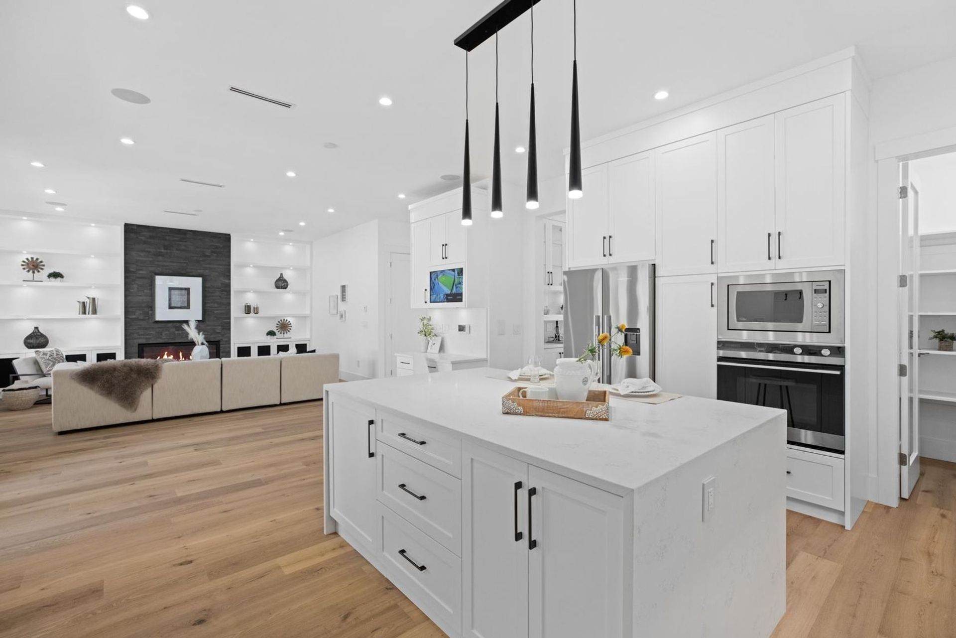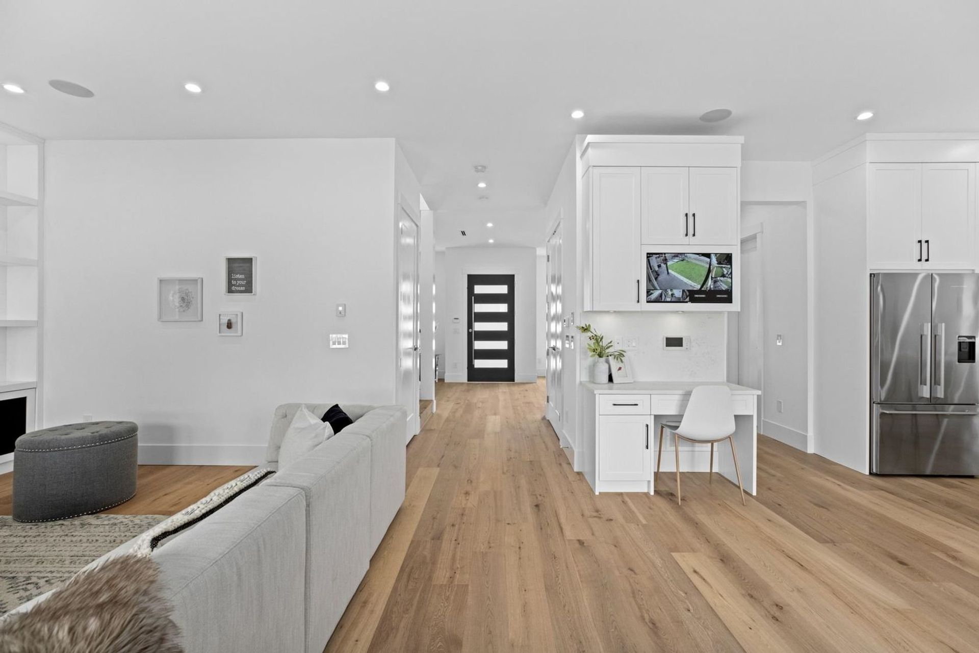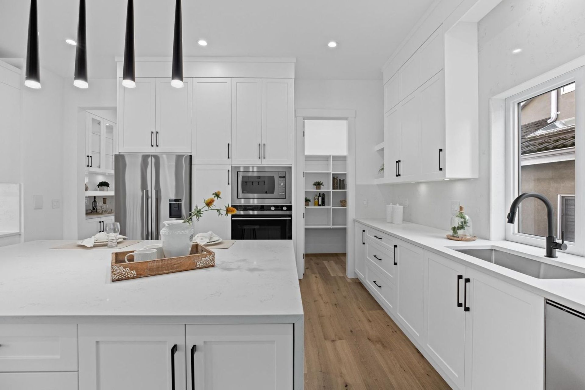 This brand new custom built 4600sqft, 7 bed, 6 bath home makes a profound statement with its striking design & fabulous layout. The main floor is the ideal living area w/ an expansive kitchen, wok kitchen, pantry, mud room, office, dining room, & doors that open up to a large covered patio overlooking a well-manicured yard. The 4 beds on the upper floor include an oversized master bed w/ a walk-in closet and a spa-inspired ensuite. The bottom floor includes a media room with perimeter lighting, surround sound, an added guest bed w/bath plus a bonus 2 bed self-contained legal suite. The home is well equipped with AC, HRV, video monitoring & a central vac w/ retractable hoses. Parking is ample with the detached 3-car garage and extra pad. Close to all the amenities. Call today!