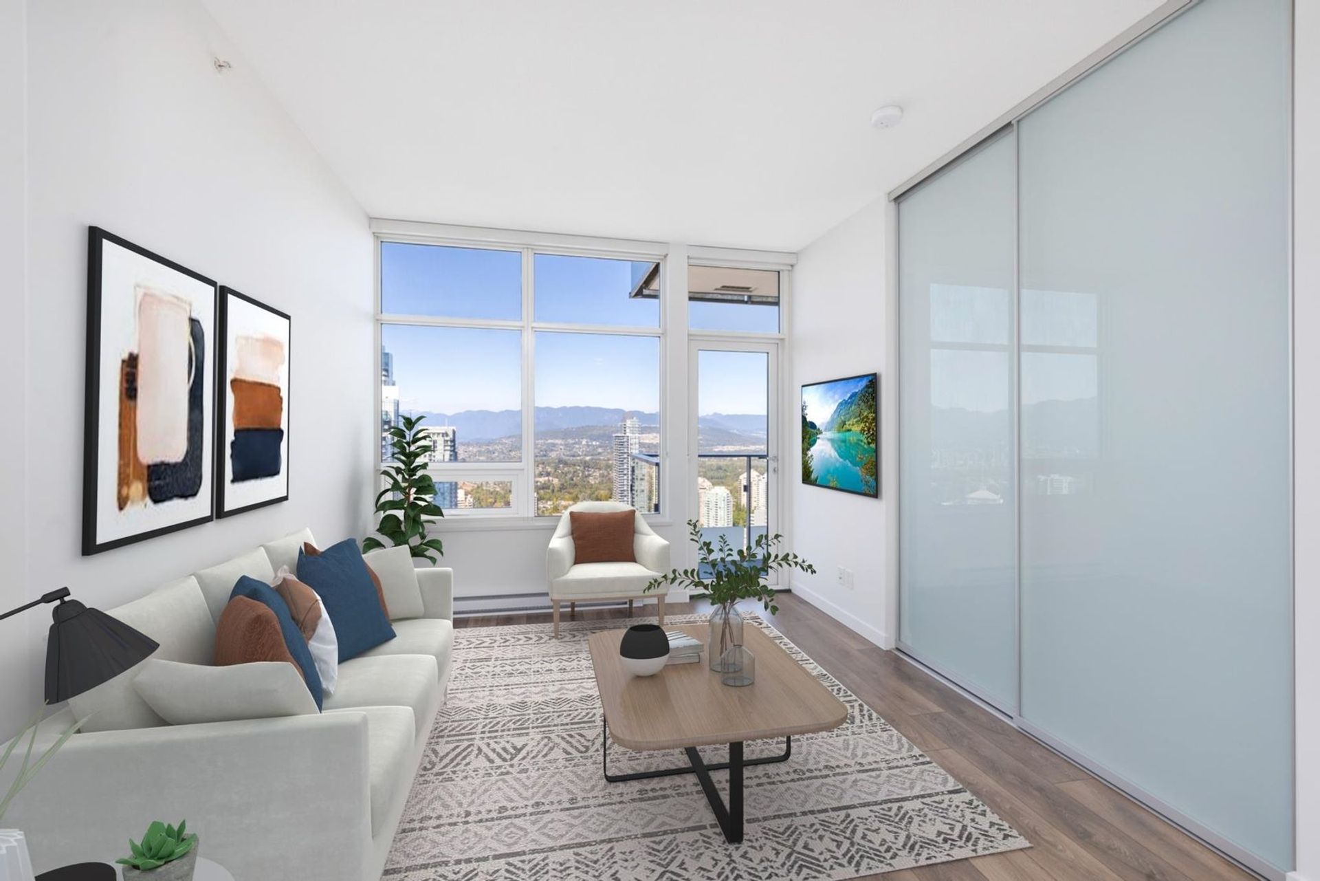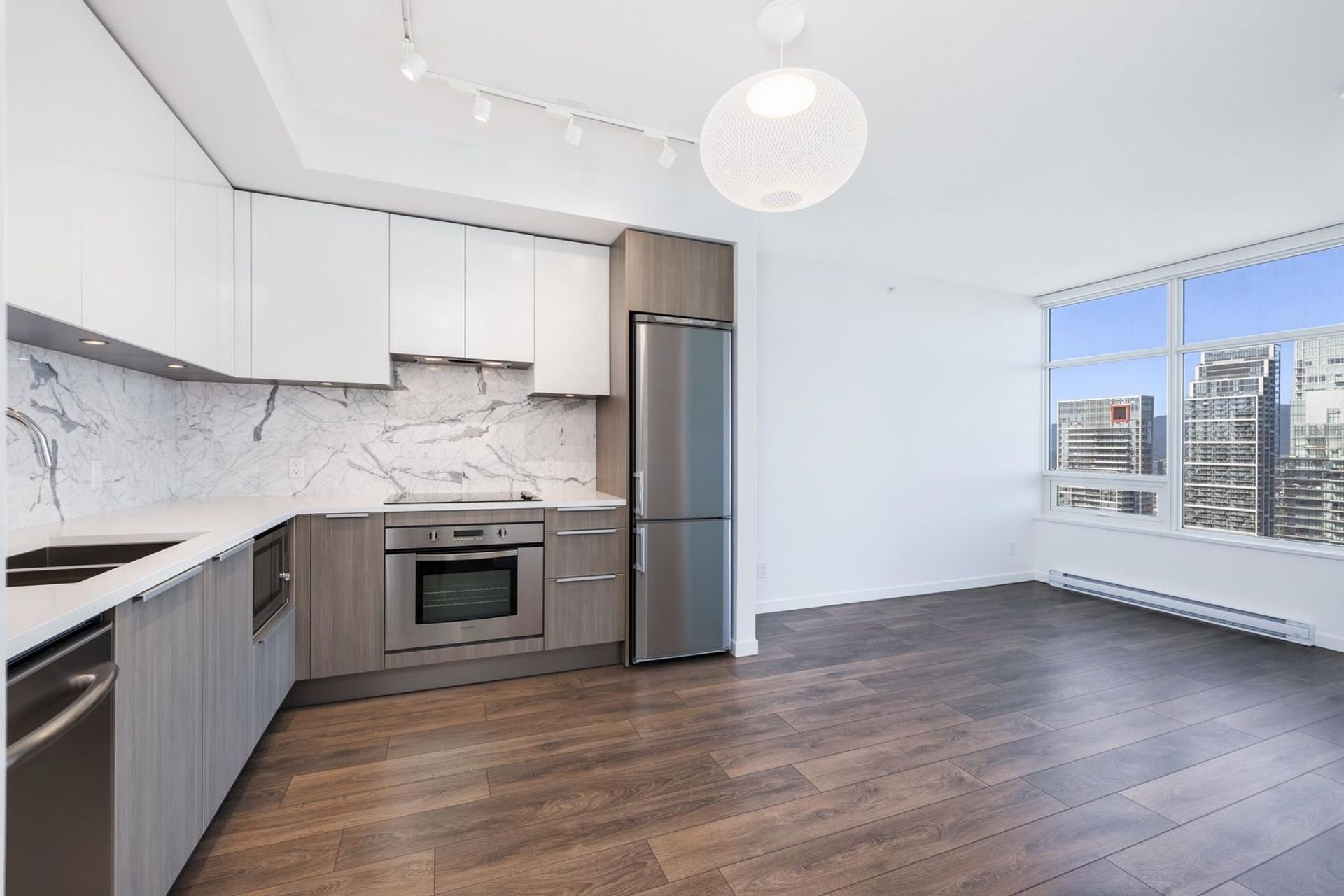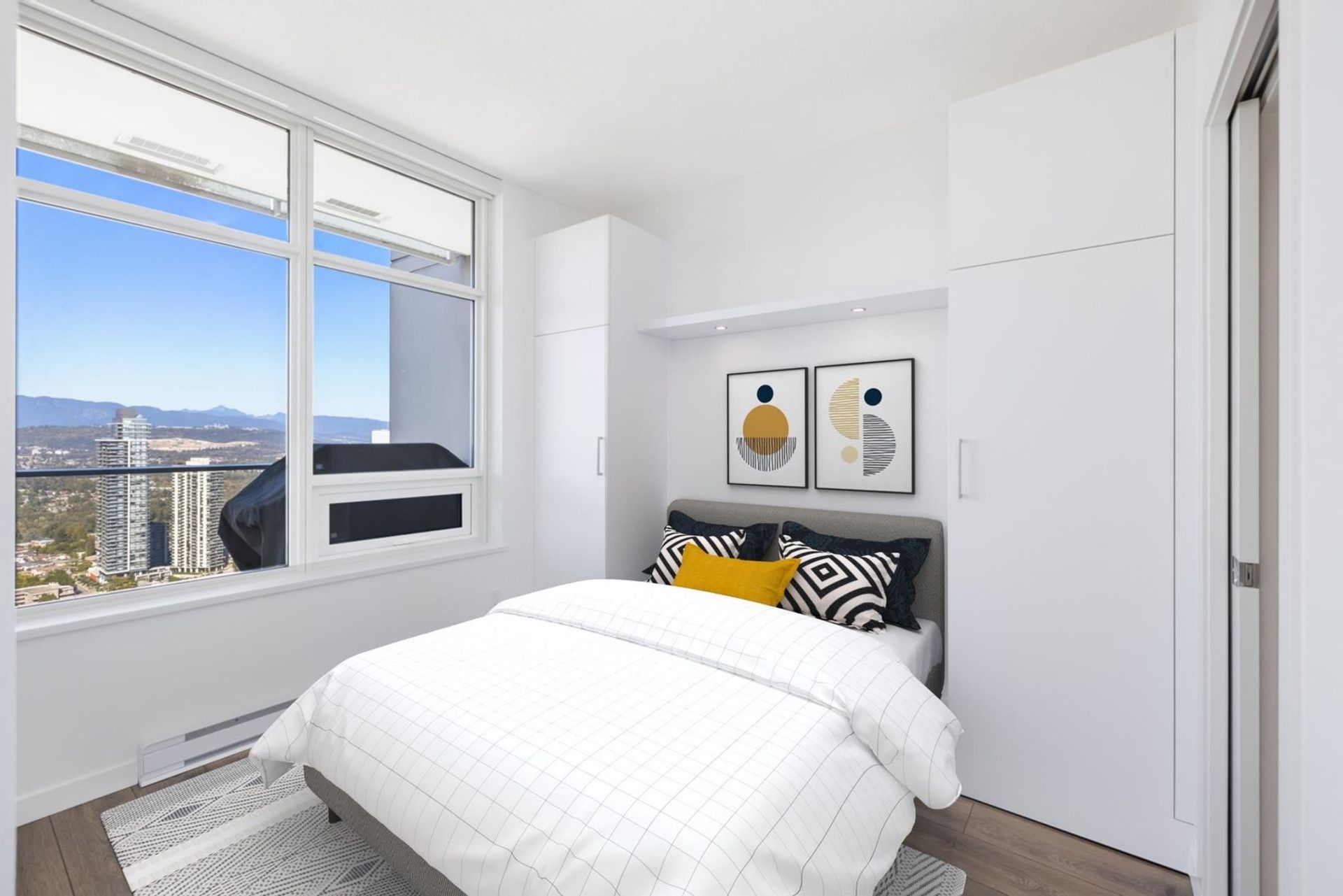 Welcome to MetroPlace built by Intracorp in the heart of Metrotown. Fall in love with the endless mountain and city views of this like-new, upper-level 1 bed + 1 bath home. Perfect for a first time buyer or an investor, this bright unit has been meticulously maintained and is freshly painted and ready for its new owner. Features include - new insuite washer/dryer, modern light fixtures, upgraded sleek electric baseboard heaters, s/s appliances, quartz counters & floor to ceiling windows. Building amenities include a fully equipped fitness center, party room and social lounge. The location is truly unbeatable - steps to the Skytrain, Metrotown, T&T, and amazing restaurants, parks and more. Pet and rental friendly. w 1 storage locker included + new bbq. Open House Saturday & Sunday 12-2pm.