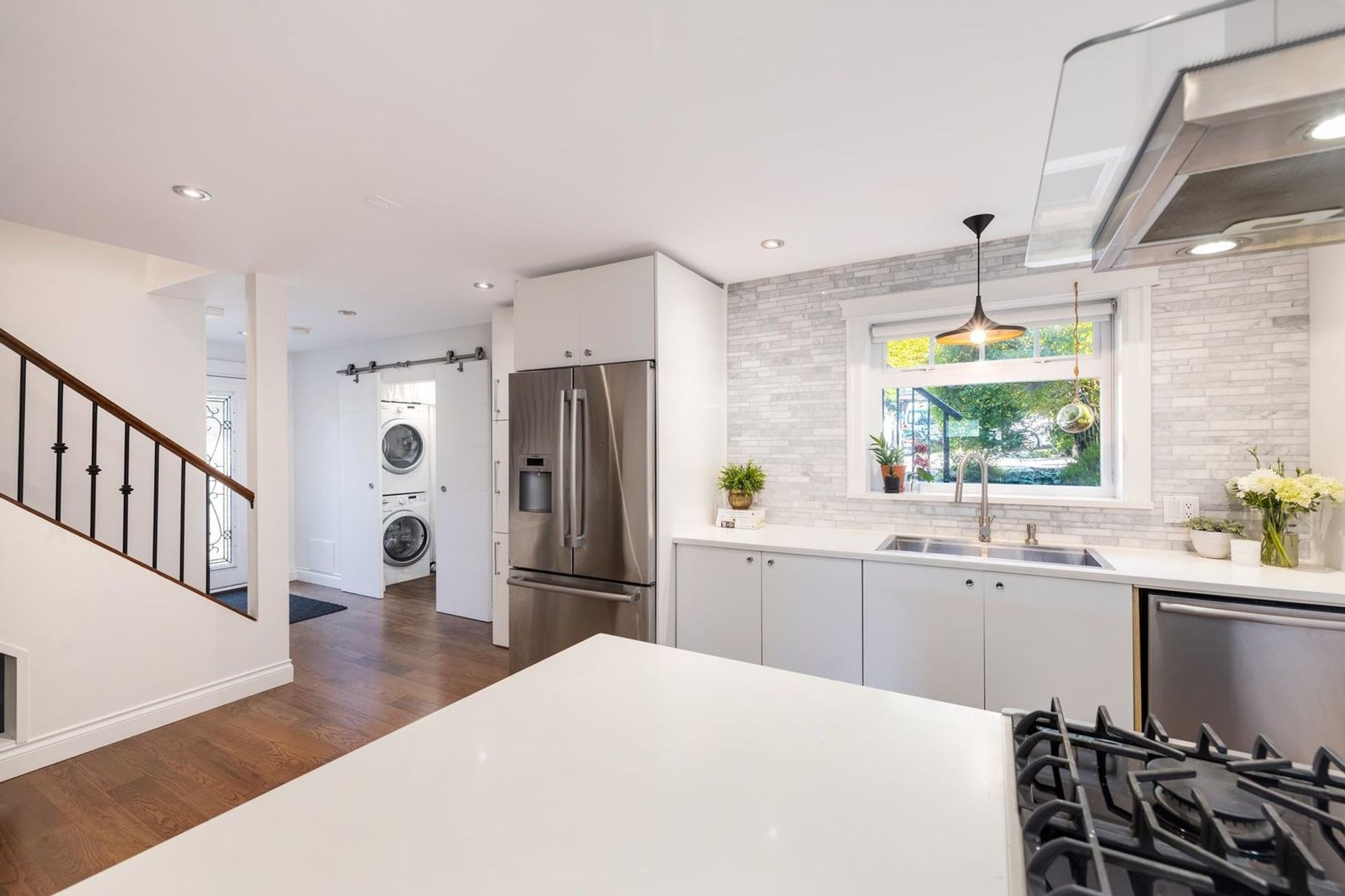 Welcome to your dream home in the heart of Upper Lonsdale! This stunning West Coast-style residence boasts 3 beds + loft and 3 full baths. Renovated in 2013, this charming 2,000sqft home is filled w/ light & offers an open-concept main floor w a modern kitchen, spacious walk-in pantry, & laundry room + plenty of storage. Upstairs you will find the primary bed which is a tranquil oasis w/ French doors leading to a generous covered deck showcasing downtown views. Additionally, a self-contained 1-bed suite provides options of rental income, an in-law/nanny suite or can be integrated back into the top floor of the home. Enjoy the private south facing fenced & gated yard, perfect for kids & pets. Conveniently close to Larson, Carson, and Westview shopping centers. Don't miss your opportunity!
