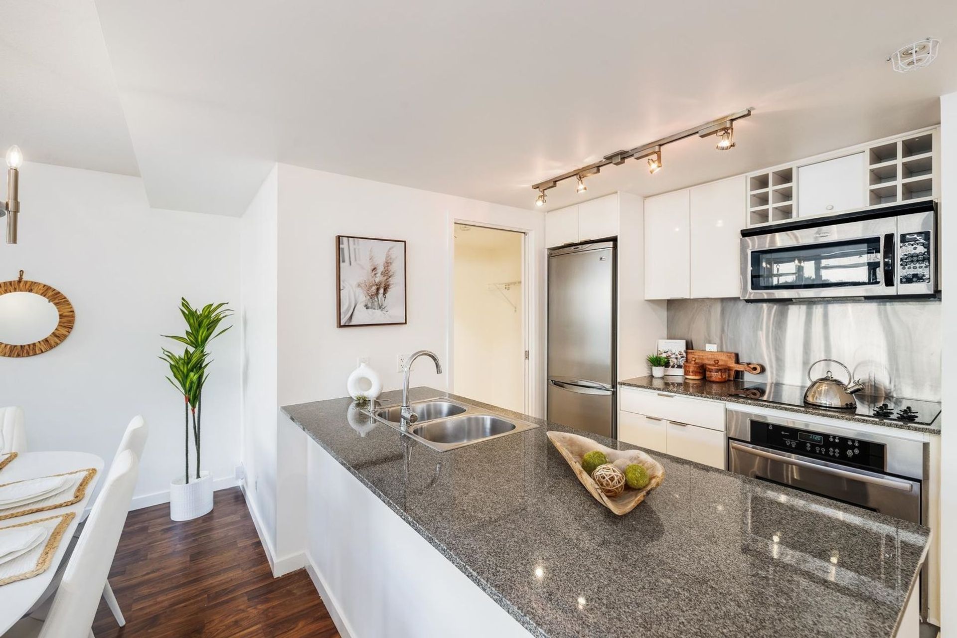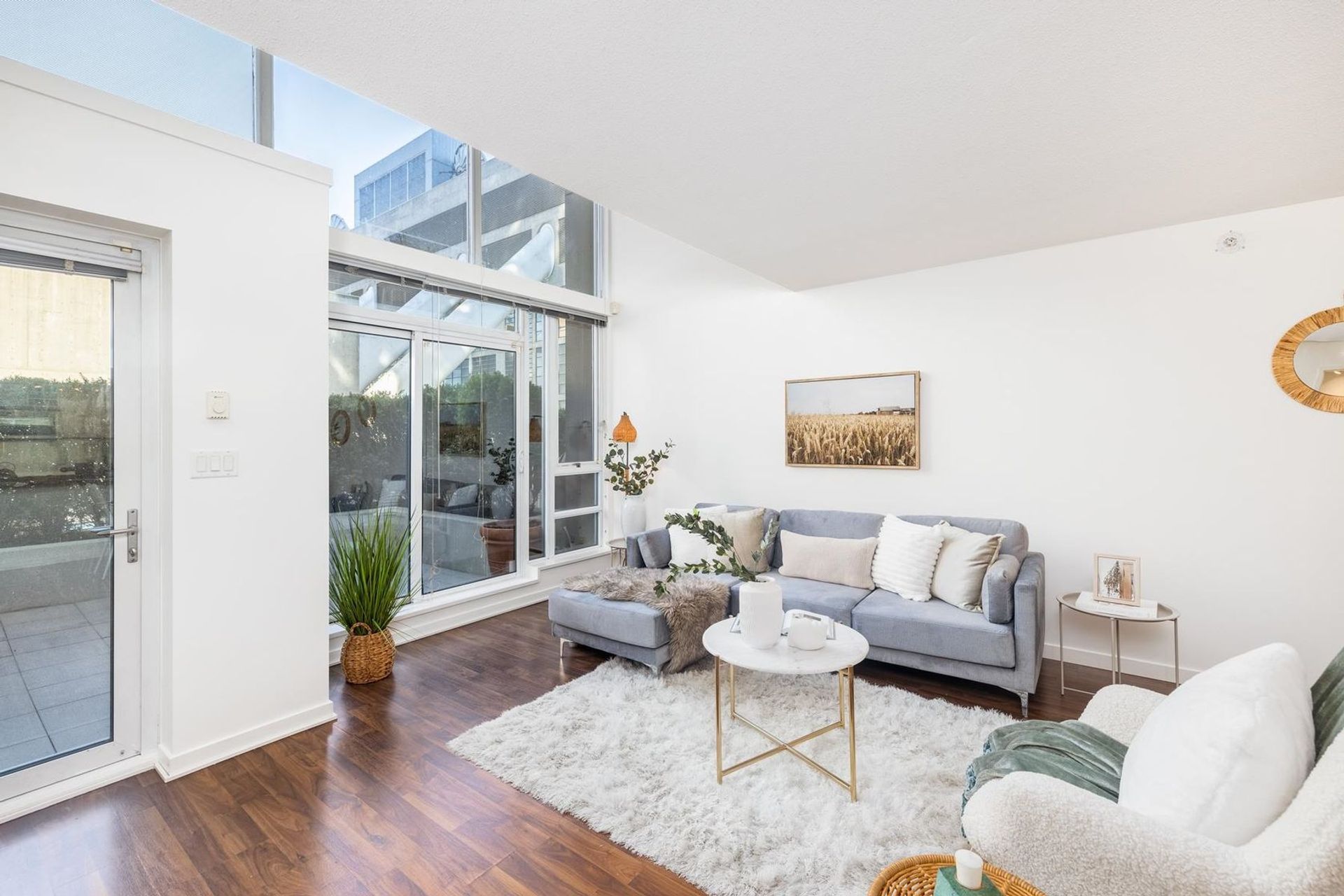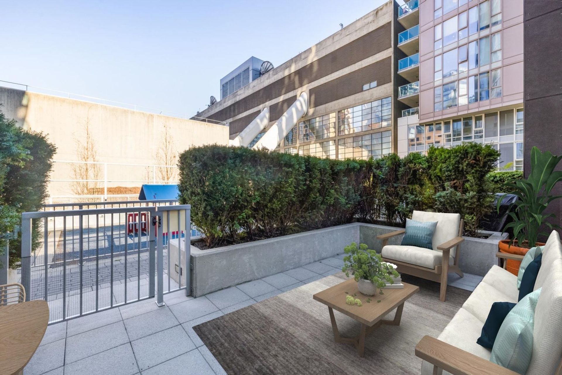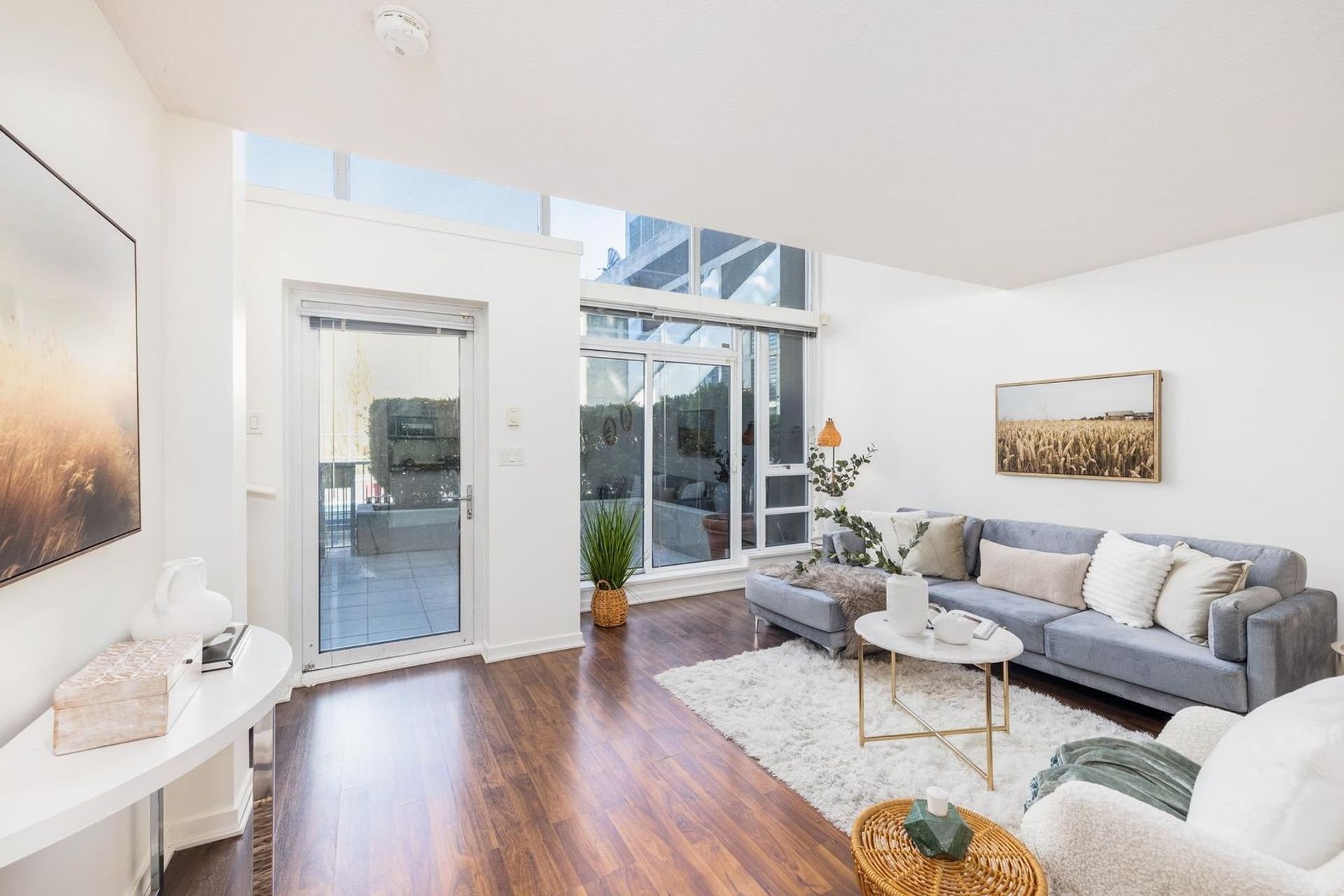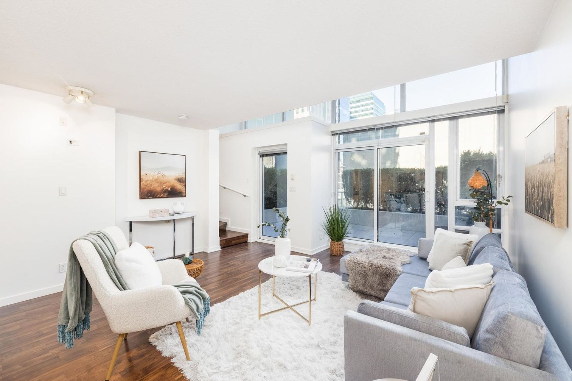 Rarely available TH loft feat 1 bed + XL Den & 2 baths over 2 levels, thoughtfully designed to offer contemporary living. Boasting high ceilings, this bright & airy space creates an immediate sense of openness & comfort. Step outside to discover the gem of this property - an extra-large patio where you can unwind or entertain. Convenient entry directly from a private gate pathway into your suite. In the heart of coveted Robson district & Yaletown this TH loft puts the best of the city at your doorstep. Stroll to an array of dining options, boutique shops, workouts, parks & seawall, and new City Market/Starbucks at The Post! A rare opportunity to own an exceptional property that marries urban elegance w/ city convenience. 1 parking, Pets & Rentals allowed. OPEN HOUSE SAT 2-4PM. MAR23.
