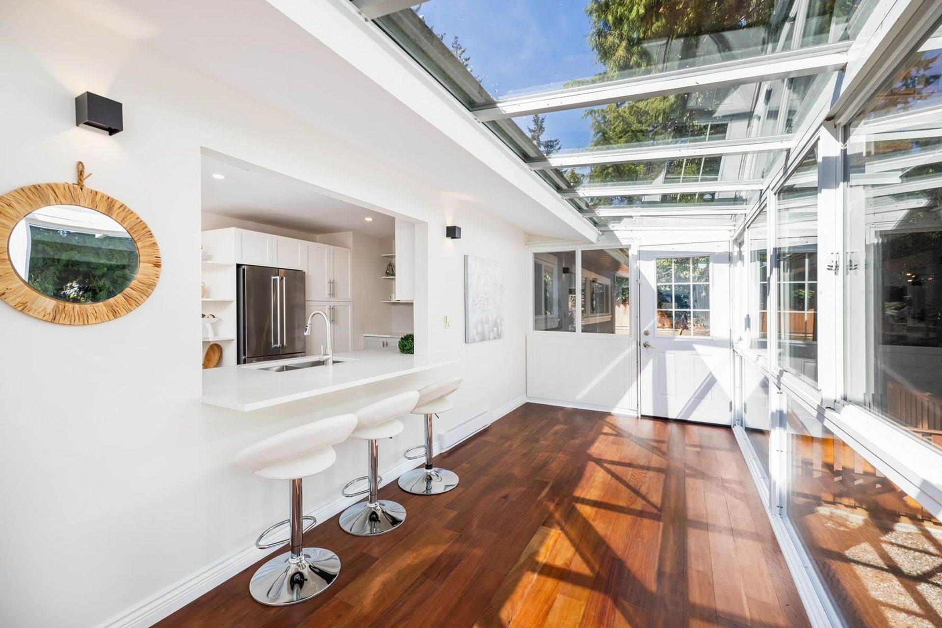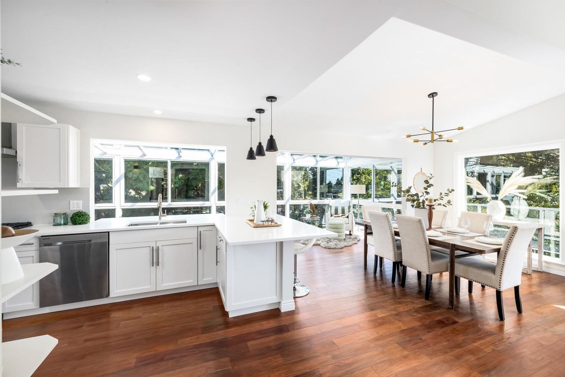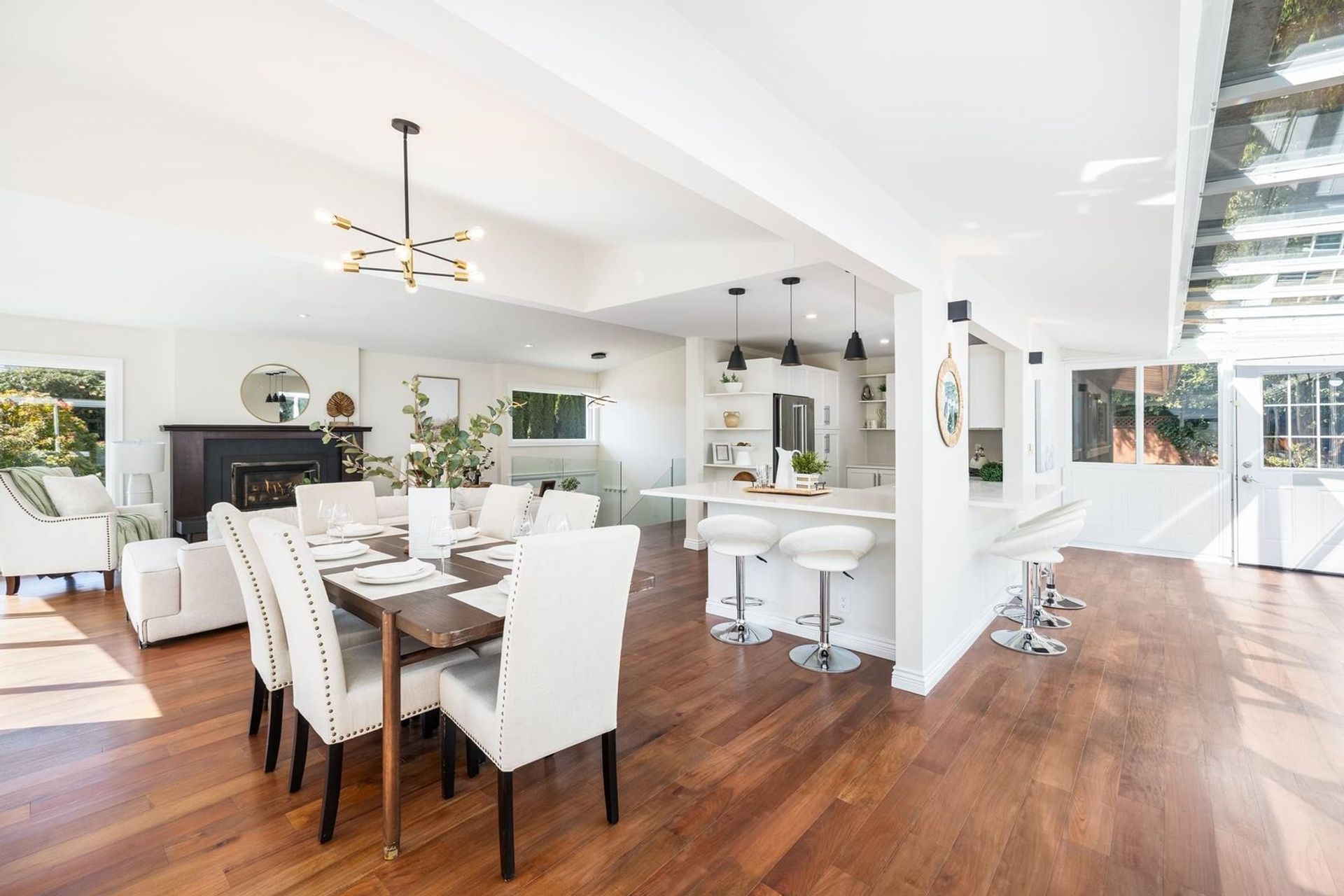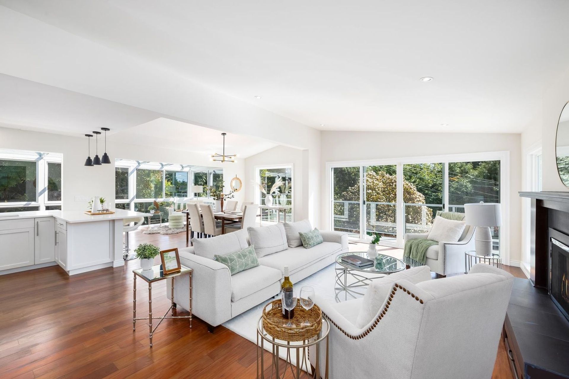 Welcome to your dream home in the heart of Ambleside! This beautifully recently renovated family residence sits on an expansive 15,349sqft gated property, offering both privacy & space. Boasting 5 beds & 4 full baths, this home is ideal for families of any size. Gather with loved ones in the open living area featuring vaulted ceilings, a cozy gas fireplace, glass solarium, & south facing balcony, perfect for soaking in the sunshine & enjoying peak a boo views. The lower level offers a versatile family area with a wet bar, leading out to a private creek-side setting—a serene retreat to relax. Plus, the potential to convert this space into a suite. Conveniently located just steps away from West Van Secondary & shops, the WV Rec Center & the beach & Seawall. This home has it all!