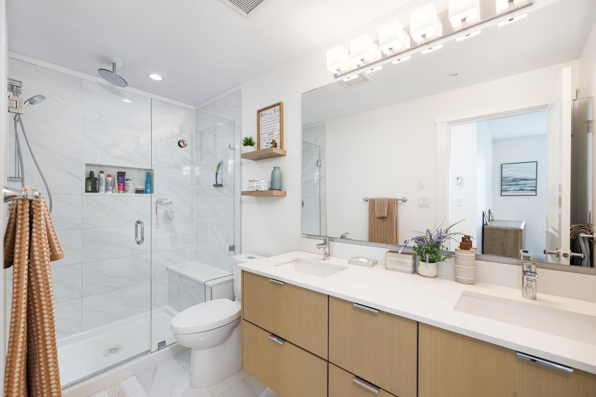 Welcome to West Quay by Polygon in vibrant Lower Lonsdale, one of North Vancouver’s most sought-after communities. This beautifully updated 980sq ft, 2-bed 2-bath home offers a thoughtful layout with custom closets, & new carpeting in bedrooms. The spacious primary features a walk-in closet & a spa-inspired ensuite complete w/ double vanities, quartz counters, & a frameless glass shower. Enjoy 9’ ceilings & bright, open-concept living centered around an oversized kitchen w/ a large island, gas range, quartz countertops, & SS appliances. This west-facing suite is filled w/ natural light & located in the inner courtyard. Just steps to the Seabus, Lonsdale Quay, parks, transit, cafés, shops & restaurants. Amenities include a gym & a gardens terrace. Pet-friendly. Include 1 parking & storage.