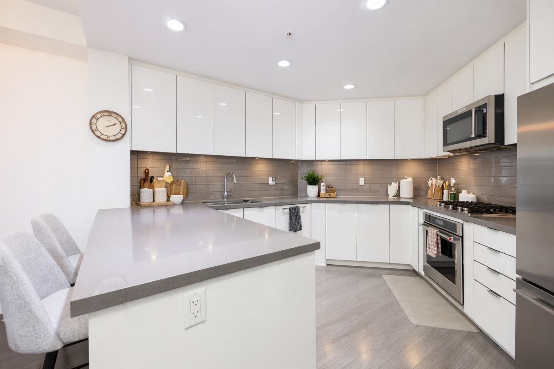 Welcome to West Quay by Polygon in vibrant Lower Lonsdale, one of North Vancouver’s most sought-after communities. This beautifully updated 980sq ft, 2-bed 2-bath home offers a thoughtful layout with custom closets, & new carpeting in bedrooms. The spacious primary features a walk-in closet & a spa-inspired ensuite complete w/ double vanities, quartz counters, & a frameless glass shower. Enjoy 9’ ceilings & bright, open-concept living centered around an oversized kitchen w/ a large island, gas range, quartz countertops, & SS appliances. This west-facing suite is filled w/ natural light & located in the inner courtyard. Just steps to the Seabus, Lonsdale Quay, parks, transit, cafés, shops & restaurants. Amenities include a gym & a gardens terrace. Pet-friendly. Include 1 parking & storage.